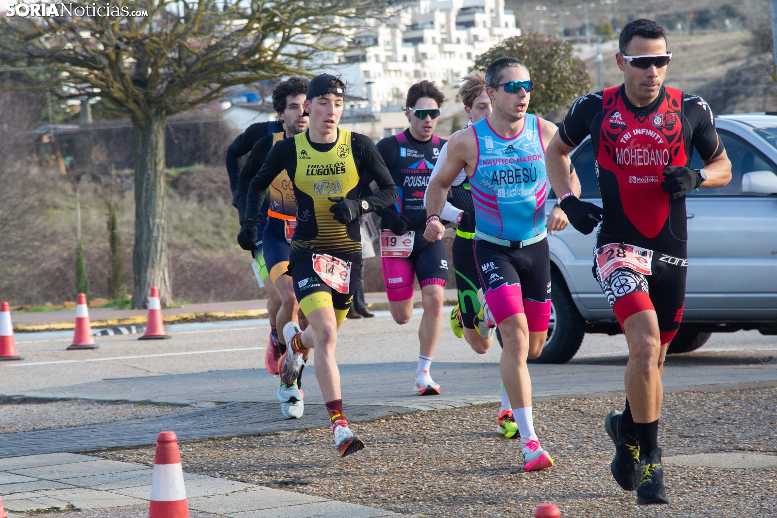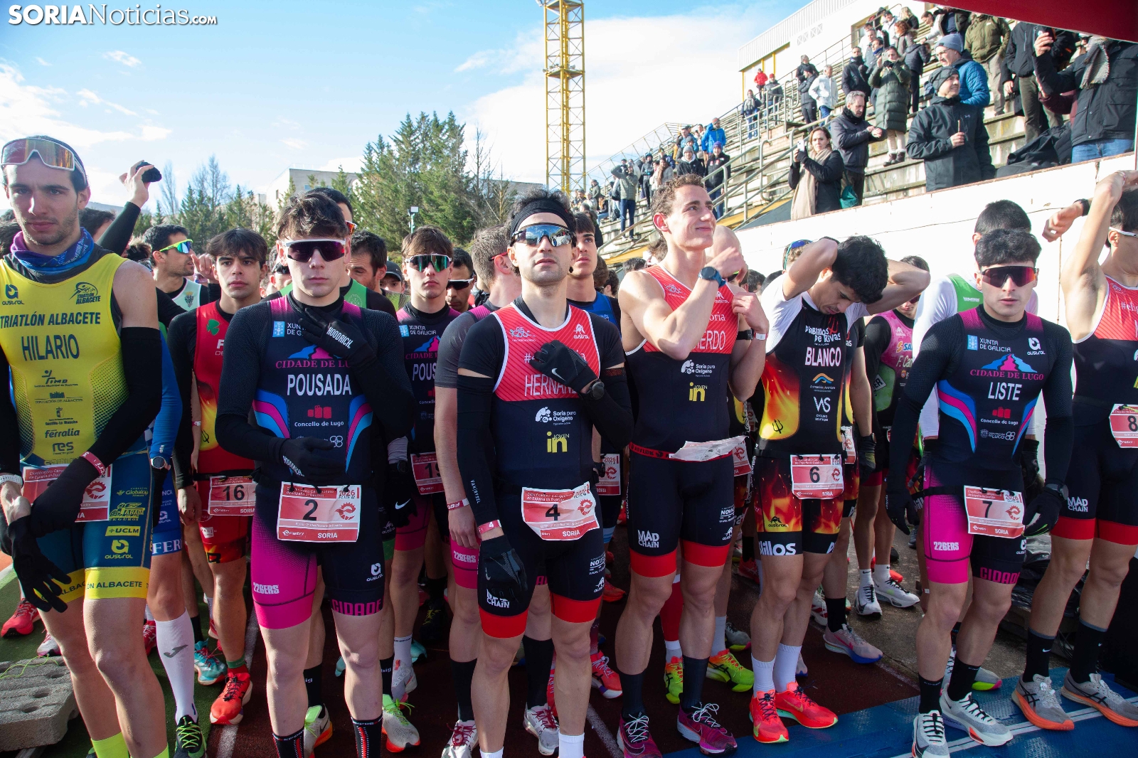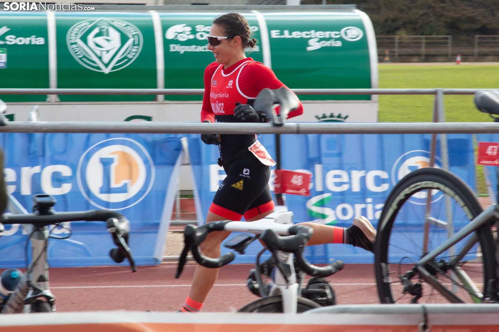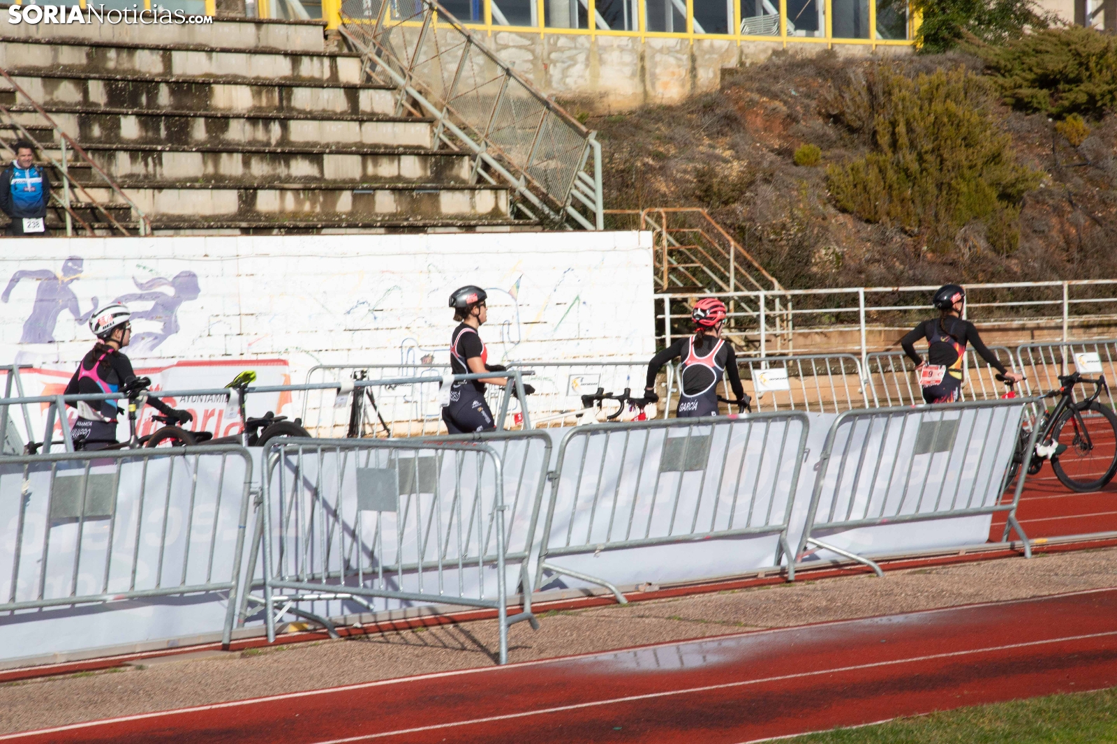 La capital soriana ha amanecido este domingo convertida en un auténtico escenario deportivo con la disputa del clasificatorio para el Campeonato de España de Duatlón, una cita que ha llenado las calles de la ciudad de competición. Cientos de atletas procedentes de distintos puntos de la geografía nacional se han dado cita en Soria para pelear por las plazas que dan acceso a la final nacional, tiñendo la ciudad con los colores de sus respectivos clubes y atrayendo a aficionados y curiosos. La prueba ha combinado la exigencia física de los segmentos de carrera a pie y ciclismo con la espectacularidad de las transiciones, ofreciendo estampas de máximo esfuerzo bajo la atenta mirada del público que ha alentado a los participantes en una jornada que vuelve a situar a Soria como referente del duatlón en nuestro país.
