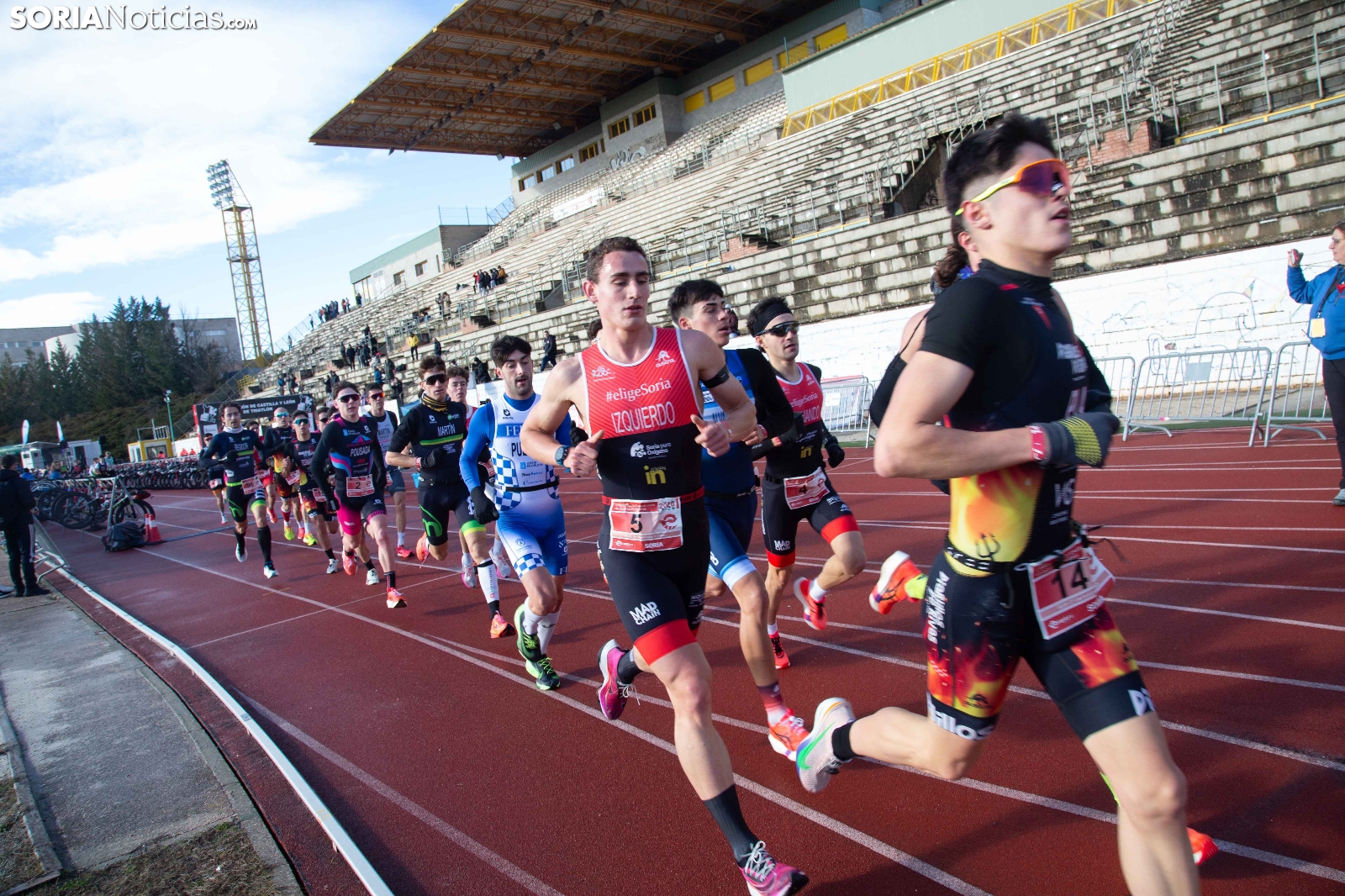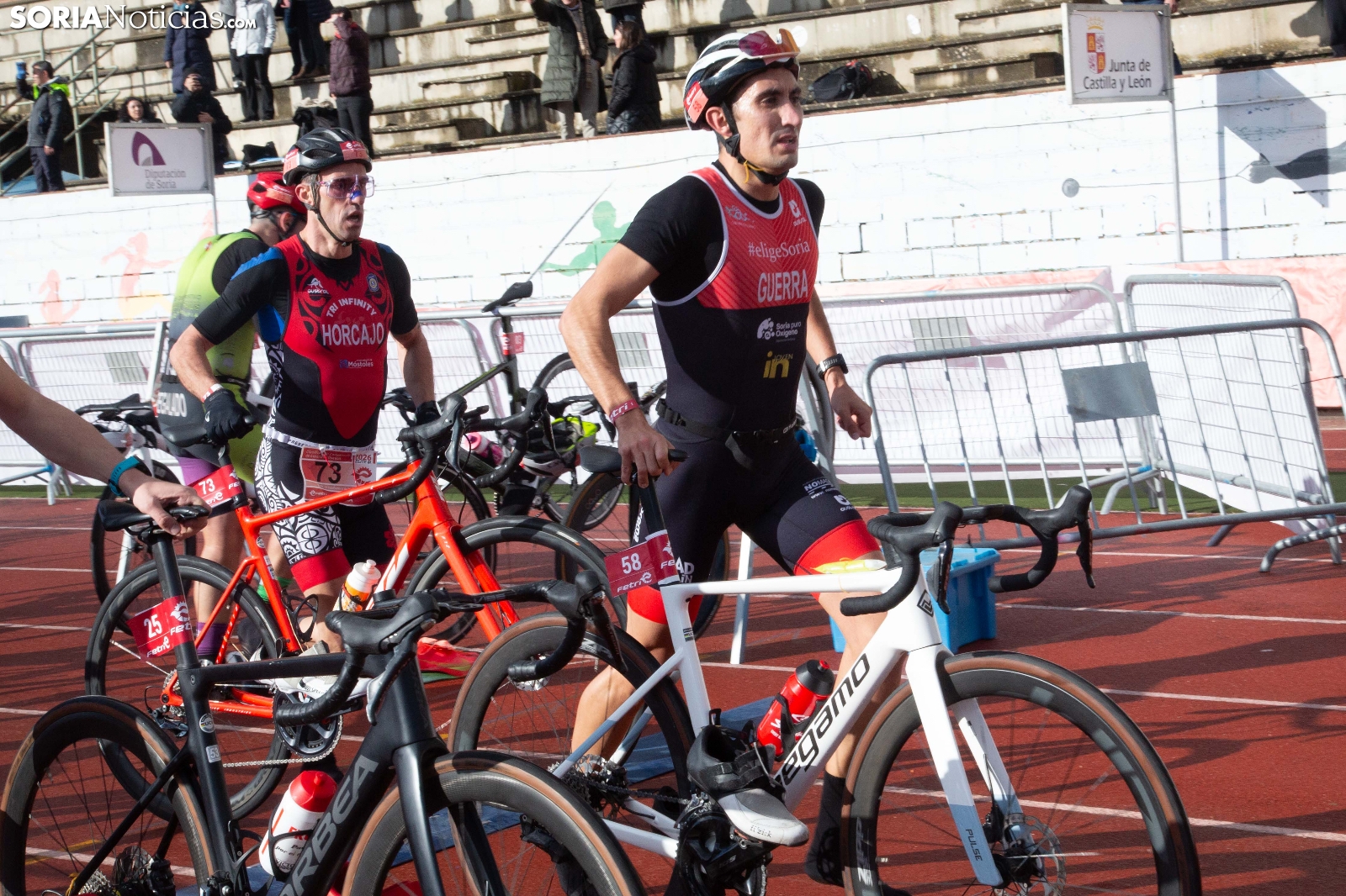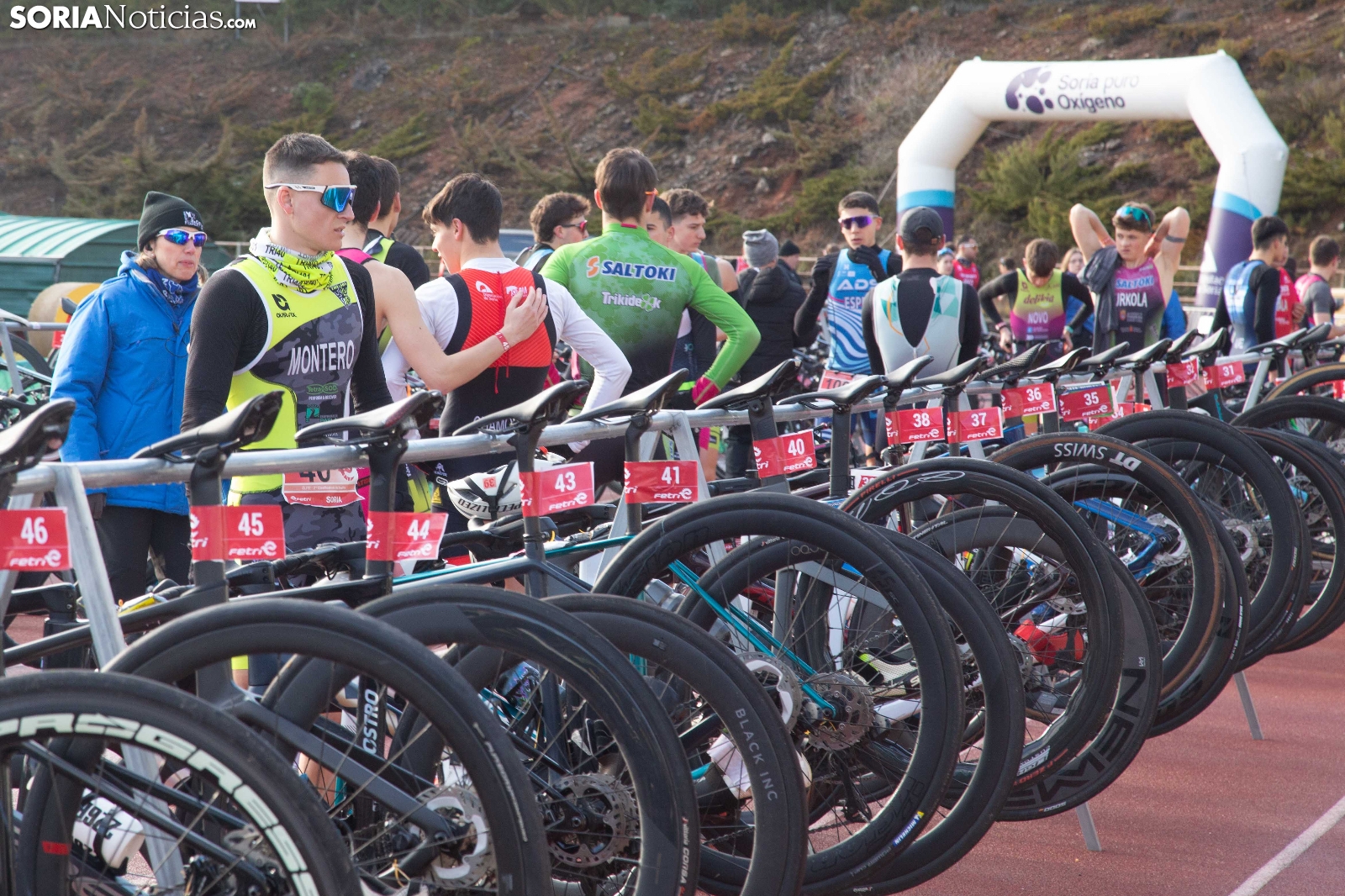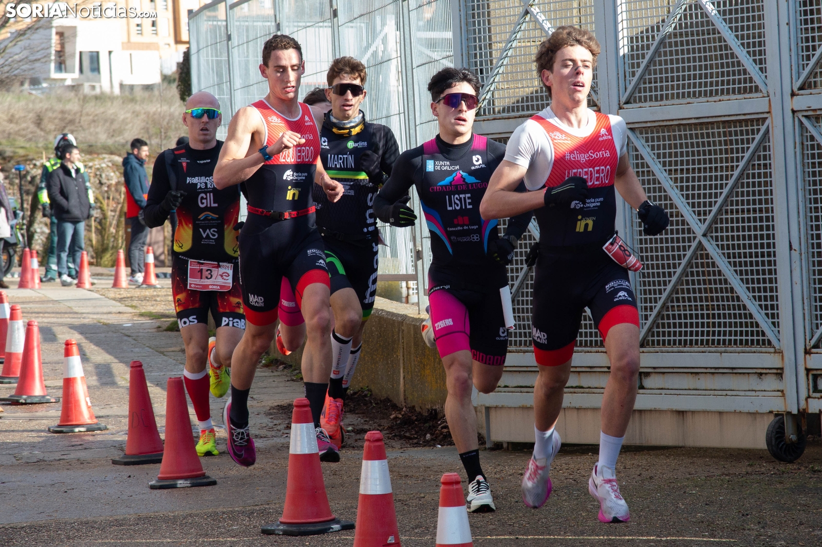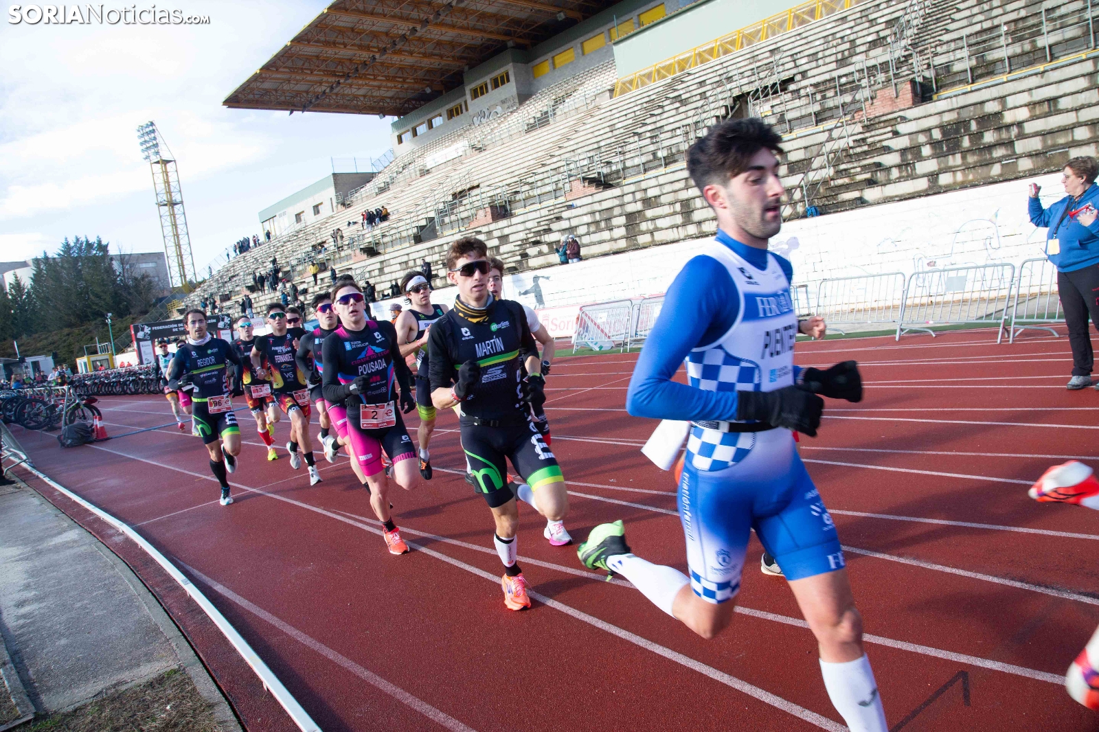 La capital soriana ha amanecido este domingo convertida en un auténtico escenario deportivo con la disputa del clasificatorio para el Campeonato de España de Duatlón, una cita que ha llenado las calles de la ciudad de competición. Cientos de atletas procedentes de distintos puntos de la geografía nacional se han dado cita en Soria para pelear por las plazas que dan acceso a la final nacional, tiñendo la ciudad con los colores de sus respectivos clubes y atrayendo a aficionados y curiosos. La prueba ha combinado la exigencia física de los segmentos de carrera a pie y ciclismo con la espectacularidad de las transiciones, ofreciendo estampas de máximo esfuerzo bajo la atenta mirada del público que ha alentado a los participantes en una jornada que vuelve a situar a Soria como referente del duatlón en nuestro país.