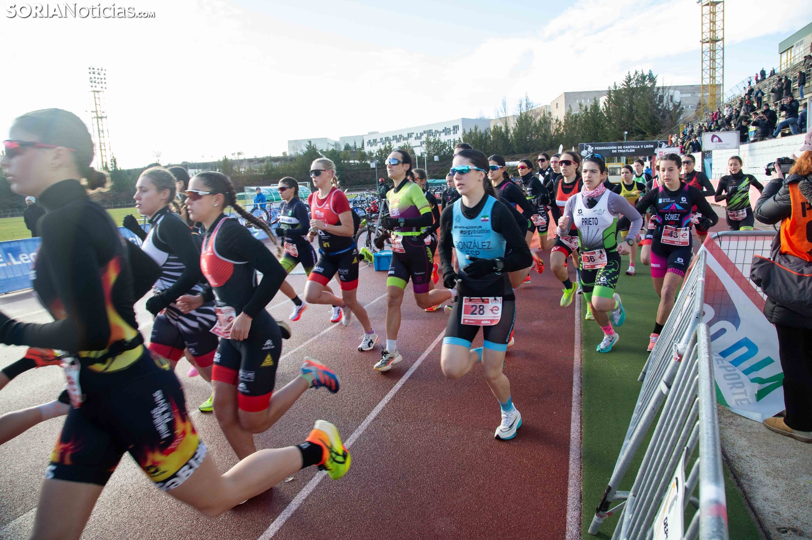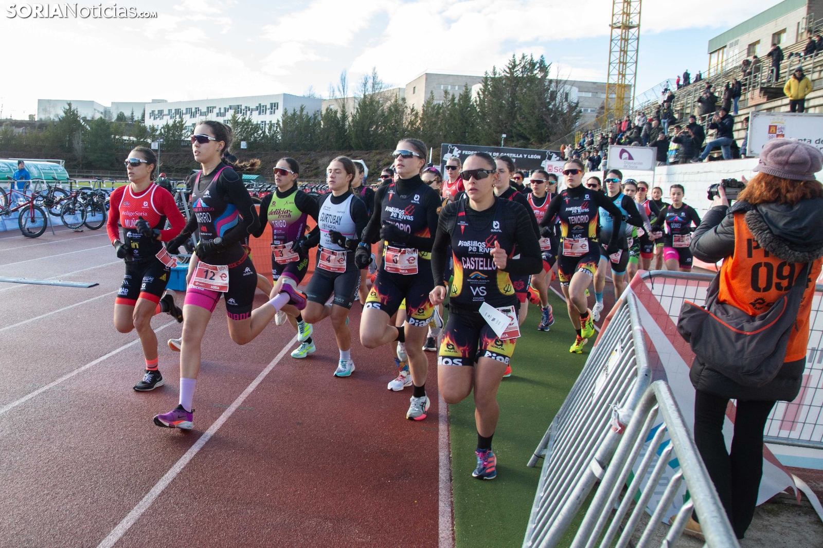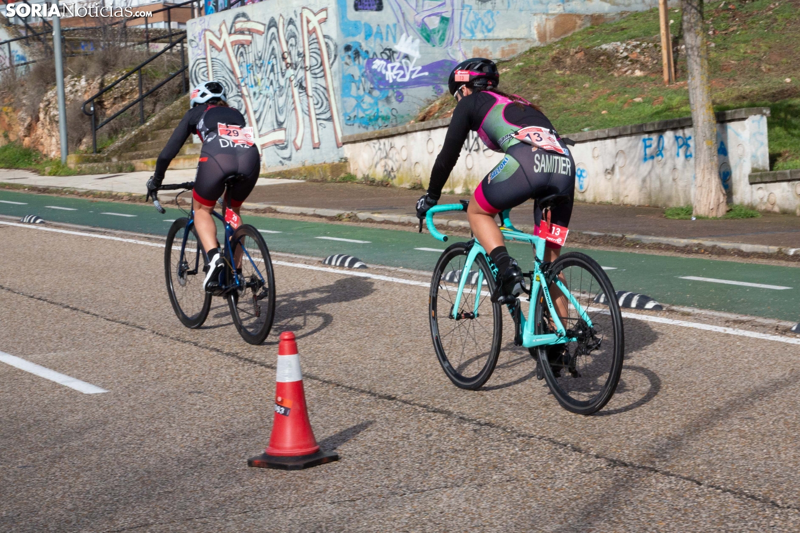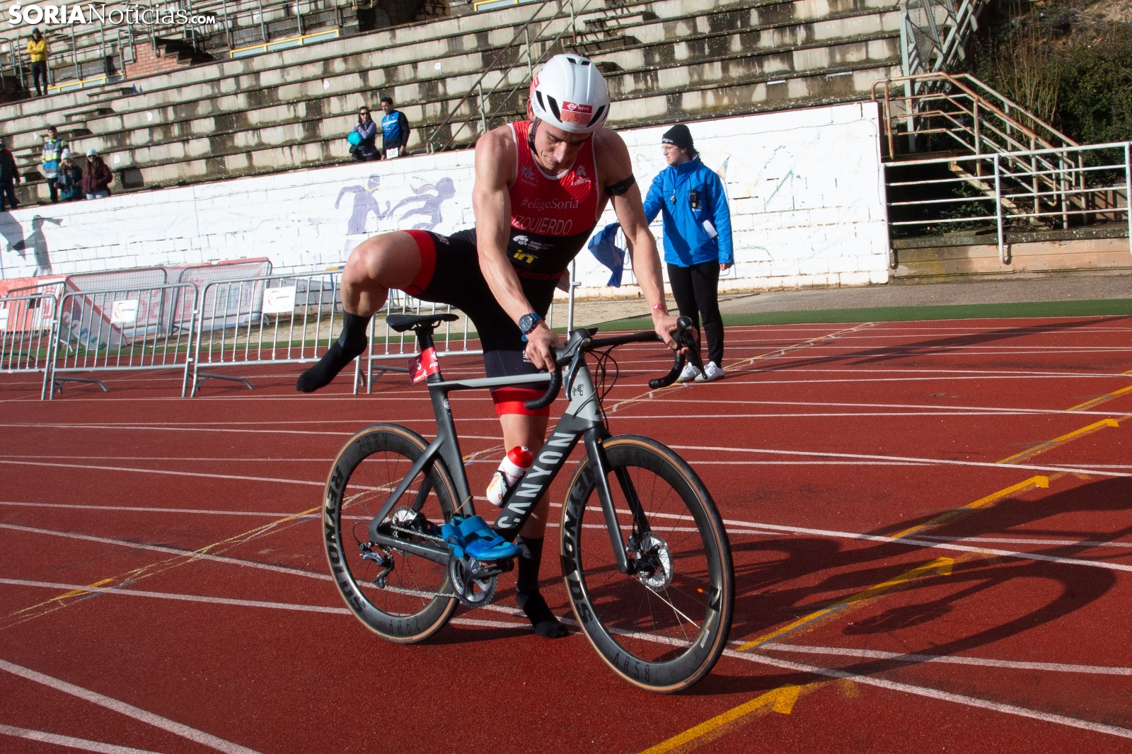 La capital soriana ha amanecido este domingo convertida en un auténtico escenario deportivo con la disputa del clasificatorio para el Campeonato de España de Duatlón, una cita que ha llenado las calles de la ciudad de competición. Cientos de atletas procedentes de distintos puntos de la geografía nacional se han dado cita en Soria para pelear por las plazas que dan acceso a la final nacional, tiñendo la ciudad con los colores de sus respectivos clubes y atrayendo a aficionados y curiosos. La prueba ha combinado la exigencia física de los segmentos de carrera a pie y ciclismo con la espectacularidad de las transiciones, ofreciendo estampas de máximo esfuerzo bajo la atenta mirada del público que ha alentado a los participantes en una jornada que vuelve a situar a Soria como referente del duatlón en nuestro país.