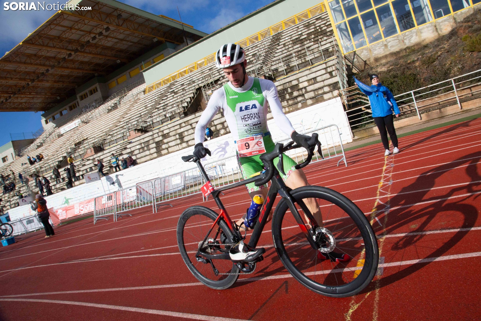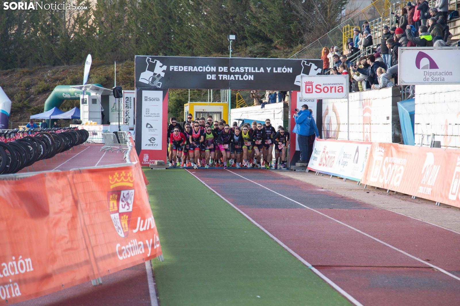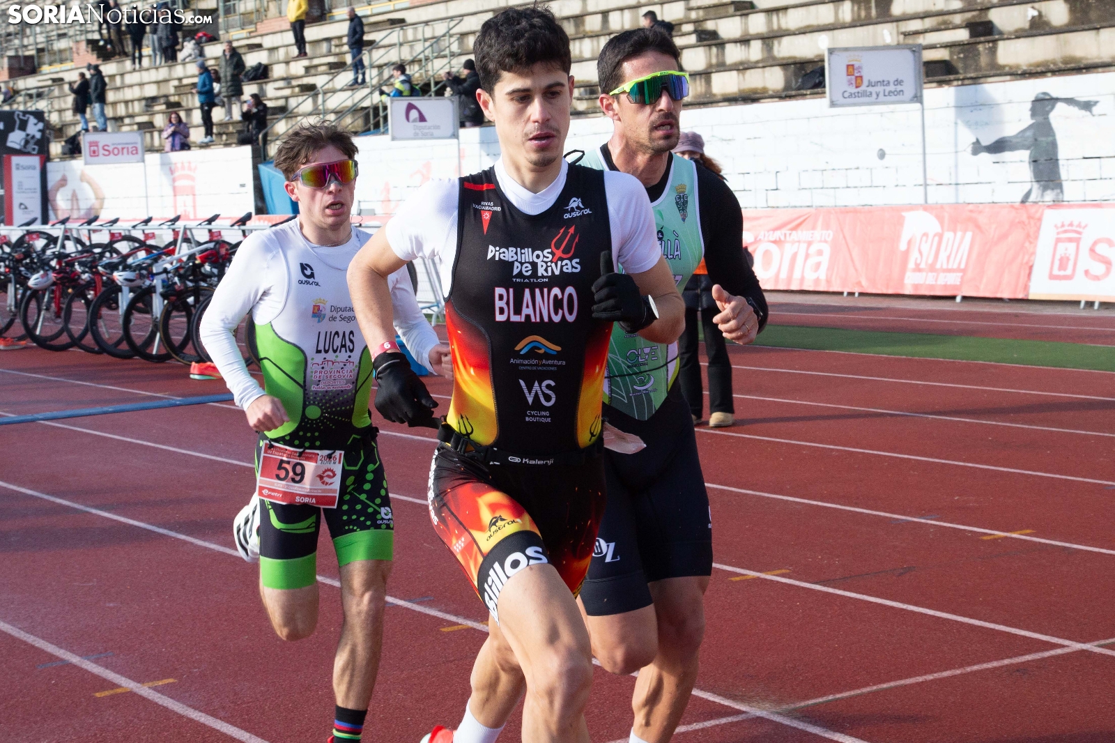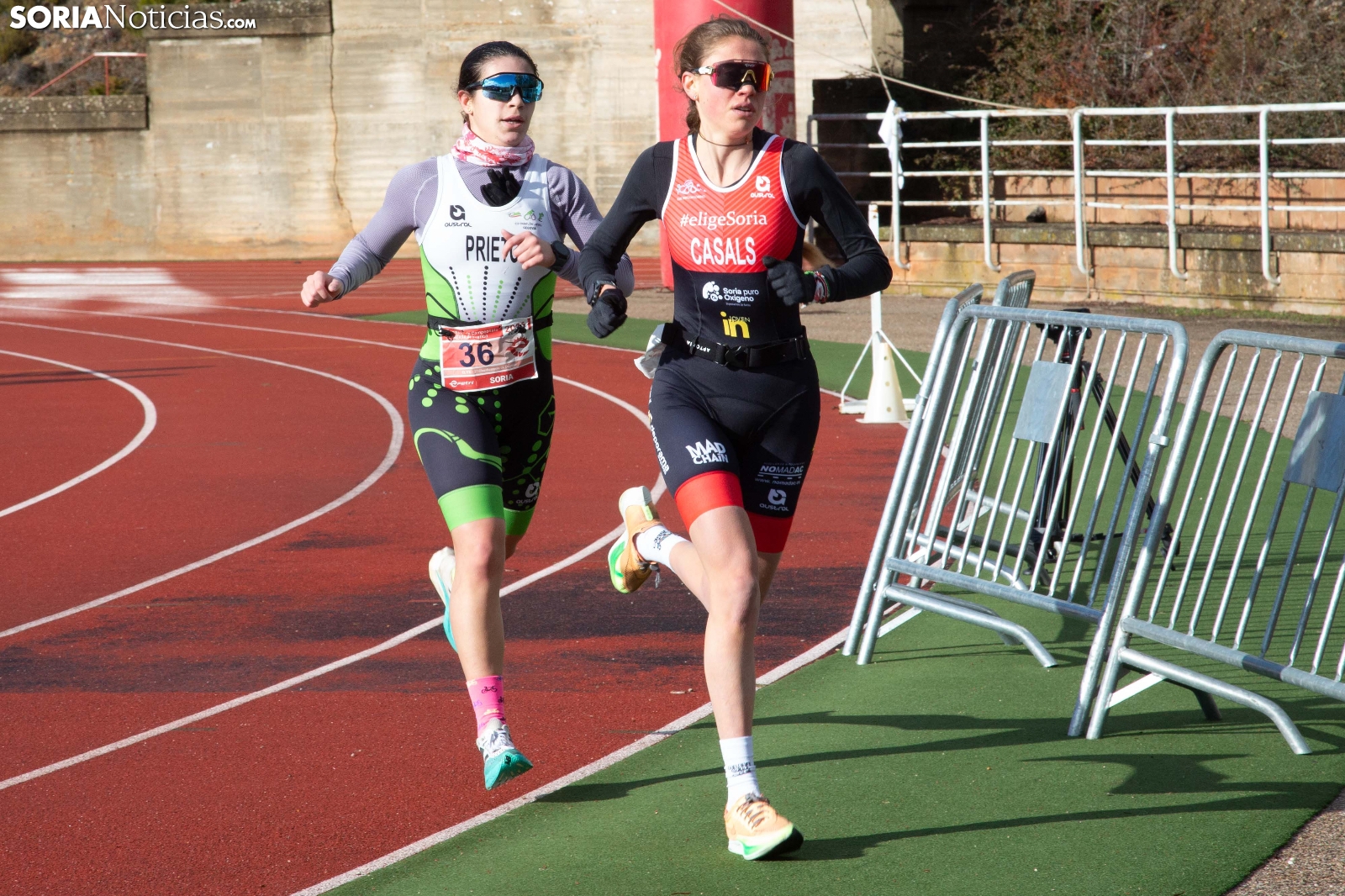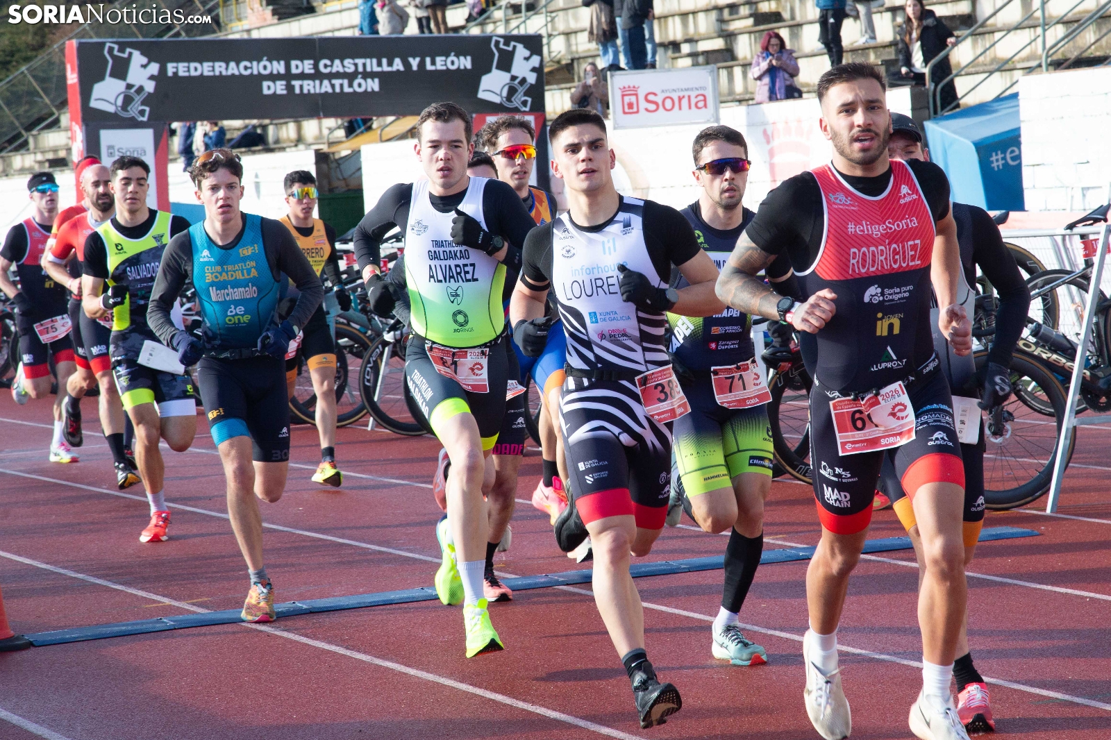 La capital soriana ha amanecido este domingo convertida en un auténtico escenario deportivo con la disputa del clasificatorio para el Campeonato de España de Duatlón, una cita que ha llenado las calles de la ciudad de competición. Cientos de atletas procedentes de distintos puntos de la geografía nacional se han dado cita en Soria para pelear por las plazas que dan acceso a la final nacional, tiñendo la ciudad con los colores de sus respectivos clubes y atrayendo a aficionados y curiosos. La prueba ha combinado la exigencia física de los segmentos de carrera a pie y ciclismo con la espectacularidad de las transiciones, ofreciendo estampas de máximo esfuerzo bajo la atenta mirada del público que ha alentado a los participantes en una jornada que vuelve a situar a Soria como referente del duatlón en nuestro país.