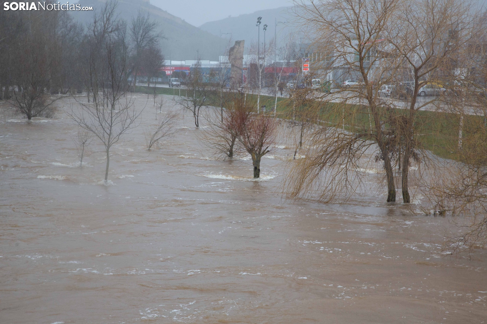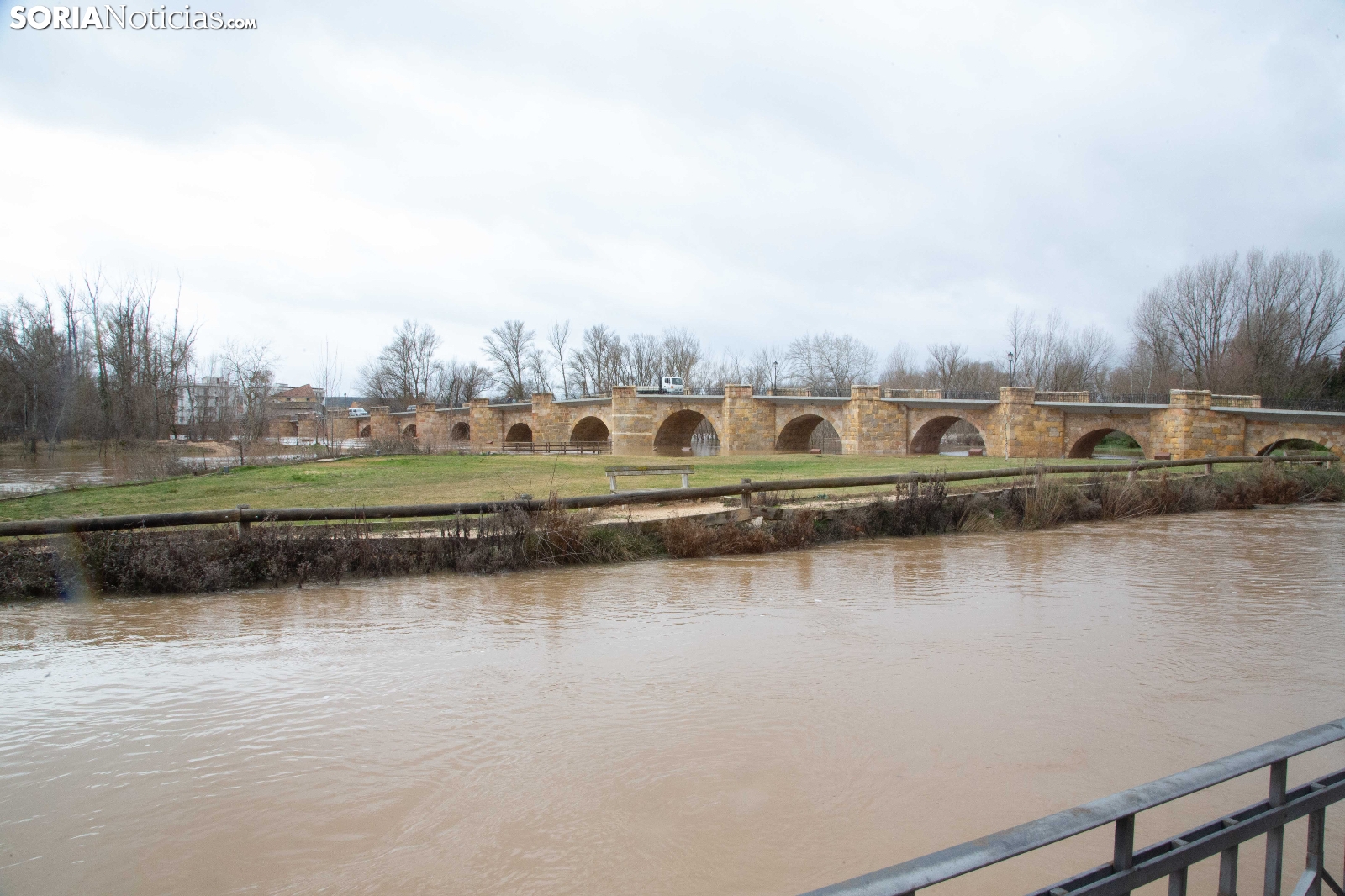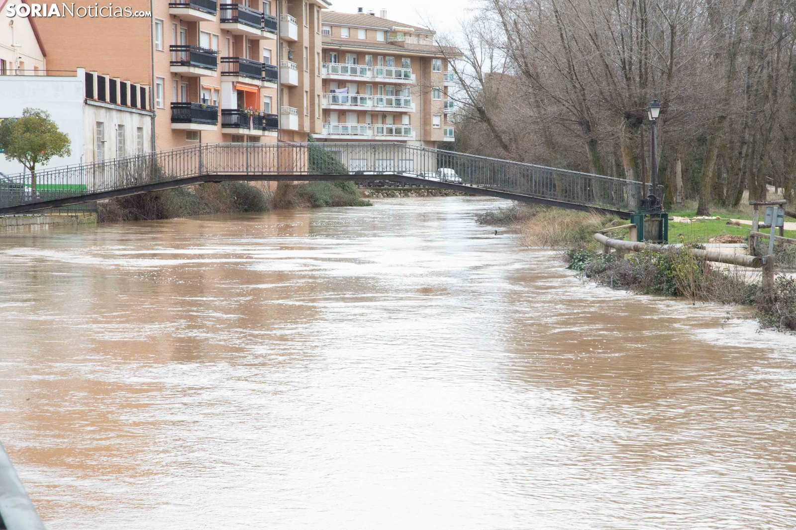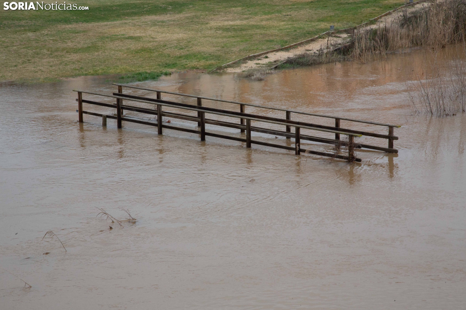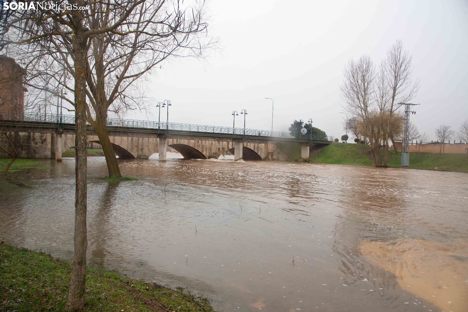 Las crecidas en los cauces siguen en aumento espoleadas por la borrasca Nils, último de los temporales que consecutivamente vienen ceniéndose por la Penísula. Dos cauces, uno afluente, el Ucero, que previamente se unía al Abión en Osma, se desborda de manera espectacular a su paso por El Burgo, mientras que el Duero, aguas abajo en San Esteban de Gormaz, baja rotundo, conquistando orillas y terrenos de recreo.