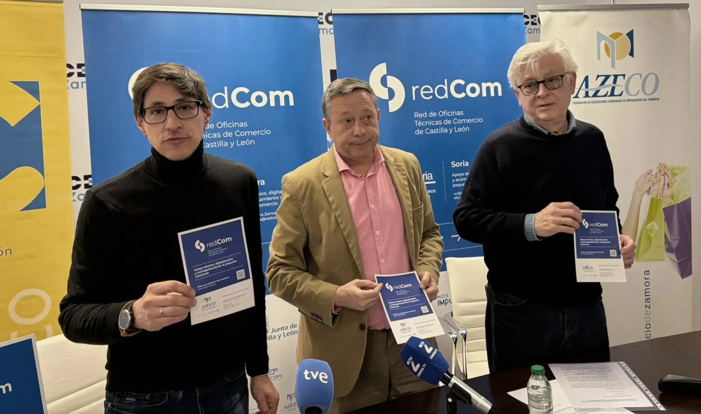 La Confederación de Comercio de Castilla y León (CONFERCO) ha presentado esta mañana la denominada redCom, una Red de Oficinas Técnicas de Comercio que nace con el respaldo financiero de la Junta de Castilla y León. El proyecto, que cuenta con un presupuesto de 125.980 euros, procurará herramientas profesionales a un sector que, según ha narrado el presidente de la confederación, el soriano Adolfo Sainz, atraviesa un momento de extrema delicadeza. Las cifras aportadas durante la presentación exponen un horizonte preocupante, ya que en toda la geografía nacional bajan la persiana 38 establecimientos de este tipo a diario, lo que supuso la desaparición de 14.000 negocios durante el último año.