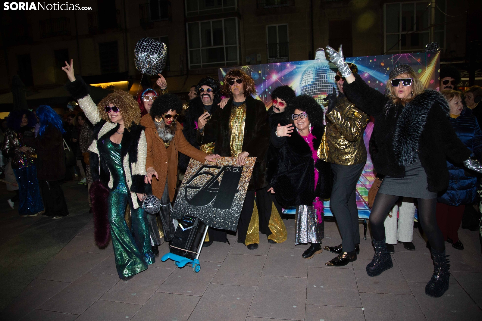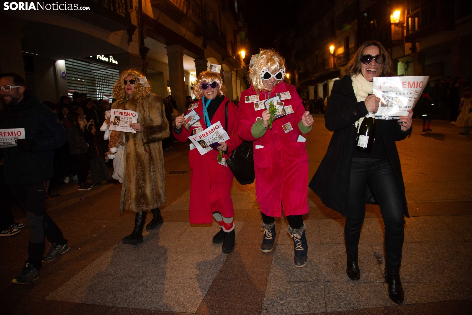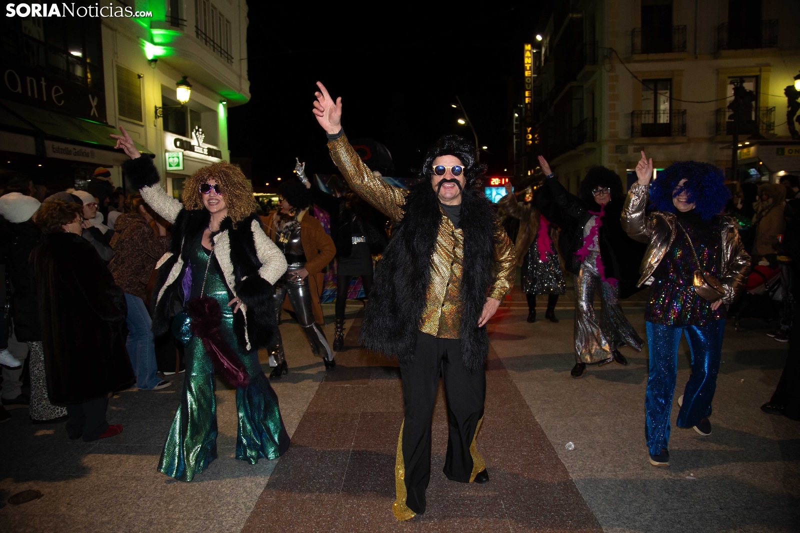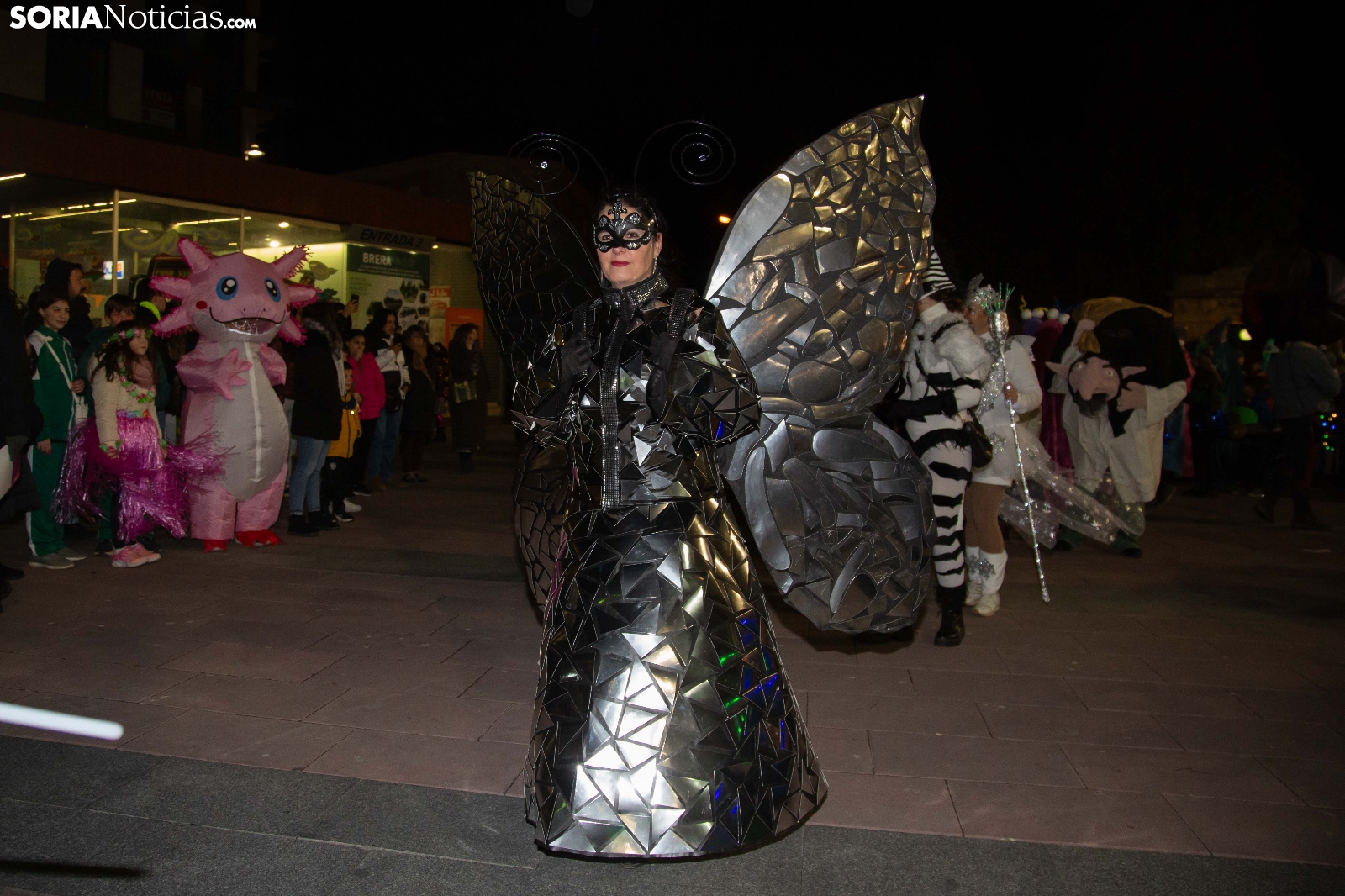 Dentro del carrusel de borrascas que han venido azotando a la Península y por supuesto a la capital soriana, los sucesivos episodios de inclemencias en el tiempo no han conseguido apagar el ánimo festivo en la ciudad, que esta noche se zambullía colorida, imaginativa desafiante y alegre, en su noche carnavalera. En comparsa o de modo individual, los sorianos han sacado a las calles sus creaciones, la mayoría diseñadas tiempo atrás, para dejar constancia de su espíritu alegre y desenfadado, ignorando el frío. Un desfile, por otro lado, que tenía sus ganadores: Premio individual, Mariposa de Luz; Premio pareja, Las Domingas; Premio grupal, Jardín de la Alegría.