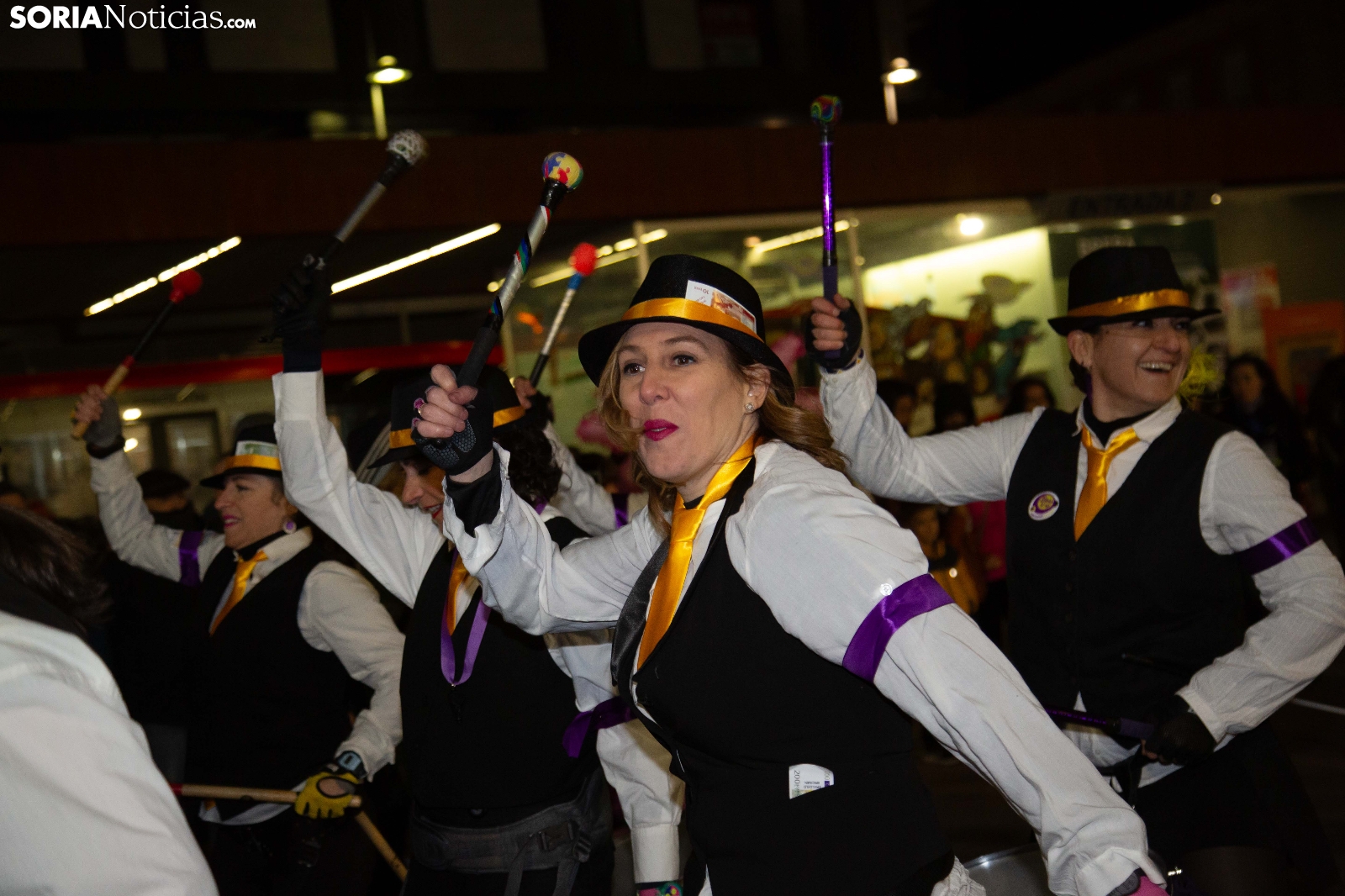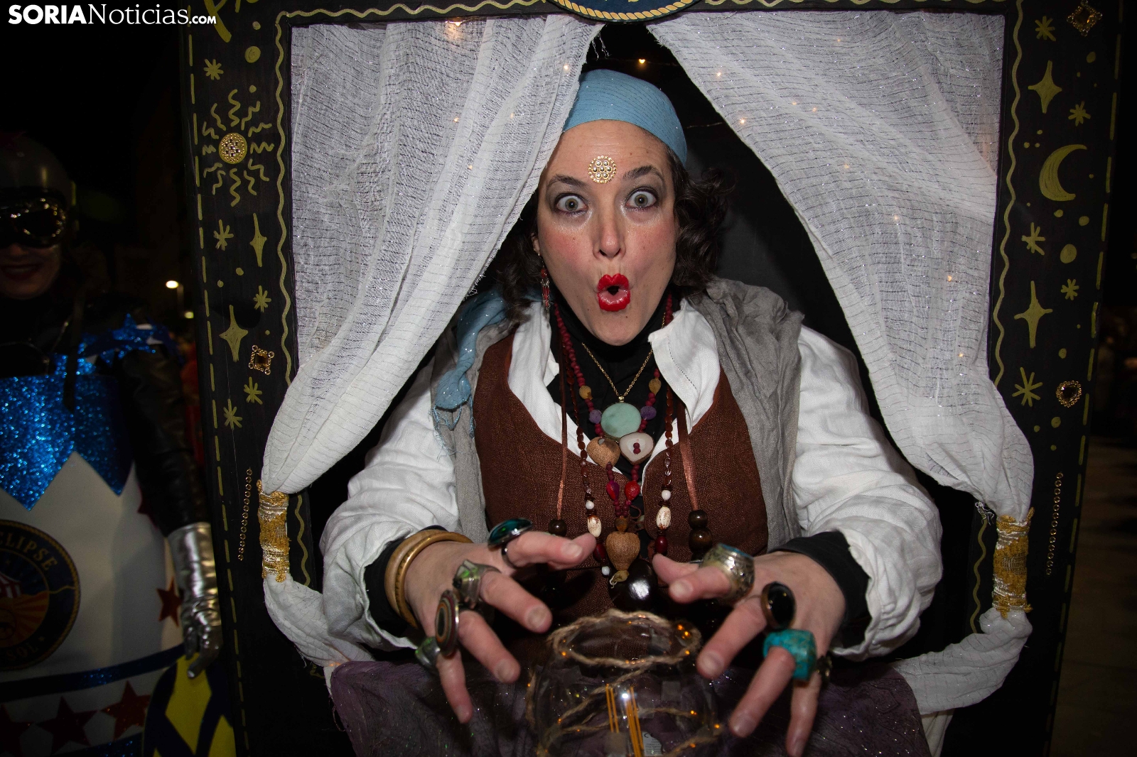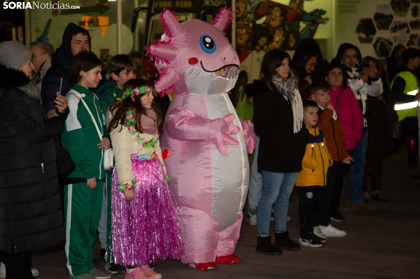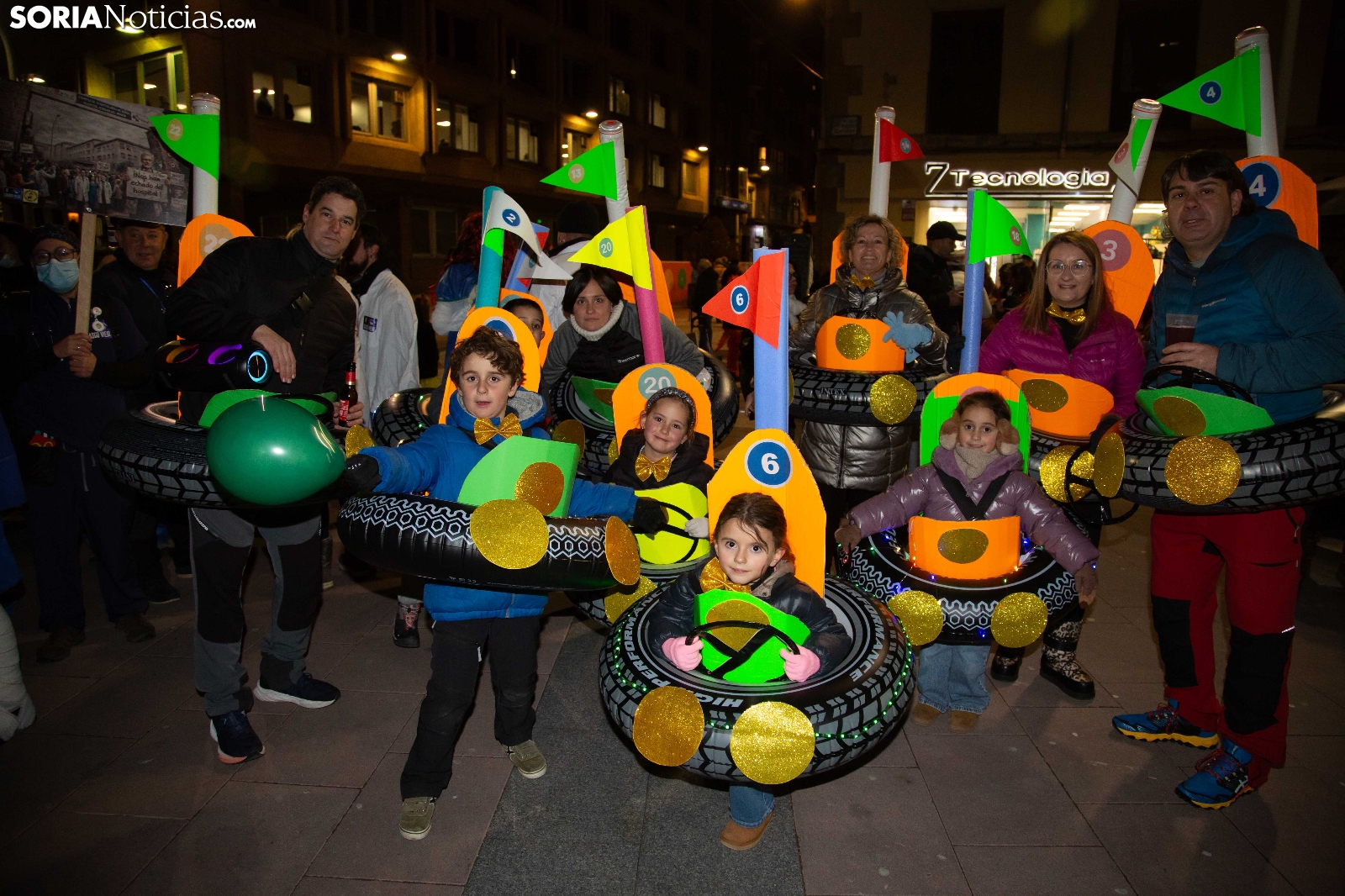 Dentro del carrusel de borrascas que han venido azotando a la Península y por supuesto a la capital soriana, los sucesivos episodios de inclemencias en el tiempo no han conseguido apagar el ánimo festivo en la ciudad, que esta noche se zambullía colorida, imaginativa desafiante y alegre, en su noche carnavalera. En comparsa o de modo individual, los sorianos han sacado a las calles sus creaciones, la mayoría diseñadas tiempo atrás, para dejar constancia de su espíritu alegre y desenfadado, ignorando el frío. Un desfile, por otro lado, que tenía sus ganadores: Premio individual, Mariposa de Luz; Premio pareja, Las Domingas; Premio grupal, Jardín de la Alegría.