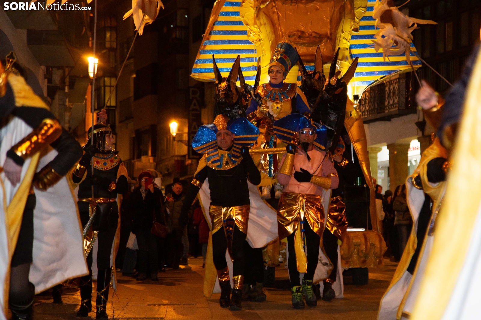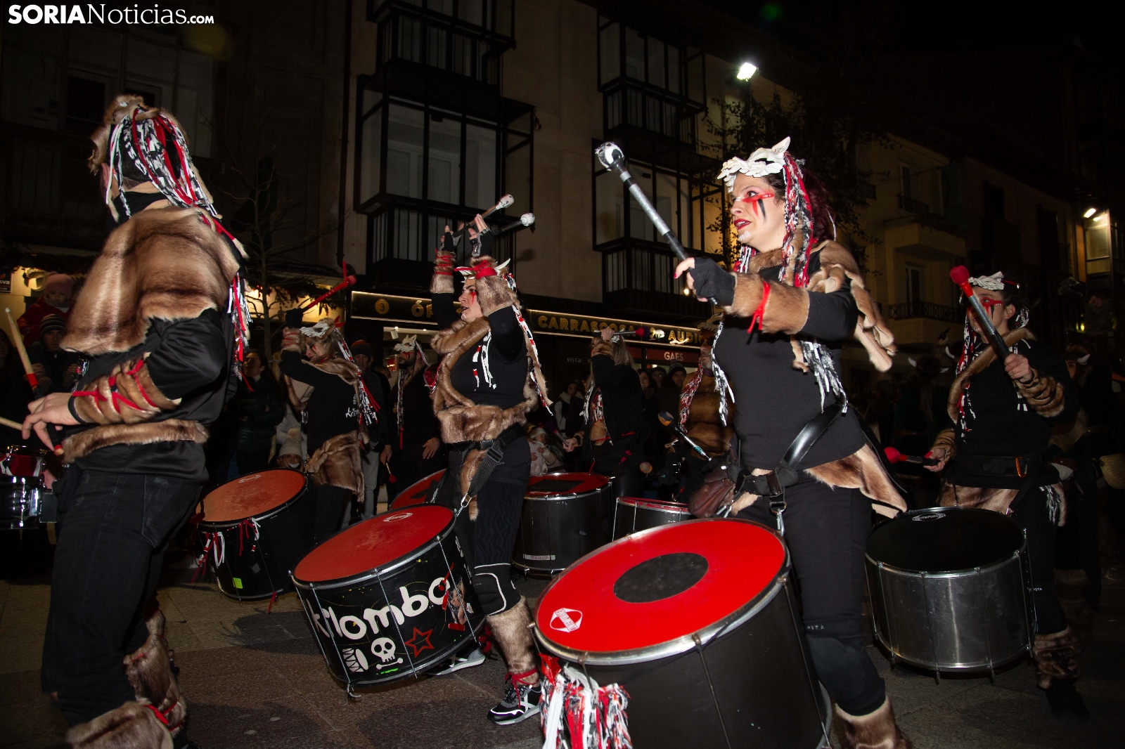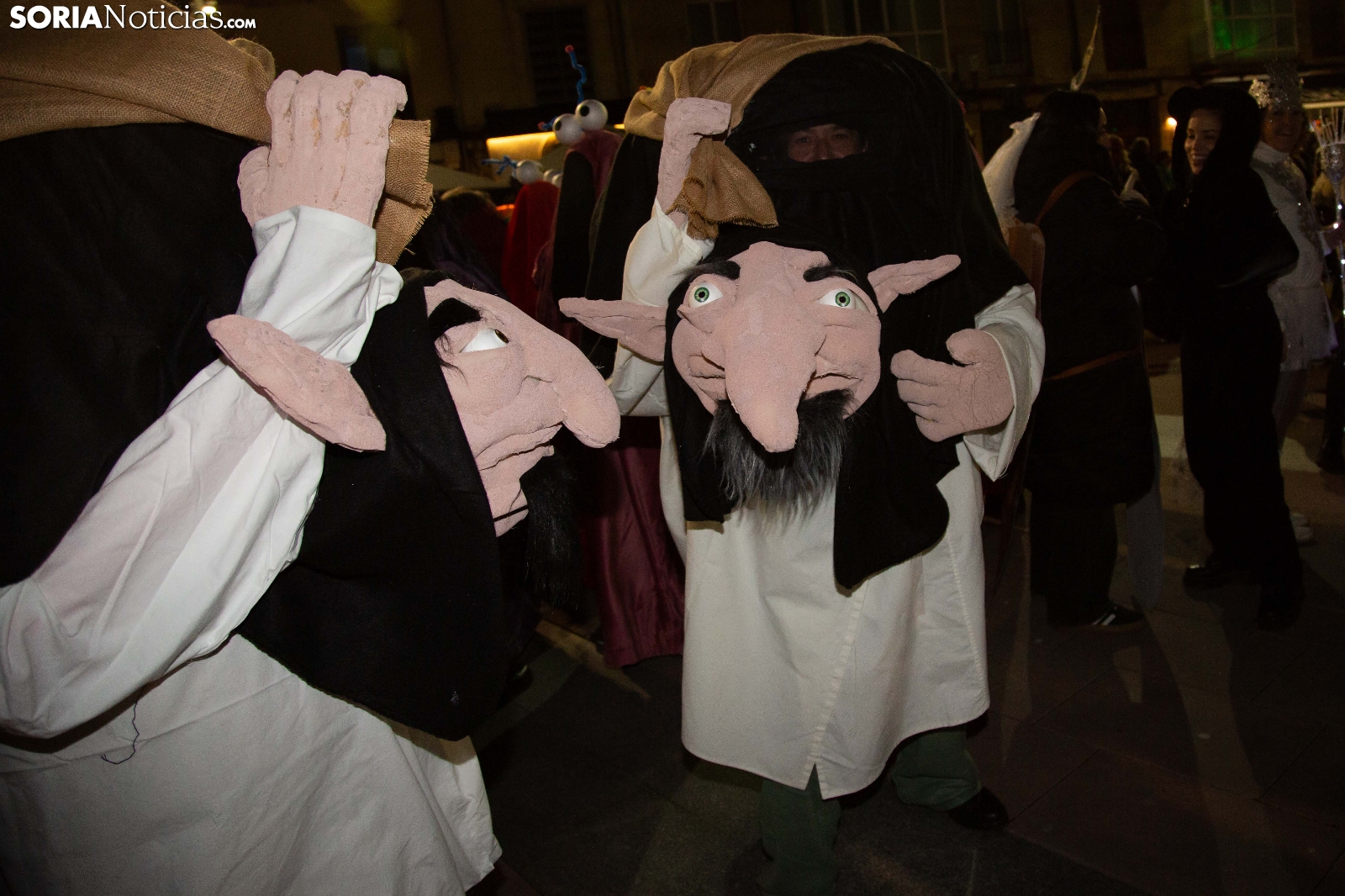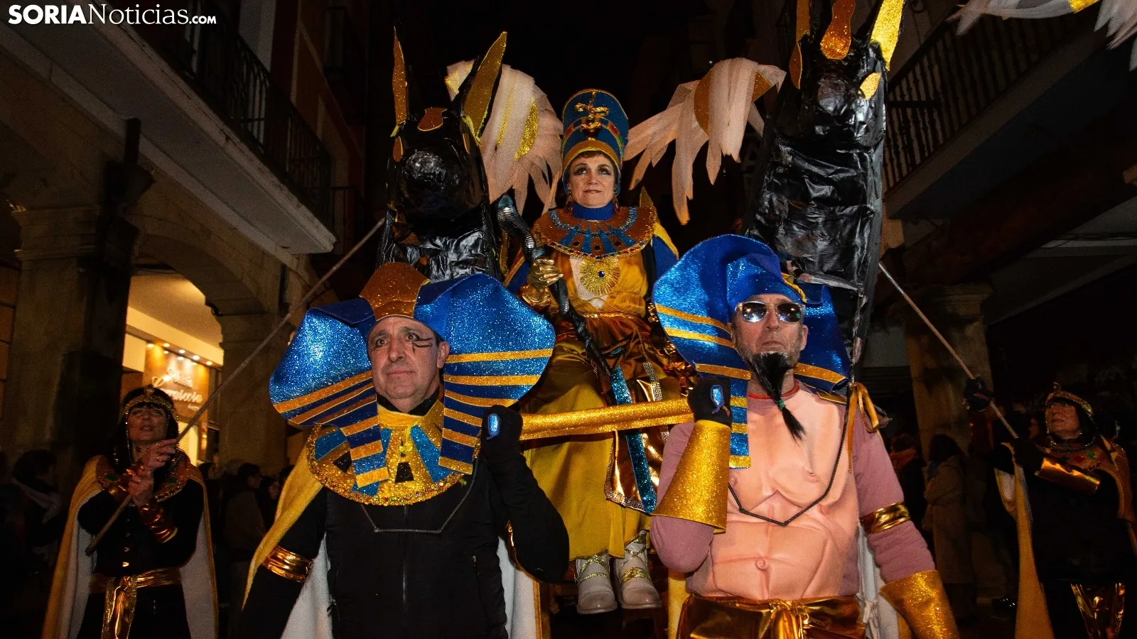 Dentro del carrusel de borrascas que han venido azotando a la Península y por supuesto a la capital soriana, los sucesivos episodios de inclemencias en el tiempo no han conseguido apagar el ánimo festivo en la ciudad, que esta noche se zambullía colorida, imaginativa desafiante y alegre, en su noche carnavalera. En comparsa o de modo individual, los sorianos han sacado a las calles sus creaciones, la mayoría diseñadas tiempo atrás, para dejar constancia de su espíritu alegre y desenfadado, ignorando el frío. Un desfile, por otro lado, que tenía sus ganadores: Premio individual, Mariposa de Luz; Premio pareja, Las Domingas; Premio grupal, Jardín de la Alegría.