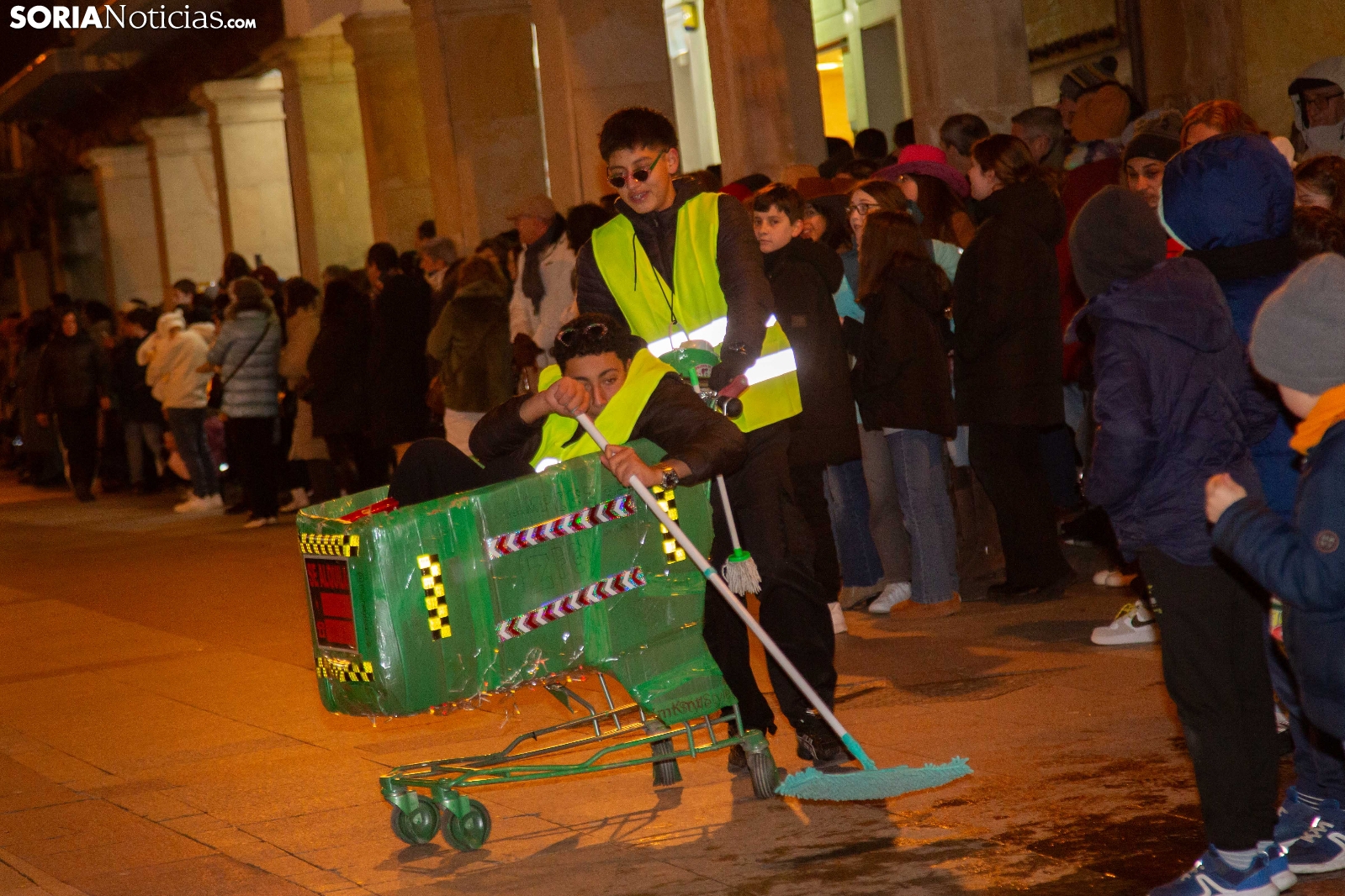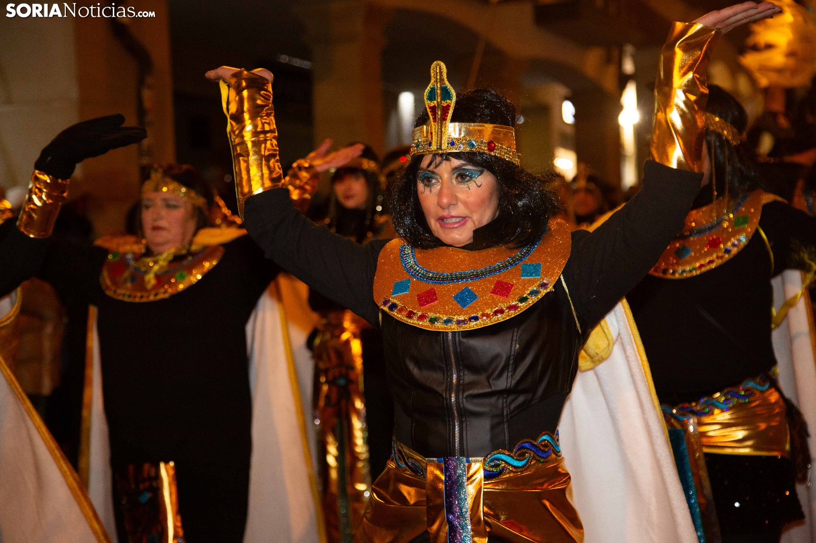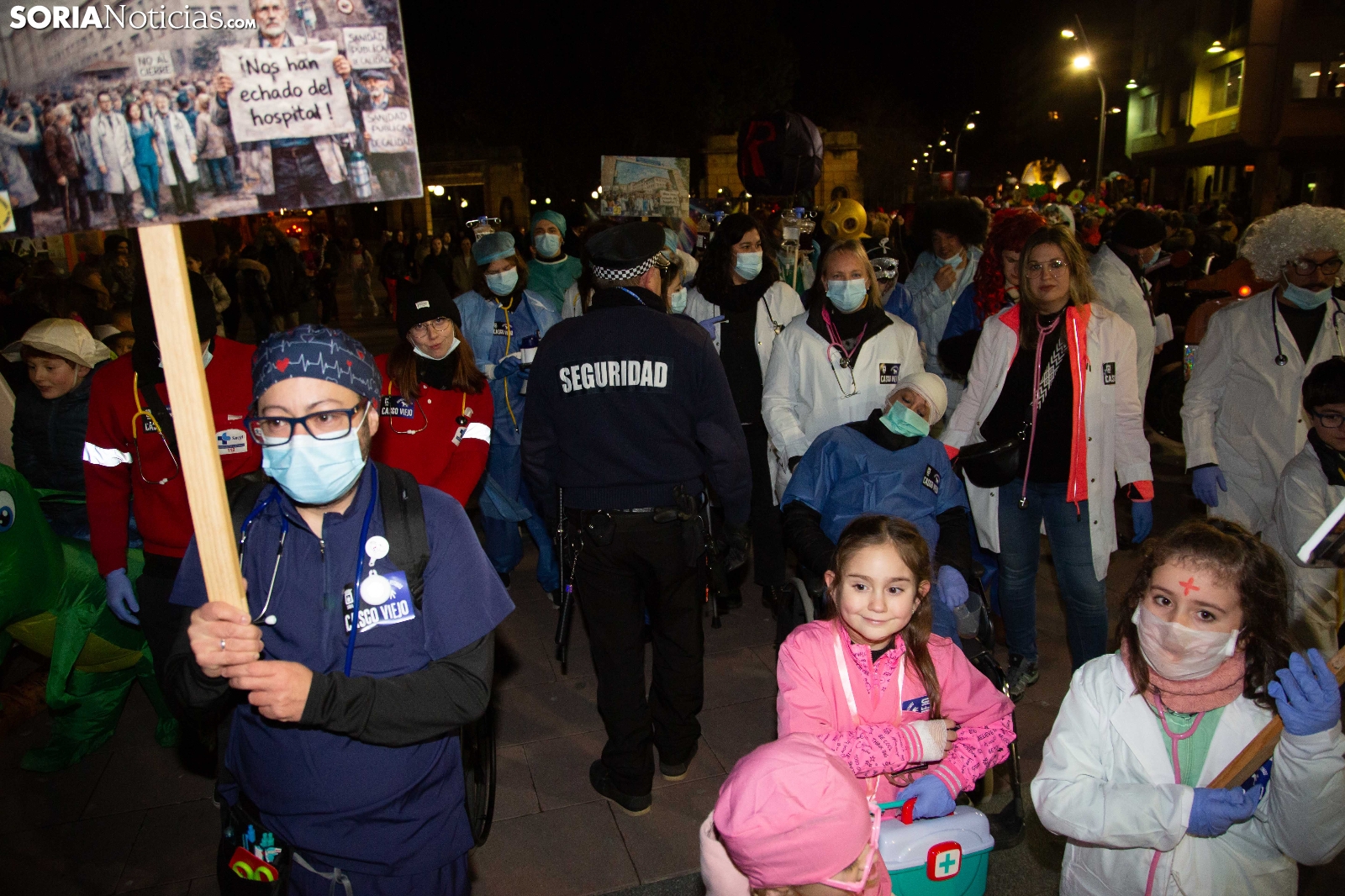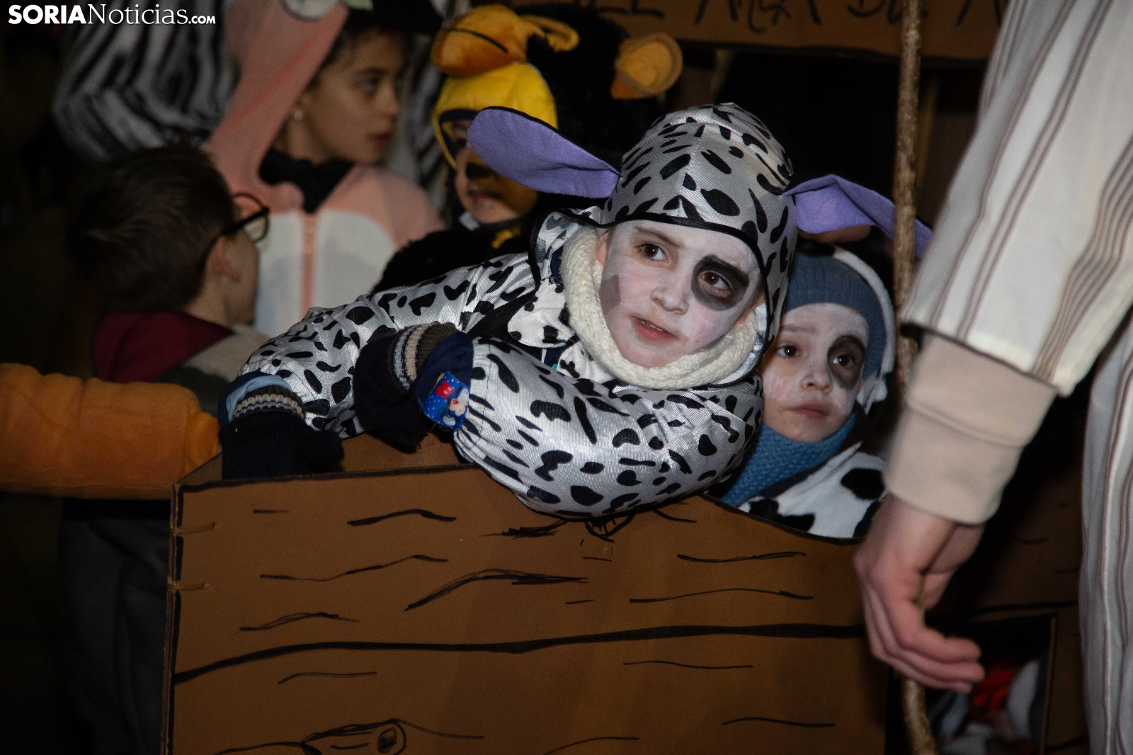 Dentro del carrusel de borrascas que han venido azotando a la Península y por supuesto a la capital soriana, los sucesivos episodios de inclemencias en el tiempo no han conseguido apagar el ánimo festivo en la ciudad, que esta noche se zambullía colorida, imaginativa desafiante y alegre, en su noche carnavalera. En comparsa o de modo individual, los sorianos han sacado a las calles sus creaciones, la mayoría diseñadas tiempo atrás, para dejar constancia de su espíritu alegre y desenfadado, ignorando el frío. Un desfile, por otro lado, que tenía sus ganadores: Premio individual, Mariposa de Luz; Premio pareja, Las Domingas; Premio grupal, Jardín de la Alegría.