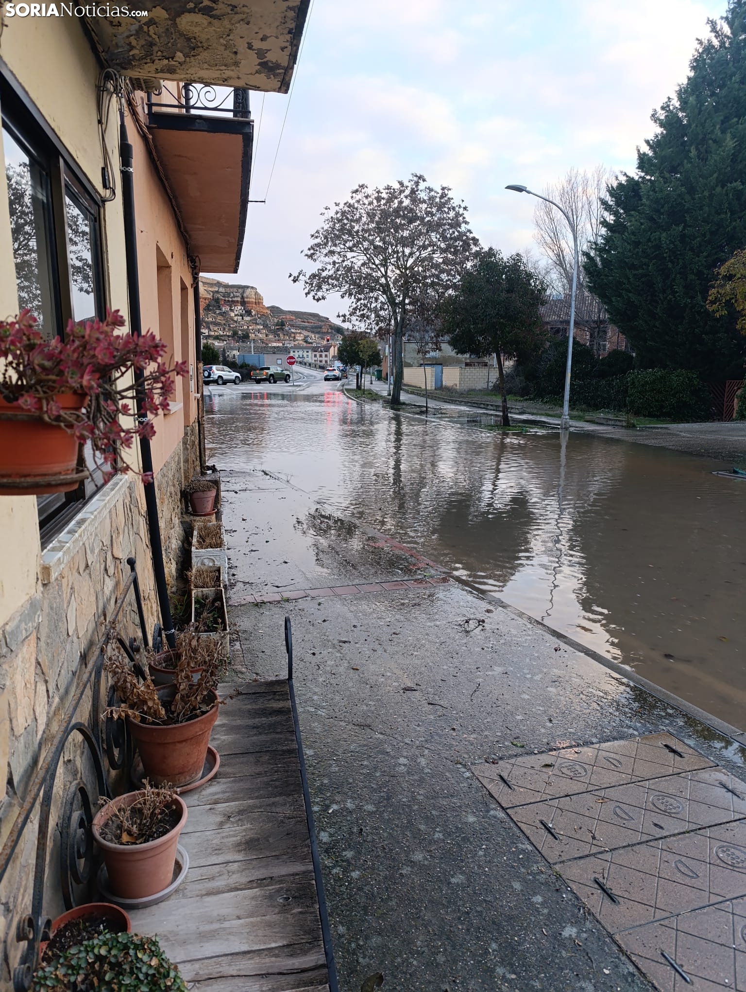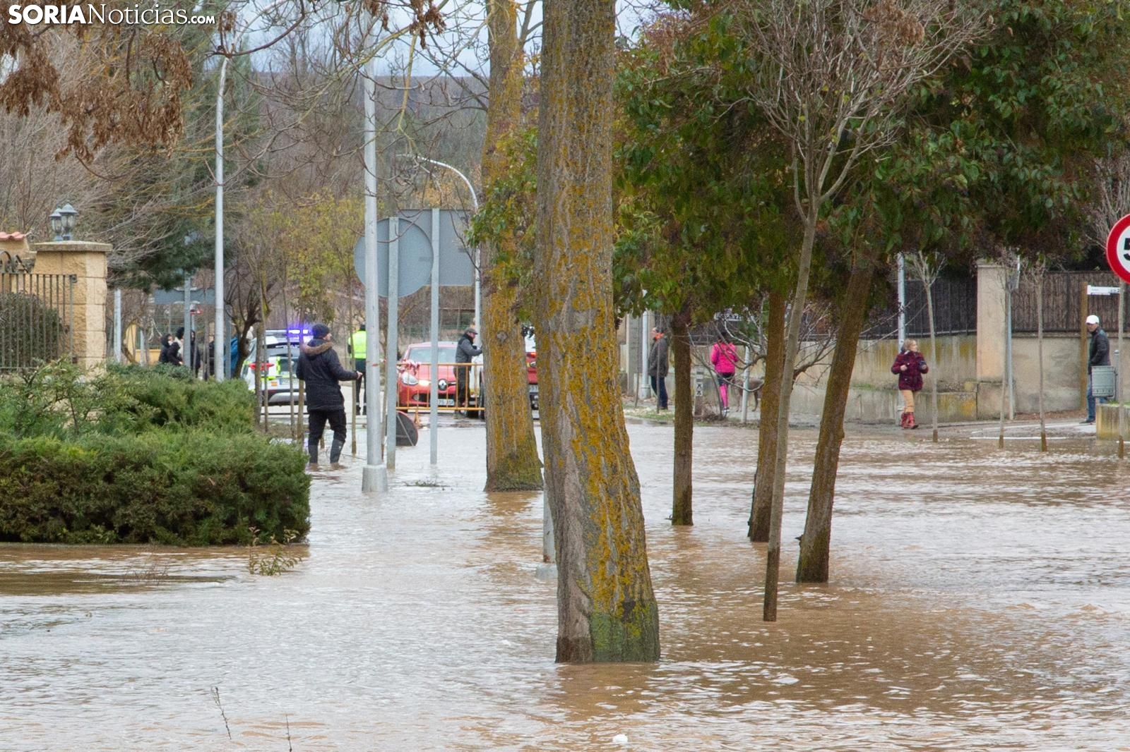 En cuanto a las afectaciones materiales y logísticas, Serrano ha enumerado varios puntos críticos. Ha confirmado que "está cortada la carretera de Sotolanga, está cortada la carretera de Soto a San Esteban". Además, ha descrito gráficamente el nivel alcanzado por el agua en el casco urbano de San Esteban de Gormaz, señalando que las últimas imágenes muestran el agua llegando a la calle que sube hacia la Plaza Mayor, así como afectaciones en la zona de la residencia de ancianos, el barrio de las tenerías y el entorno del centro médico.