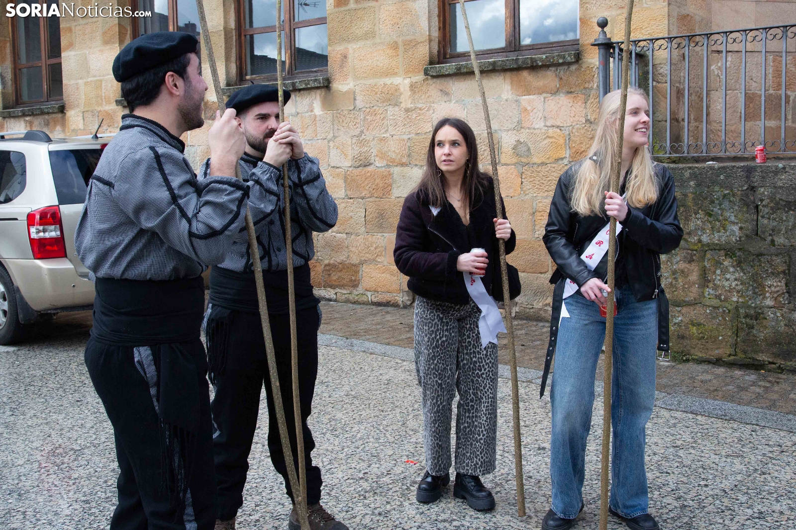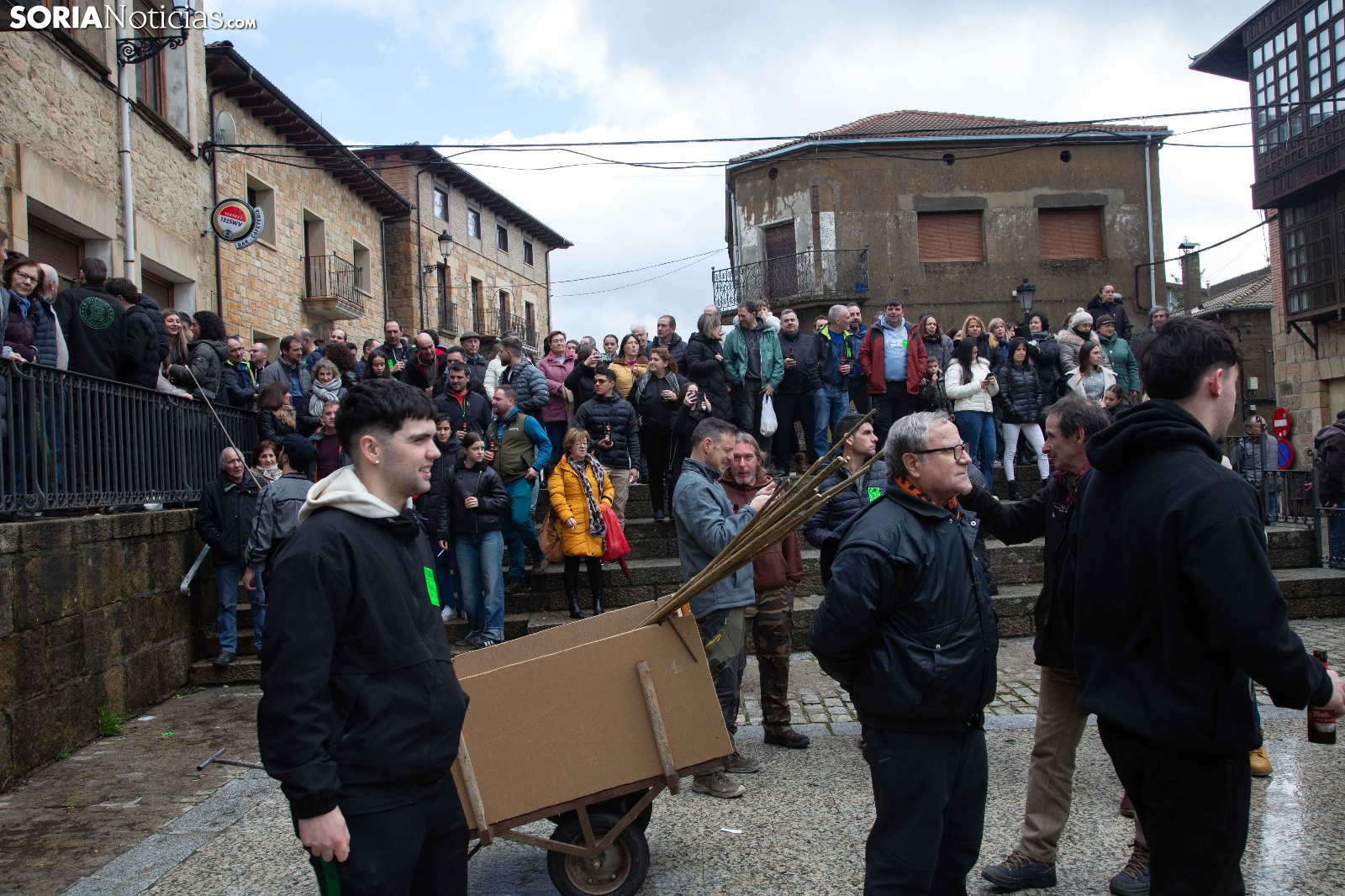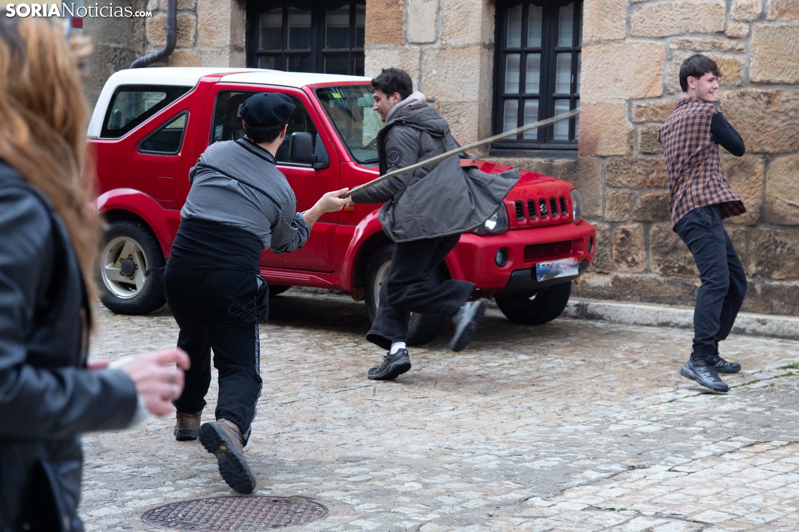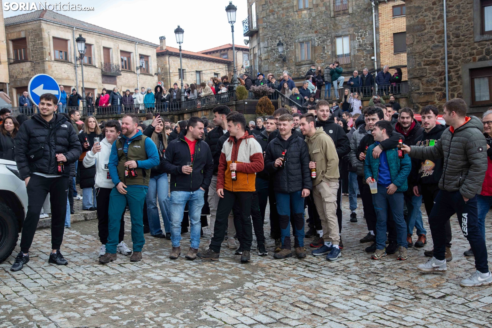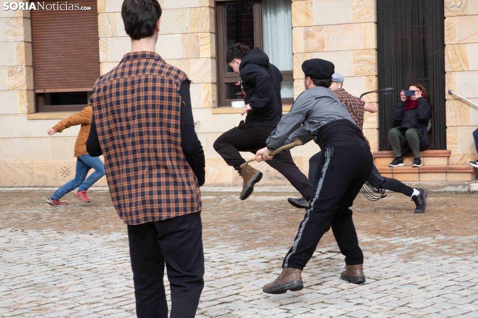 Duruelo de la Sierra ha vuelto a cumplir con su tradición de carnavales en su último día. Hoy martes, la localidad pinariega se ha echado a la calle con su tradicional recorrido musical en una ronda popular donde, como es costumbre, mayorales y motriles imponían su peculiar disciplina golpeando con varas y cintos a la concurrencia. Carreras y risas, además de algún que otro impacto ha servido de antesala para una comida popular de 'Mozos y mozas' que da paso a los disfraces y al baile.