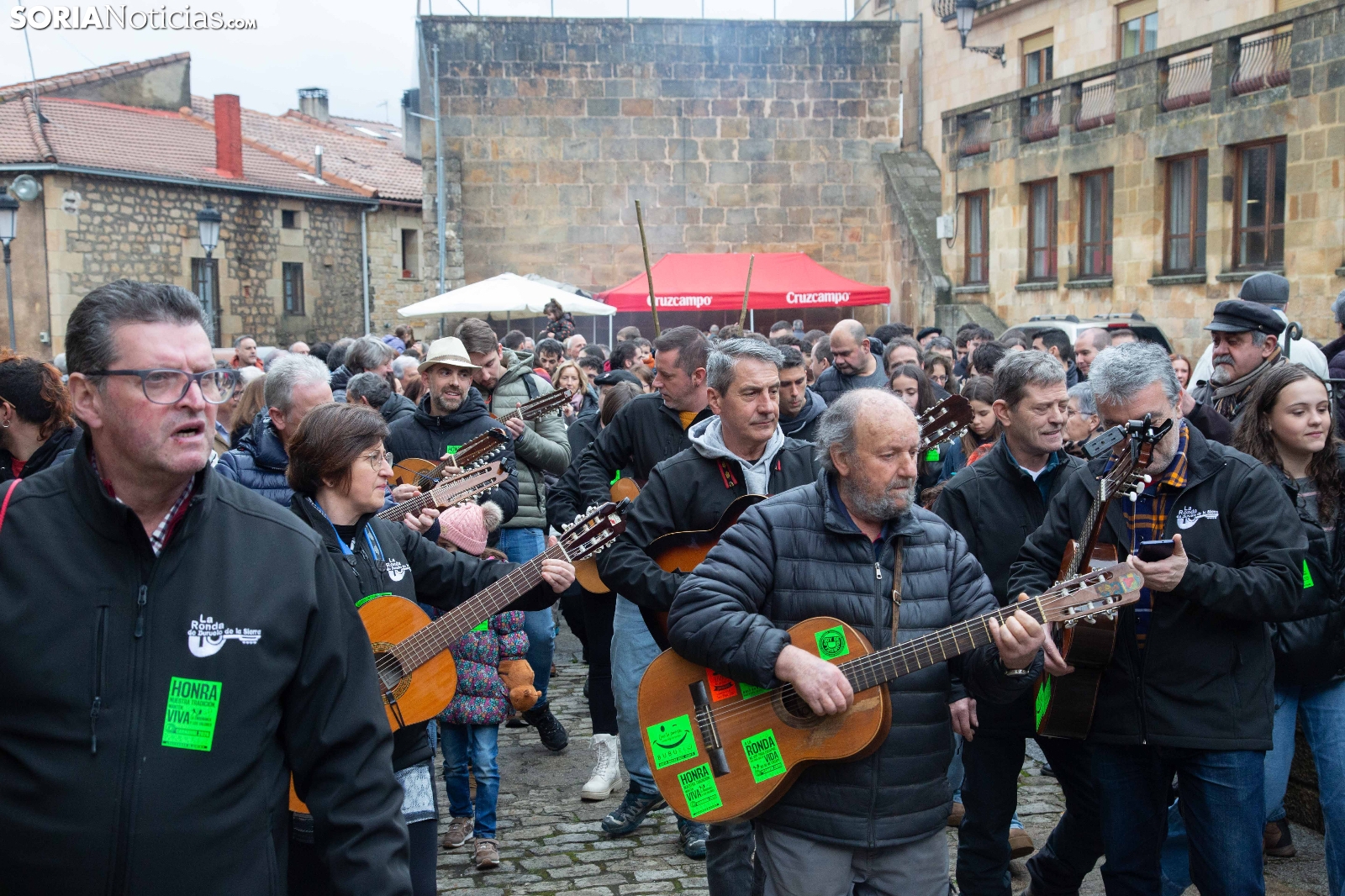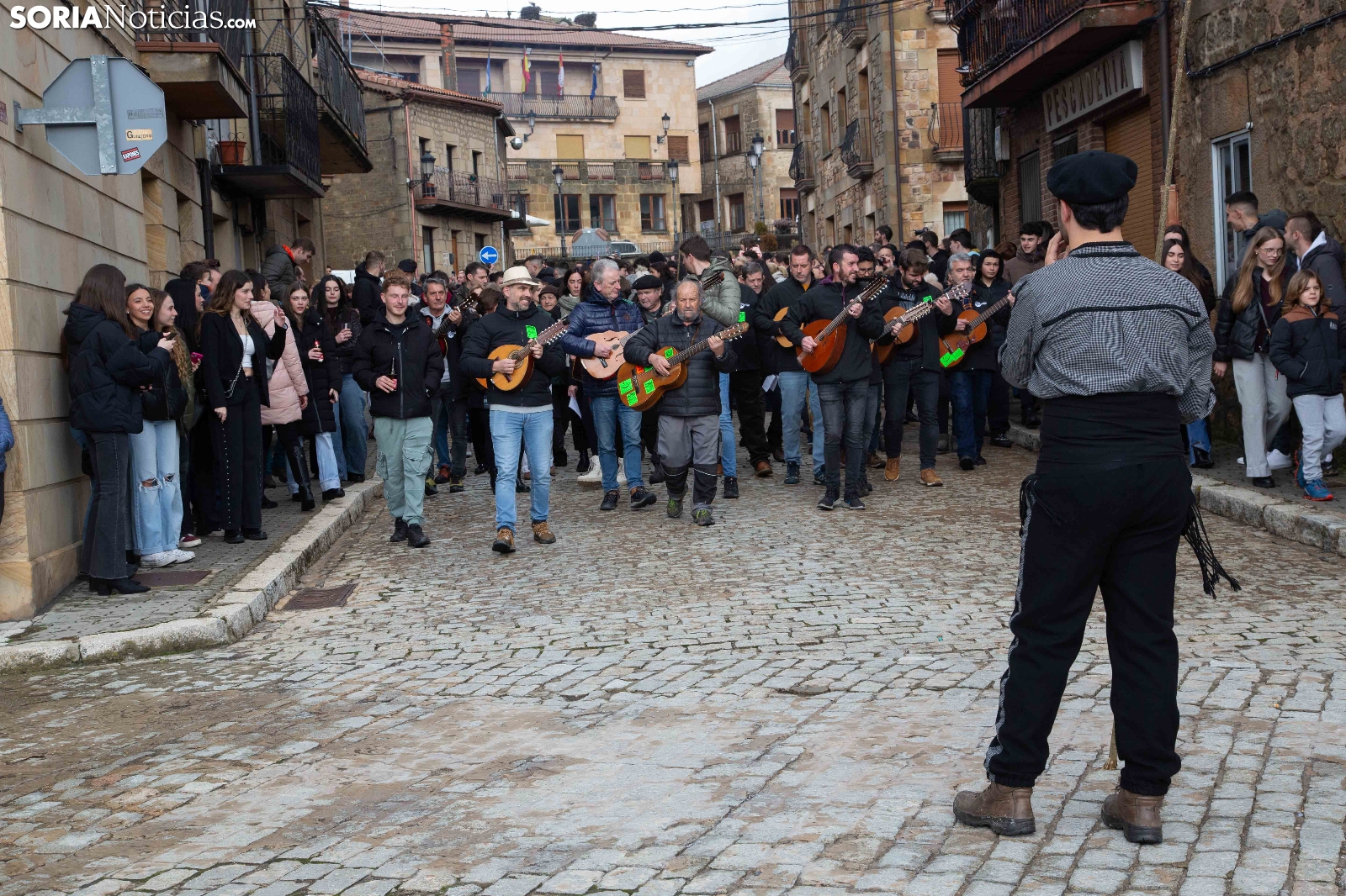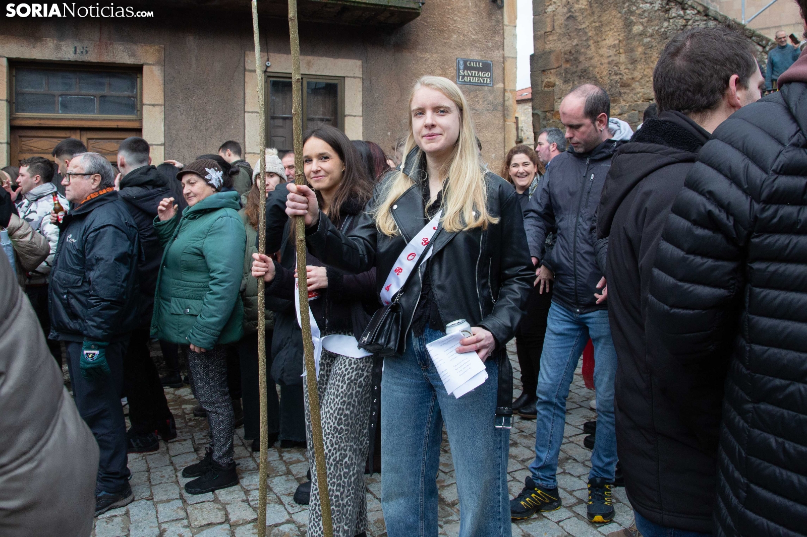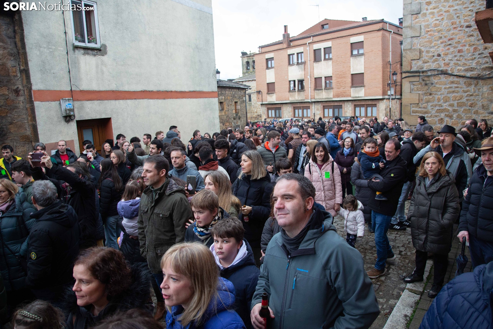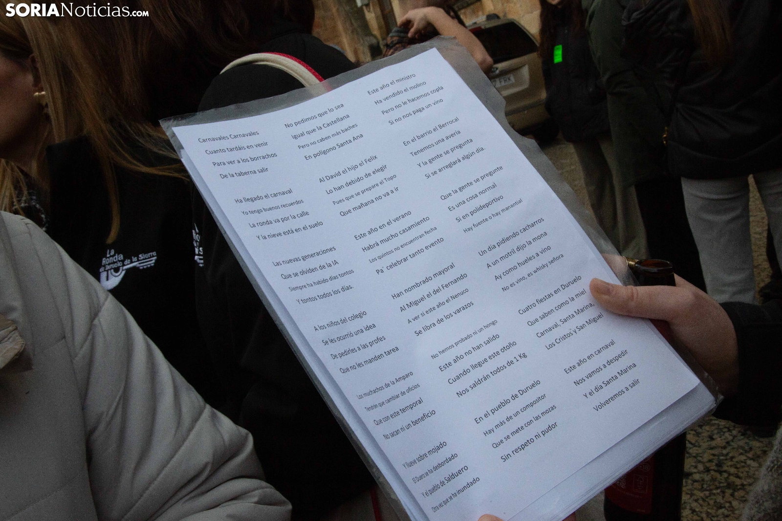 Duruelo de la Sierra ha vuelto a cumplir con su tradición de carnavales en su último día. Hoy martes, la localidad pinariega se ha echado a la calle con su tradicional recorrido musical en una ronda popular donde, como es costumbre, mayorales y motriles imponían su peculiar disciplina golpeando con varas y cintos a la concurrencia. Carreras y risas, además de algún que otro impacto ha servido de antesala para una comida popular de 'Mozos y mozas' que da paso a los disfraces y al baile.