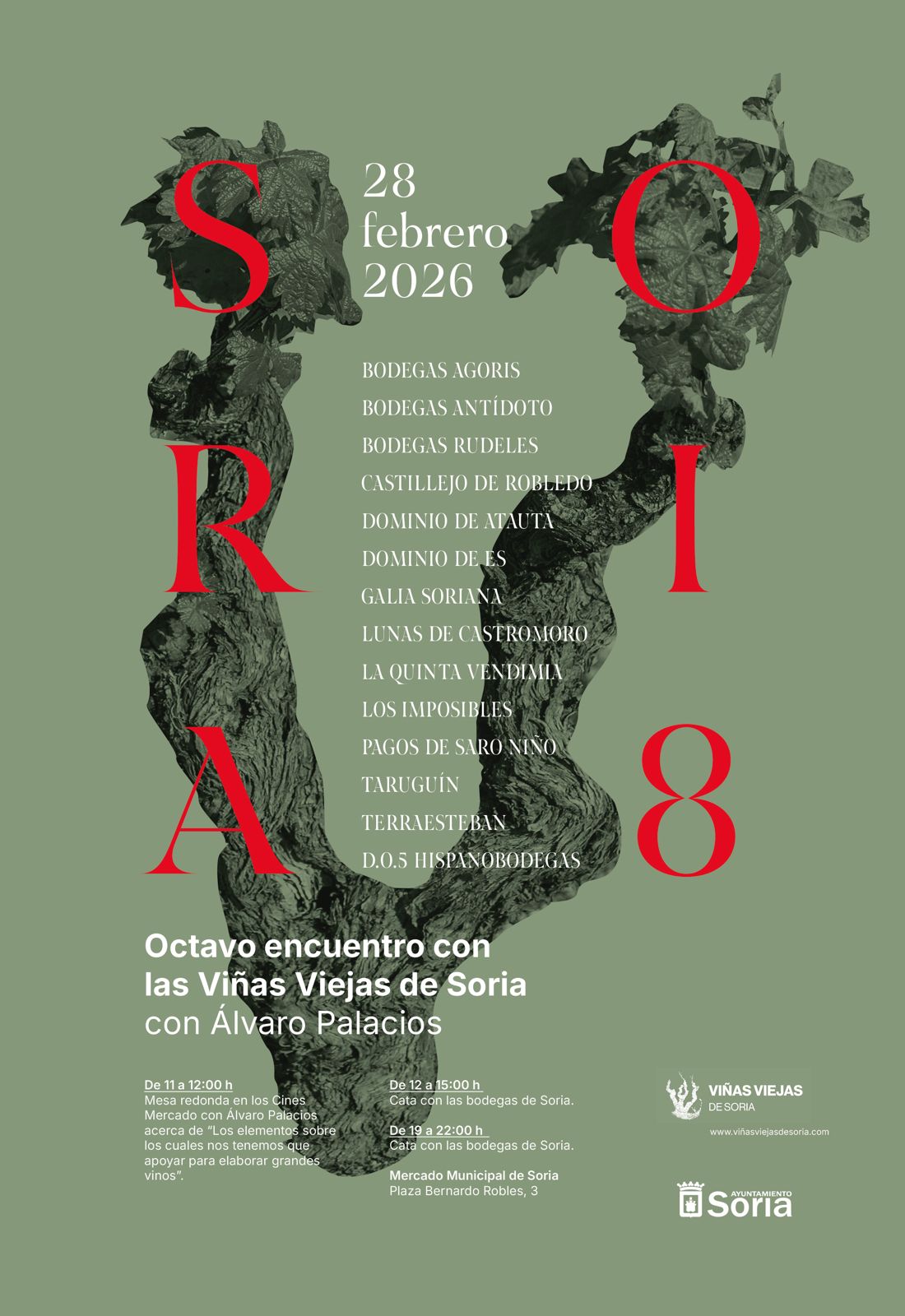La asociación Viñas Viejas de Soria regresa al escenario de la capital para reivindicar el patrimonio vitivinícola de la provincia. El Mercado Municipal de Soria será la sede, el próximo sábado 28 de febrero, para el octavo encuentro de esta agrupación, una cita que cuenta con la colaboración del Ayuntamiento de Soria y que busca poner en valor la riqueza del viñedo centenario y el carácter único del terroir de la Ribera del Duero soriana.