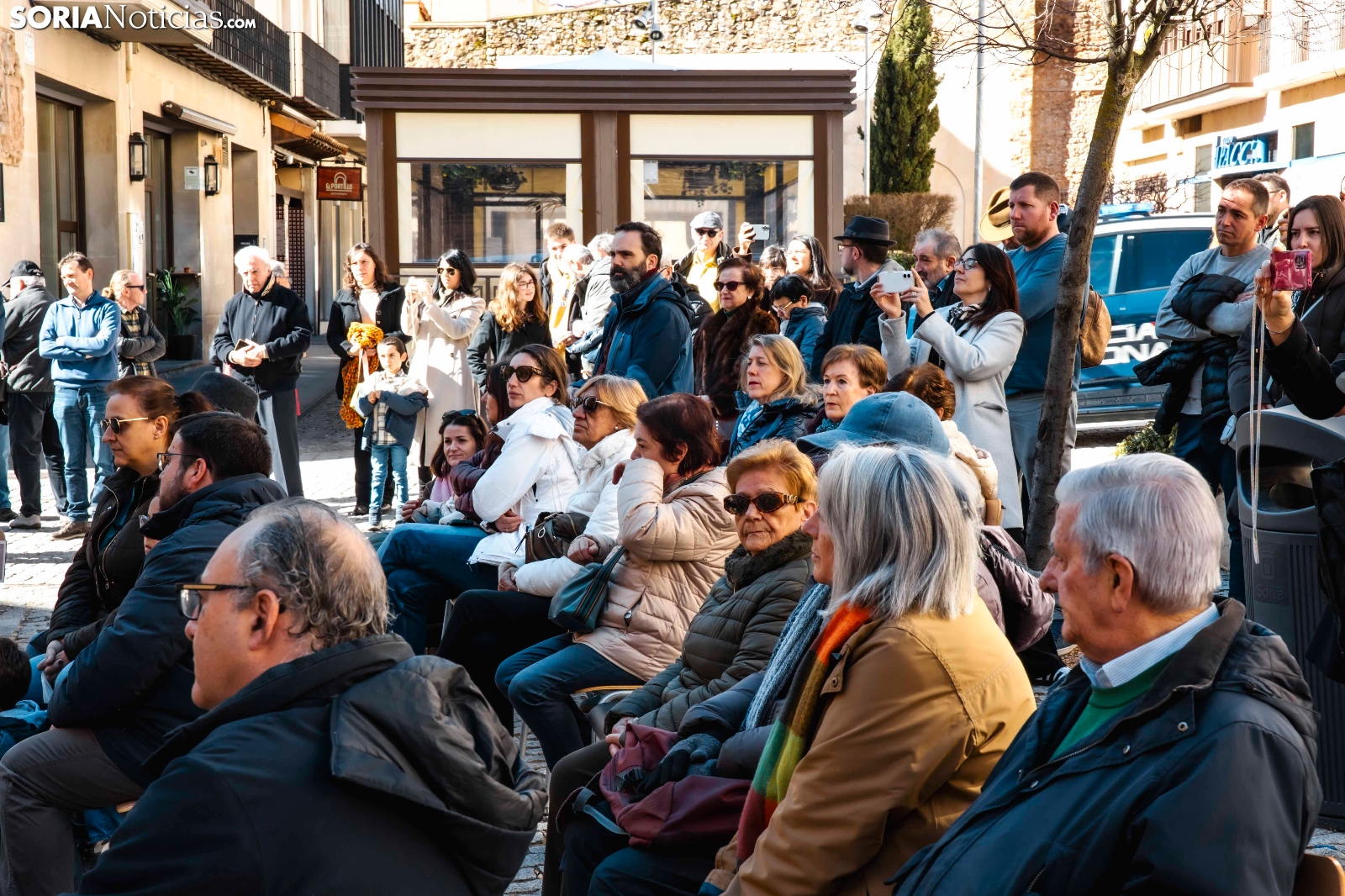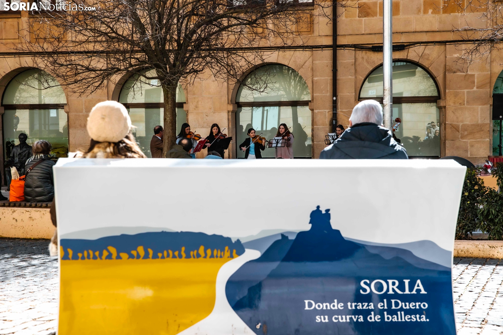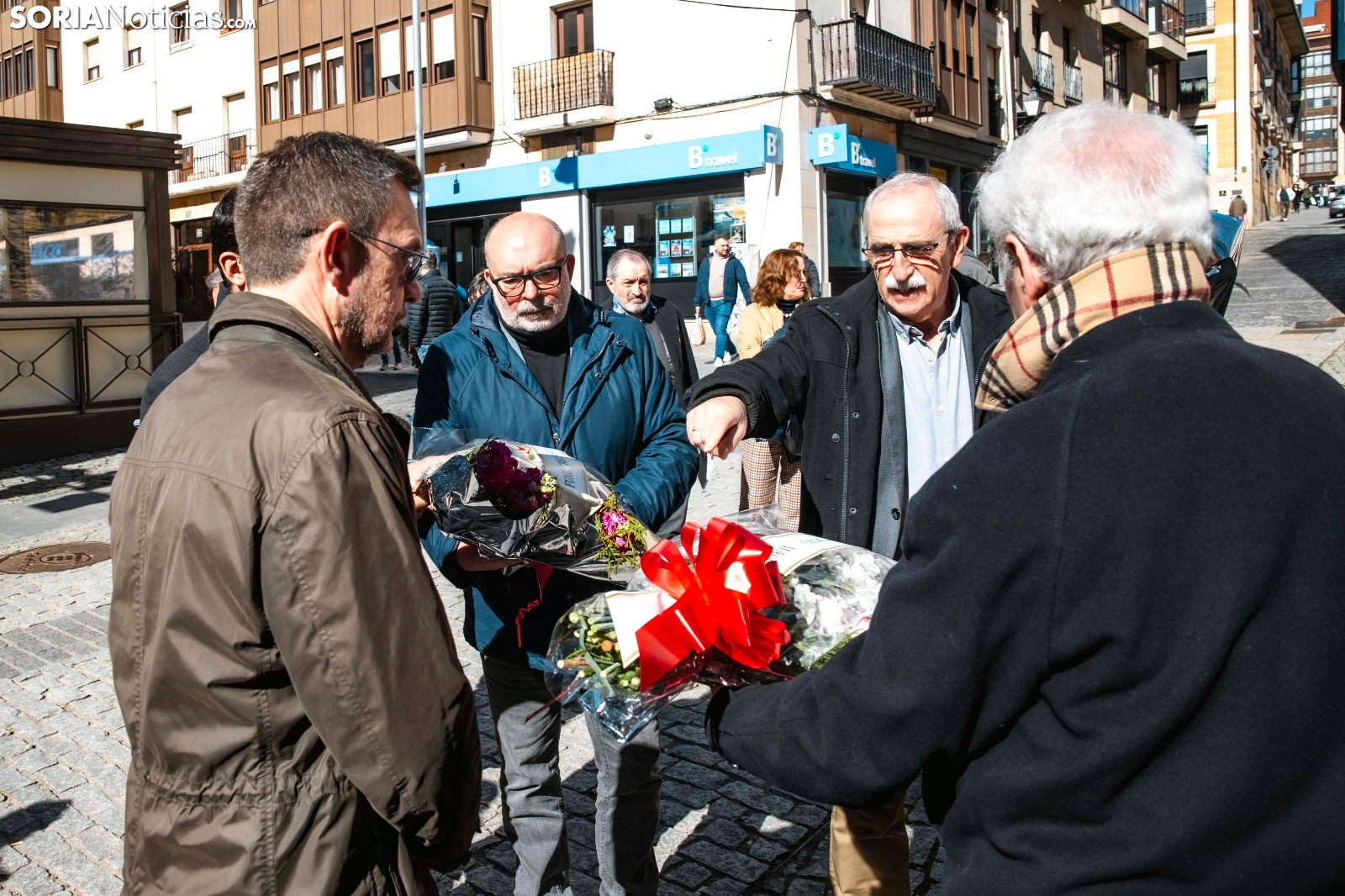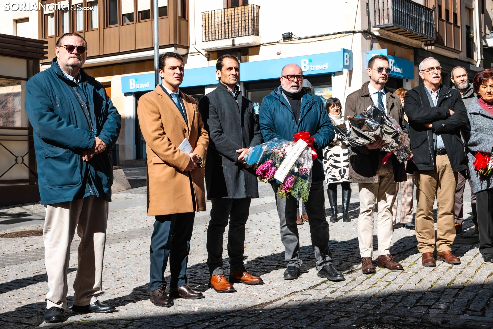 Soria ha vuelto a homenajear esta mañana a uno de sus vecinos más carismáticos, Antonio Machado. Después de que el alcalde, Carlos Martínez, llevará ayer flores a la tumba de Leonor Izquierdo, los actos se han centrado hoy en el Instituto que lleva el nombre del poeta. La jornada ha arrancado con la presentación del libro 'La tierra de Alvargonzález. Cuento-leyenda y romance' de Esther Vallejo. Seguidamente, se ha completado el homenaje poético-musical con una ofrenda de flores ante el busto de Antonio Machado en la plaza del Rosel.
