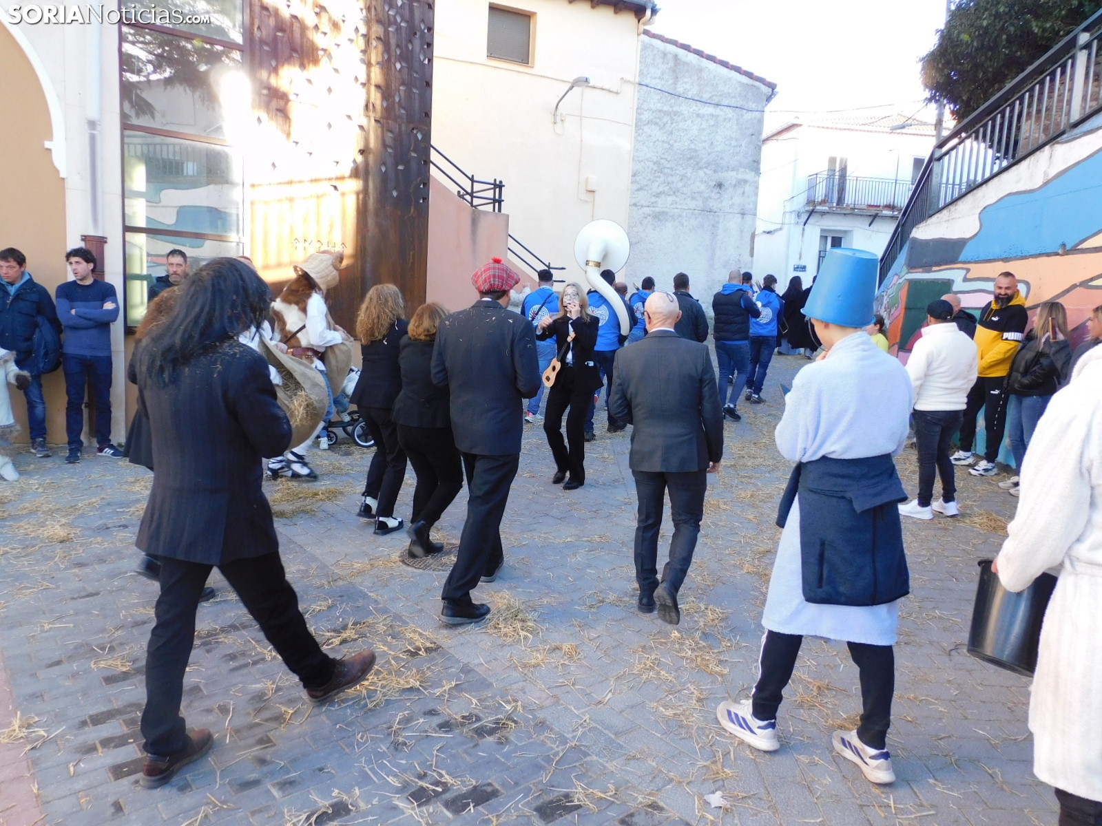 Borobia celebró a lo largo de ayer su día grande de los carnavales. Los zarrones salieron a las calles de esta localidad soriana para acompañar a la charanga y al resto de vecinos. Estos, que no pararon de bailar ni un segundo, llenaron de paja a todos los presentes disfrazados.