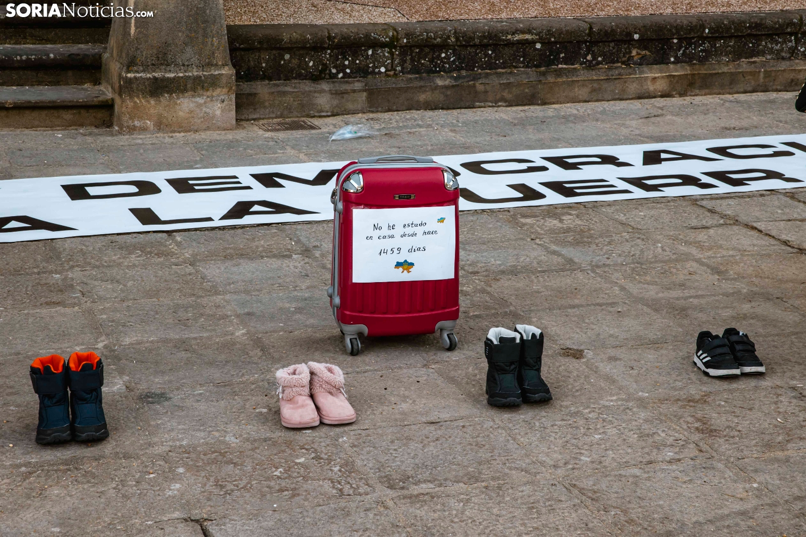 Soria no ha sido una excepción y decenas de sorianos se han concentrado esta tarde en la Plaza Mayor para dar su apoyo al pueblo ucraniano. Durante este acto, varias personas han tomado la palabra para contar sus vivencias. A ellas, también se les ha unido una cantante que ha interpretado un tema que ha puesto la piel de gallina a todos los asistentes.