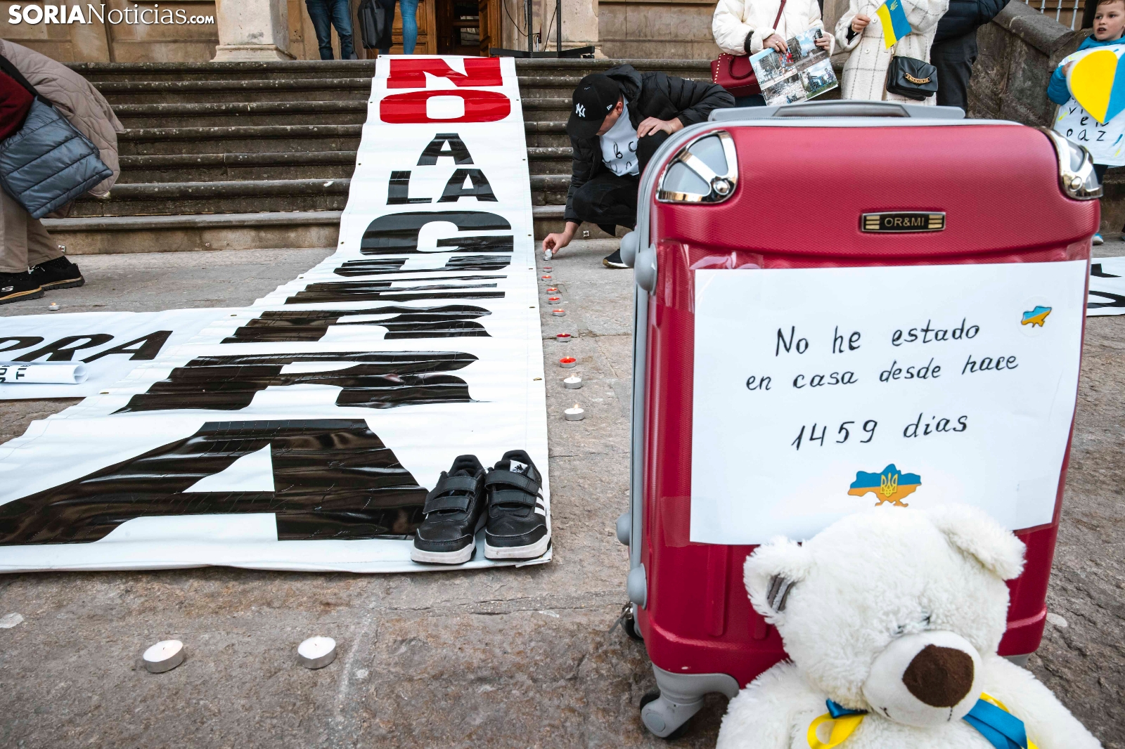 Una de las organizadoras, Marina Masalab, ha explicado a Soria Noticias en qué punto se encuentra esta Guerra: “Cada día estamos peor. Hay numerosas ciudades destruidas sin casas. Tengo a mi familia allí y ahora están a menos 15 grados sin luz ni calefacción”. Lamentando lo ocurrido, esta ucraniana que llegó a Soria en 2017 manifiesta su pesimismo al no saber “cuando terminara todo esto”.
