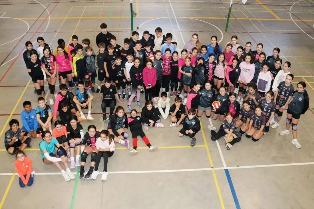 Junto a los debutantes, más de 60 jugadores ya integrados en las estructuras federadas del club —desde categoría benjamín hasta infantil— y en sus Escuelas de formación compartieron pista en un formato distinto al habitual. Durante dos horas, el enfoque se desplazó del trabajo técnico y táctico semanal hacia una dinámica más lúdica, basada en partidos de minivoley y en la interacción entre equipos y generaciones.