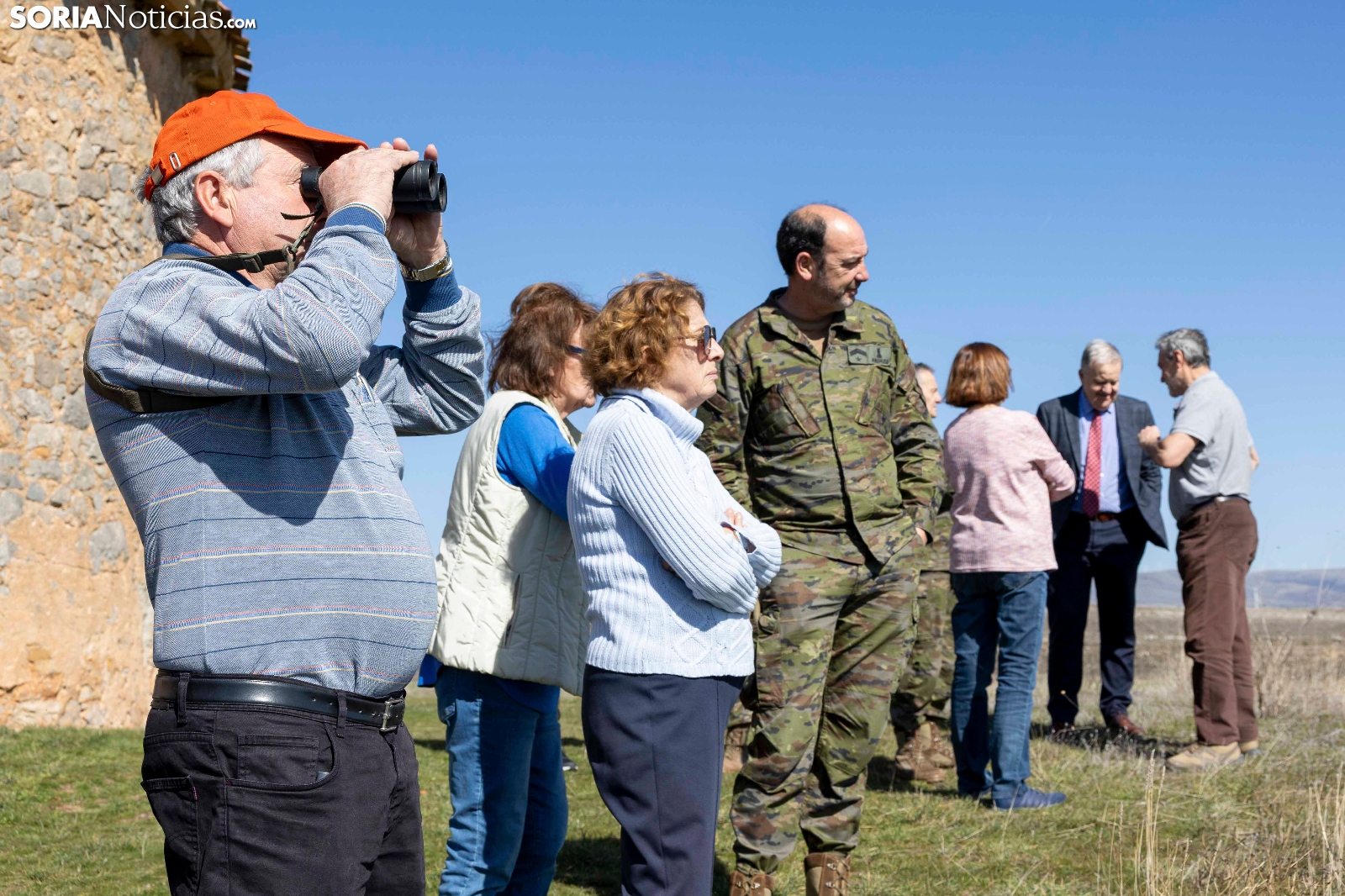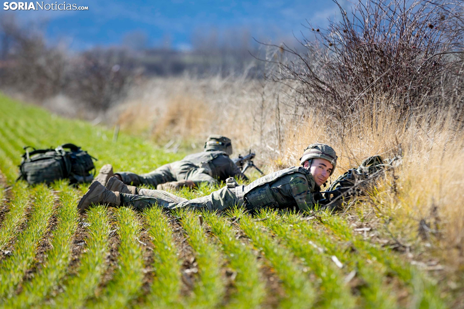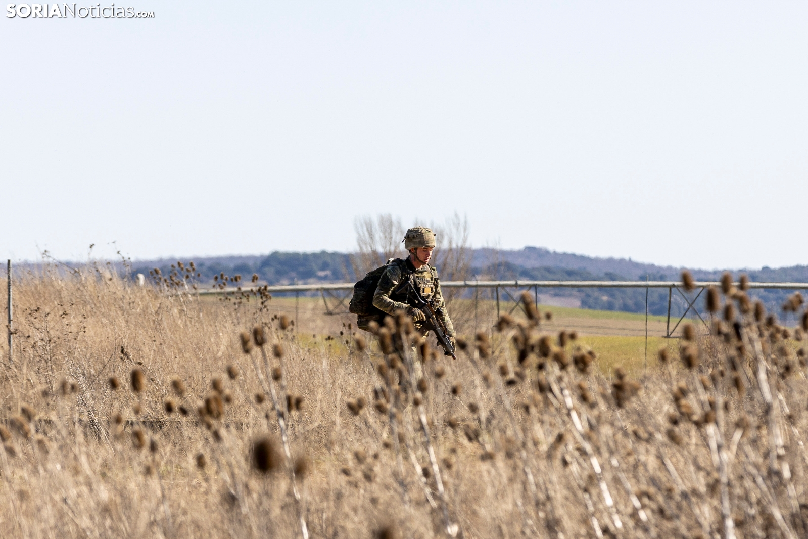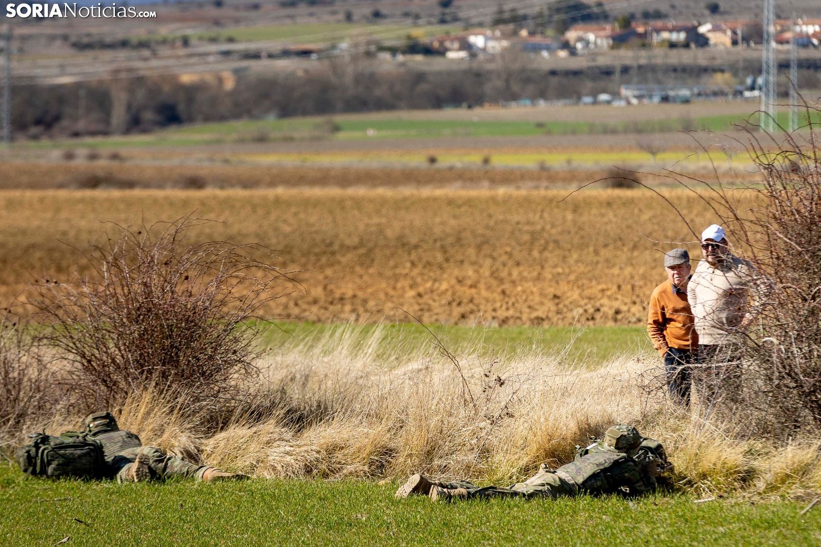 El Ejército del Reino de España ha realizado esta mañana maniobras aéreas con sus paracaidistas en los alrededores de Garray. Un total de 120 efectivos pertenecientes a la 12ª Compañía del Regimiento de Infantería 'Zaragoza', con base en Javalí Nuevo (Murcia), han realizado un salto paracaidista en la comarca, un evento que ha congregado a los más curiosos para observar con detenimiento a los militares. Esta maniobra forma parte de un ejercicio tipo MEP (Misión Especial Paracaidista) de la Brigada Paracaidista. Así pues, el entorno de Garray ha visto cómo aparecían motas en su cielo, unas motas que no eran pájaros ni aviones, eran militares entrenándose al más alto nivel.