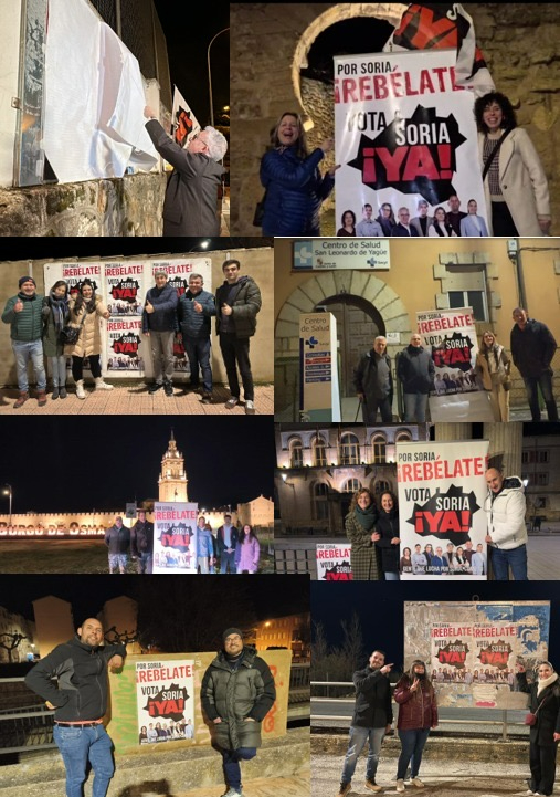 Por su parte, Soria ¡YA! arrancó la campaña con una pegada simultánea en ocho municipios de la provincia. En Soria capital estuvo el cabeza de lista, Ángel Ceña; en Ágreda, la número dos, Inmaculada Ramos; y en Almazán, el número tres, Juan Antonio Palomar, mientras el resto de candidatos se repartió por otras localidades.