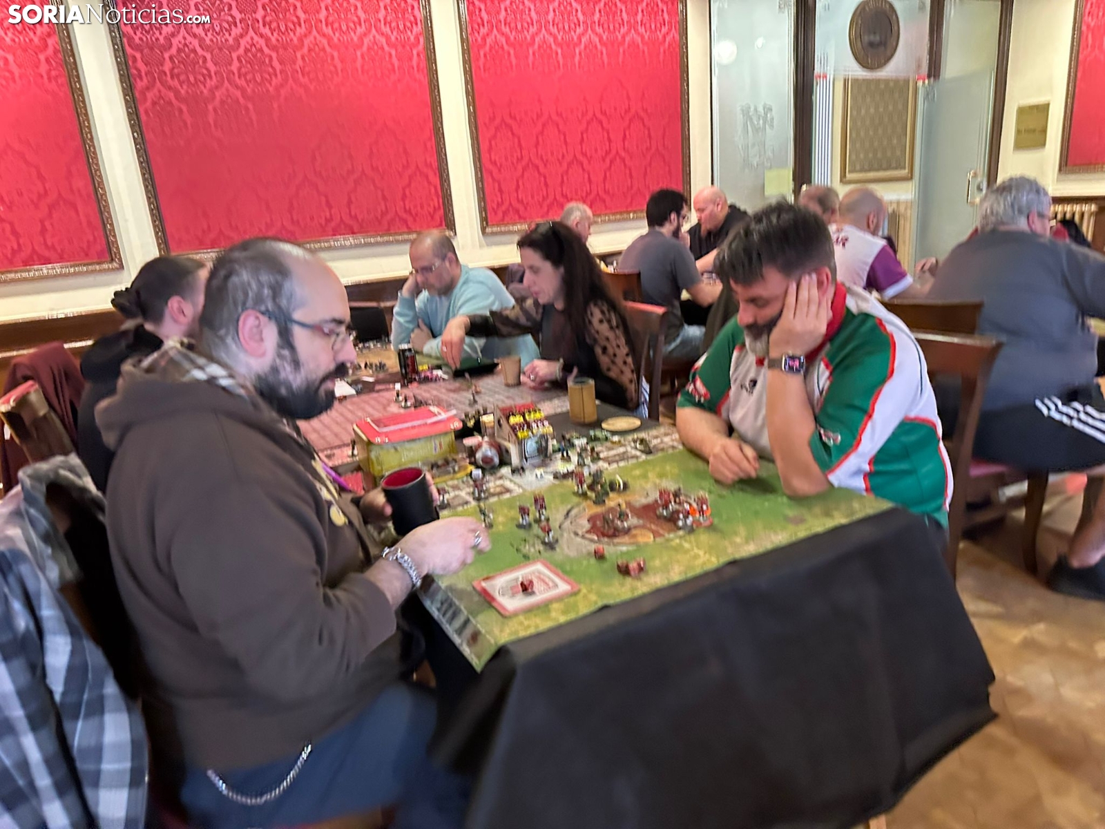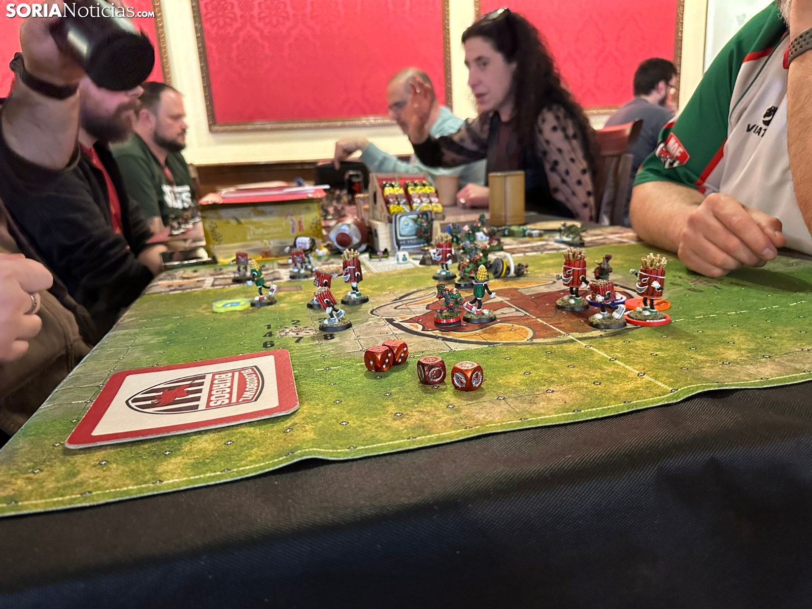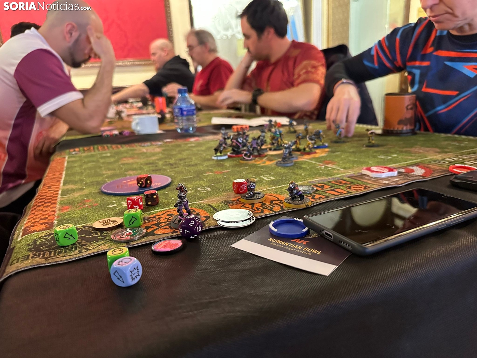 Soria ha acogido la primera edición del Numantian Bowl a lo largo de la jornada de hoy en el Casino. El organizador del encuentro, Sergio Moreno, ha detallado que la cita consiste en la recreación de partidos de fútbol americano mediante el uso de miniaturas de fantasía clásica. En estos tableros, los estrategas dirigen a equipos formados por criaturas mitológicas como elfos, orcos o humanos, en un formato que combina la táctica deportiva con el azar de los dados.