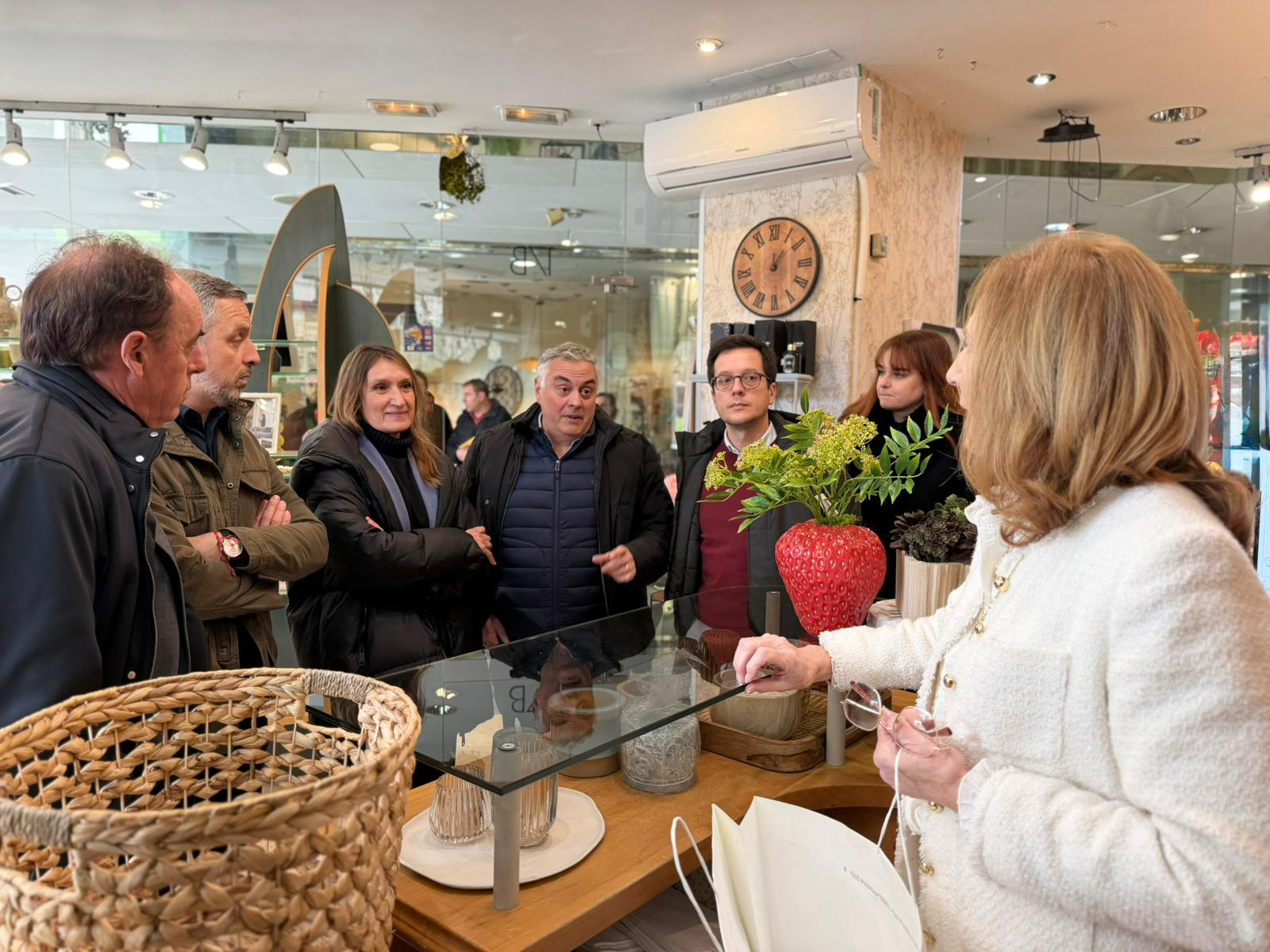 La cita ha tenido lugar en un establecimiento comercial de la capital, donde la candidata popular Rocío Lucas ha acudido acompañada por cargos orgánicos del partido y por Juan Bravo, vicesecretario de Hacienda y Asuntos Económicos del PP.
