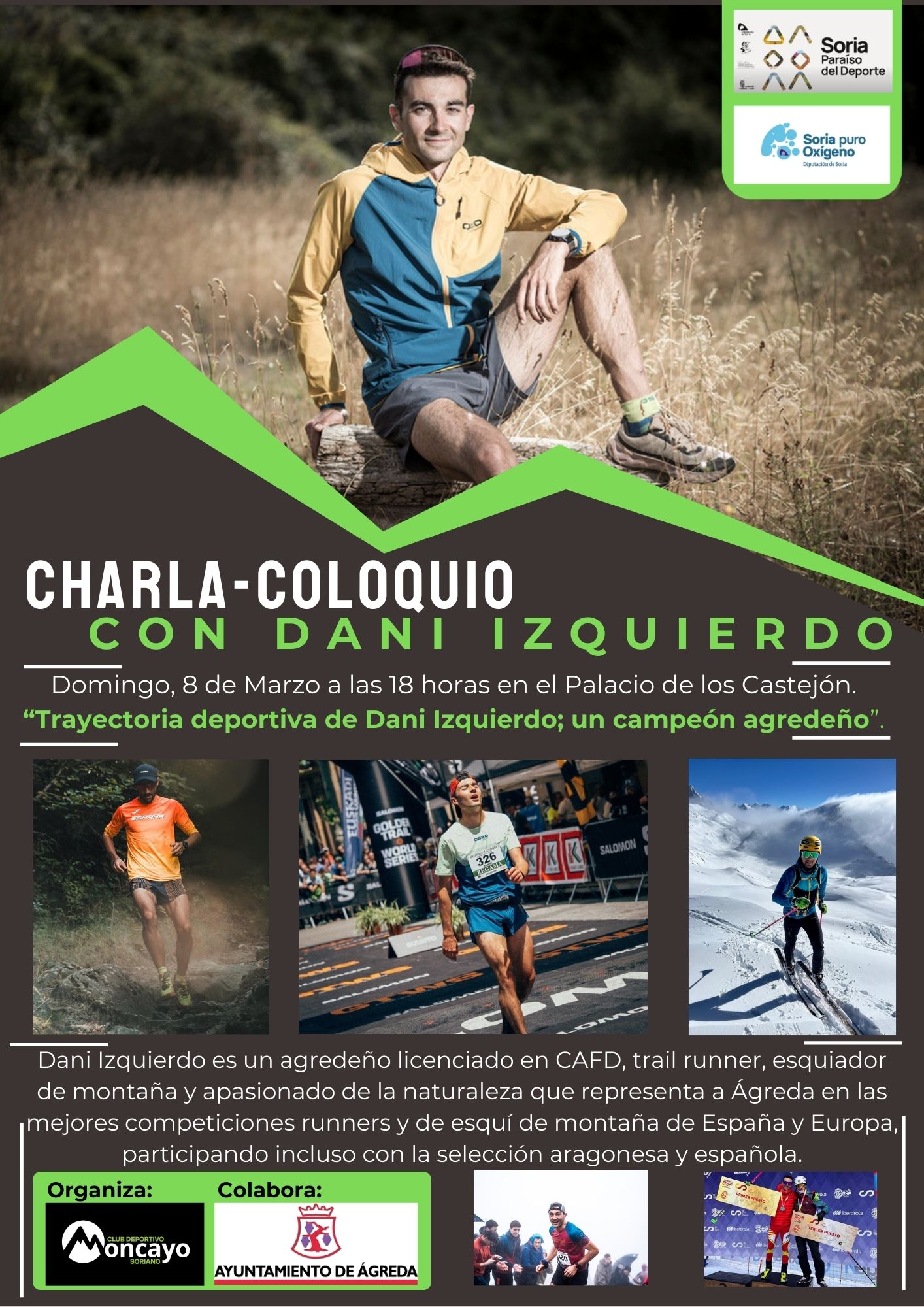 El Palacio de los Castejones de Ágreda acogerá un acto donde el deporte de élite y el arraigo local se dan la mano, toda vez que el Club Ciclista Moncayo Soriano ha organizado una charla-coloquio protagonizada por uno de los embajadores más destacados de la villa. A partir de las 18:00 horas, el deportista agredeño Dani Izquierdo compartirá con sus vecinos una década de trayectoria, desde sus inicios en el Duatlón del Moncayo Soriano hasta su reciente consagración como campeón de la Copa de España de Esquí de Montaña, un título que reafirma su posición en la primera línea de la competición nacional.