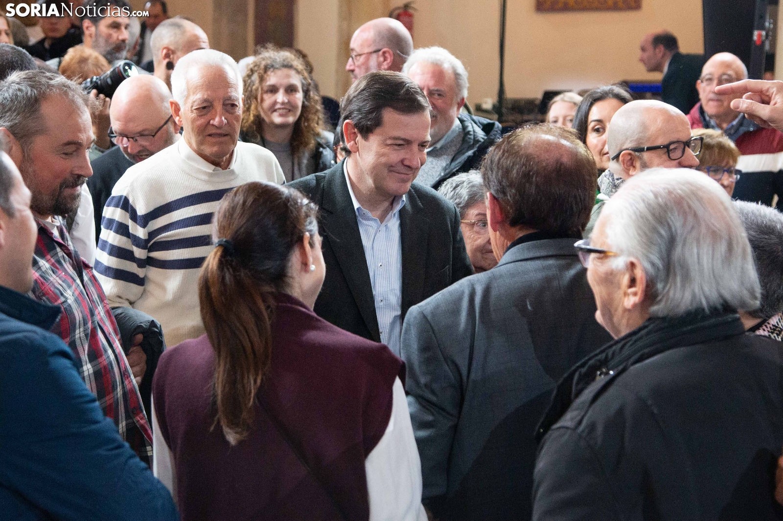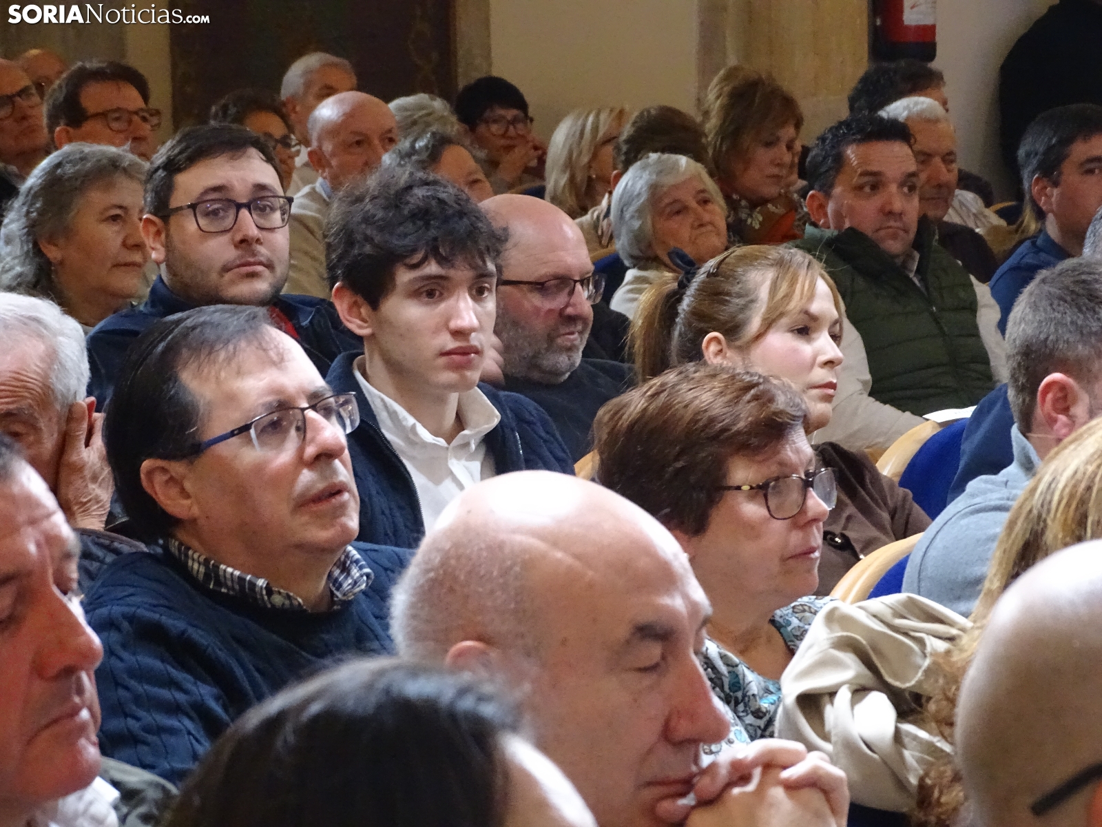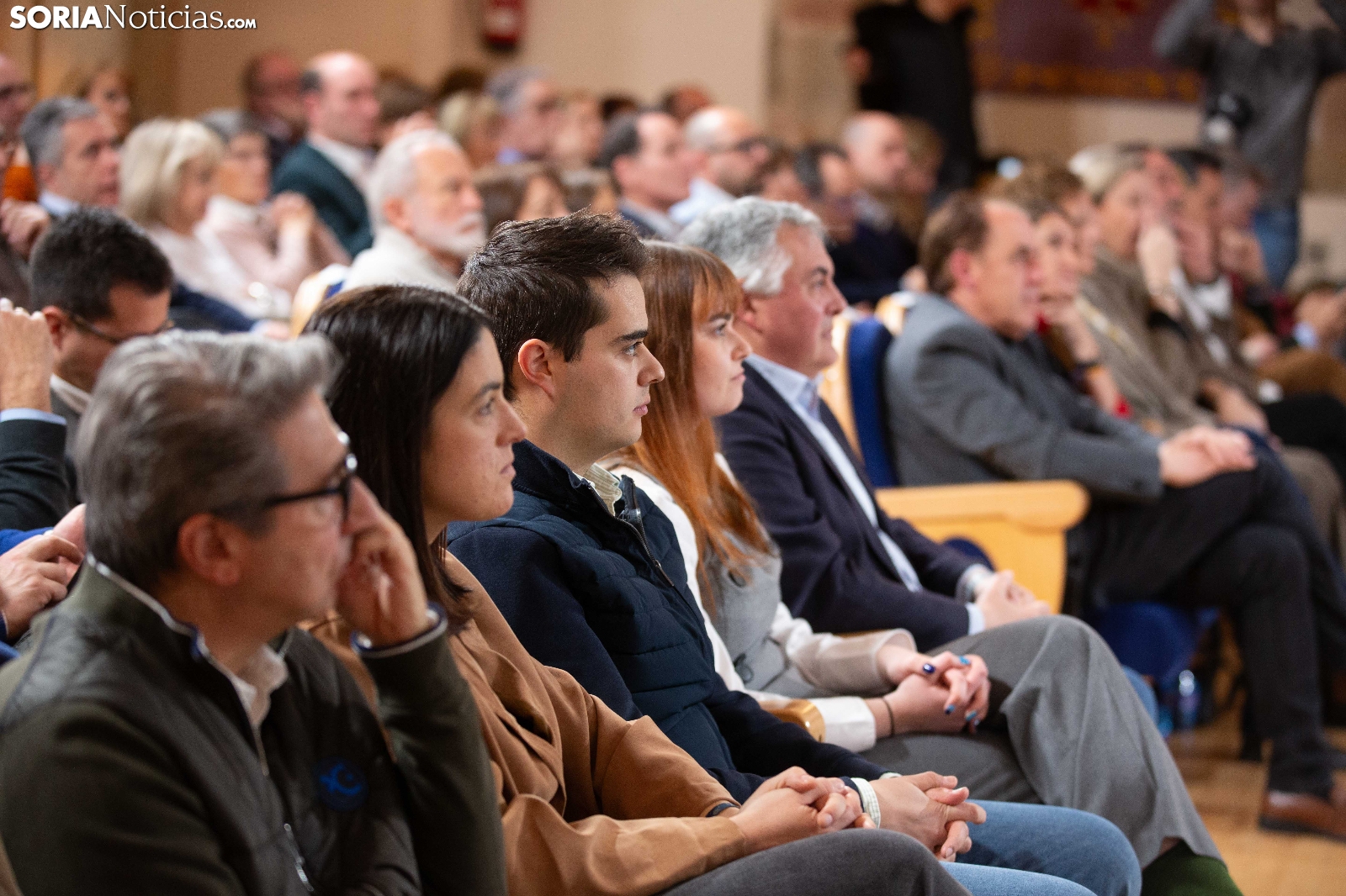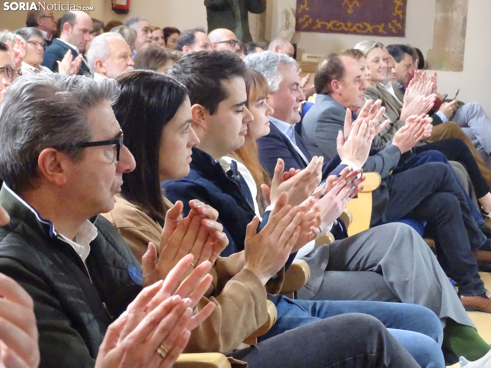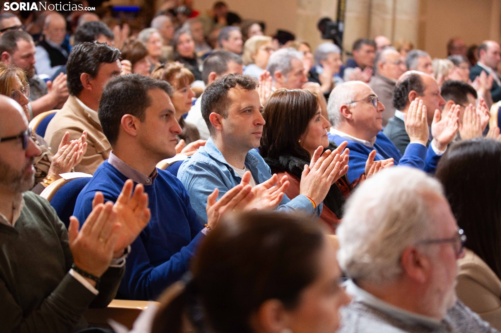 Multitudinaria asistencia en el acto del PP que ha celebrado hoy en el Aula Magna Tirso de Molina, una cita eje de la campaña del 15M para la formación de Feijóo en Soria. Simpatizantes, afiliados y alcaldes han arropado al candidato a presidir la Junta, Alfonso Fernández Mañueco, dentro de un mitin en el que han intervenido Rocío Lucas, primera en la lista por Soria, y Benito Serrano, presidente de la formación en la provincia. Caras conocidas y también nuevas en el panorama político con una puesta en escena sin estridencias, dentro de una convocatoria celebrada en el ecuador del compás electoral.