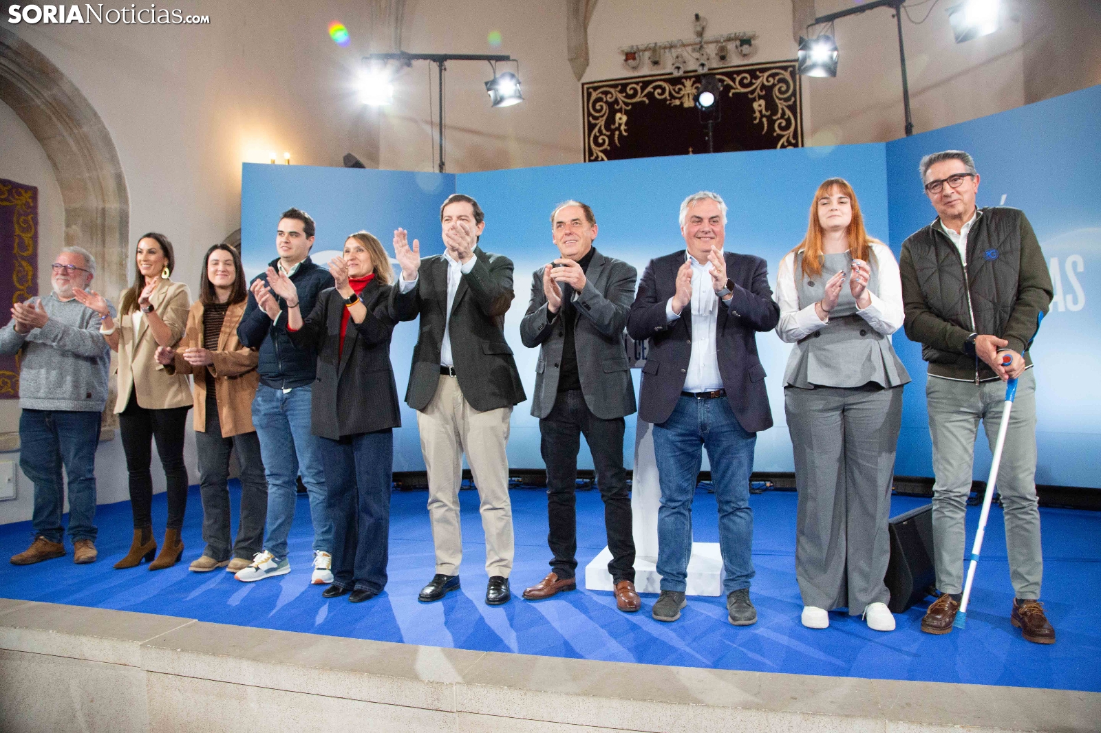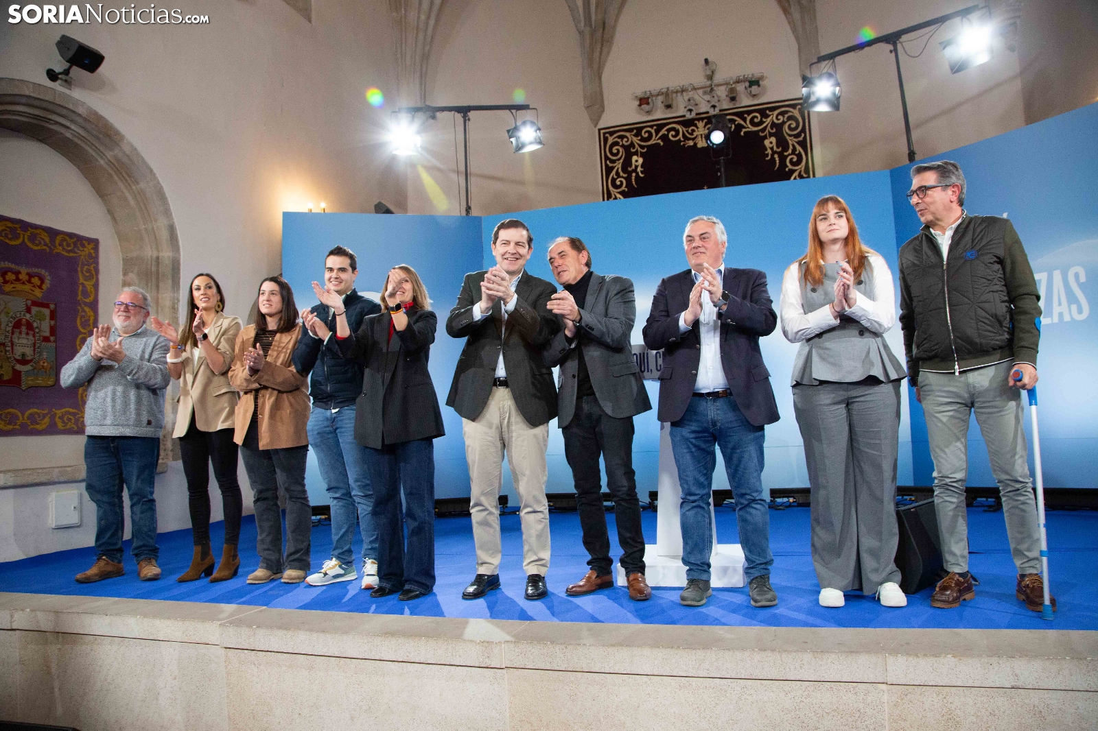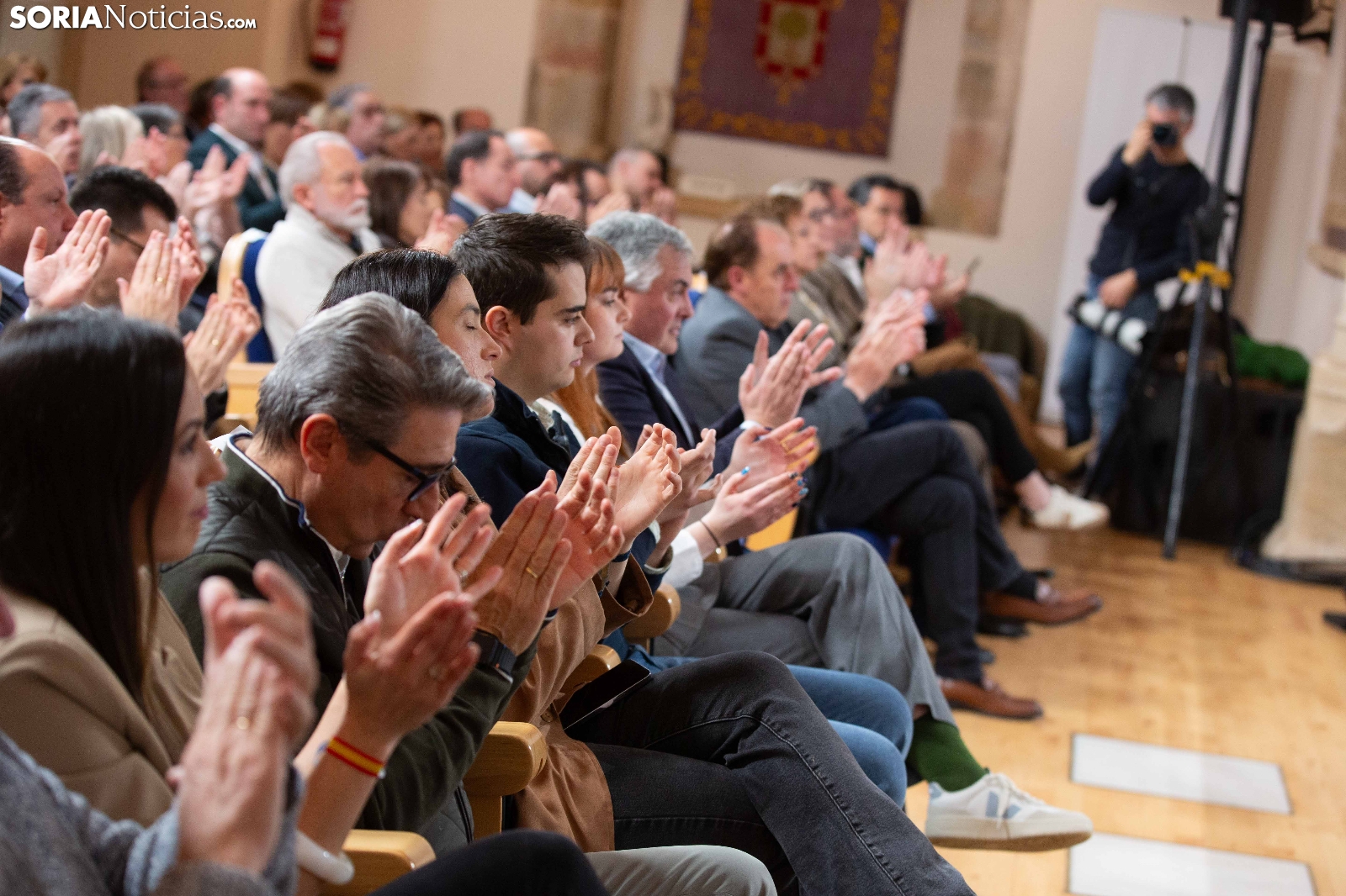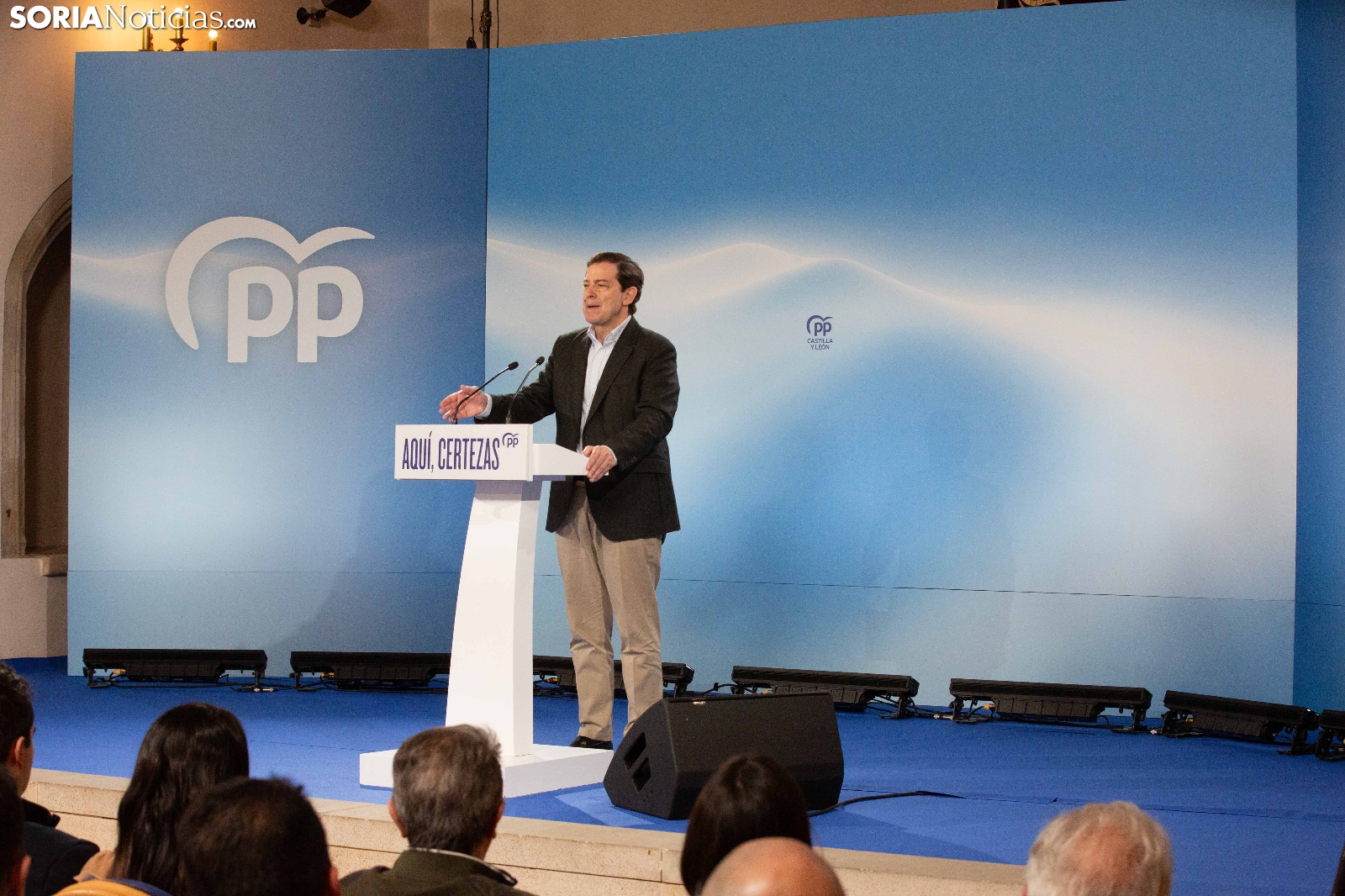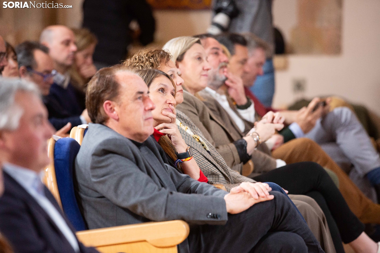 Multitudinaria asistencia en el acto del PP que ha celebrado hoy en el Aula Magna Tirso de Molina, una cita eje de la campaña del 15M para la formación de Feijóo en Soria. Simpatizantes, afiliados y alcaldes han arropado al candidato a presidir la Junta, Alfonso Fernández Mañueco, dentro de un mitin en el que han intervenido Rocío Lucas, primera en la lista por Soria, y Benito Serrano, presidente de la formación en la provincia. Caras conocidas y también nuevas en el panorama político con una puesta en escena sin estridencias, dentro de una convocatoria celebrada en el ecuador del compás electoral.