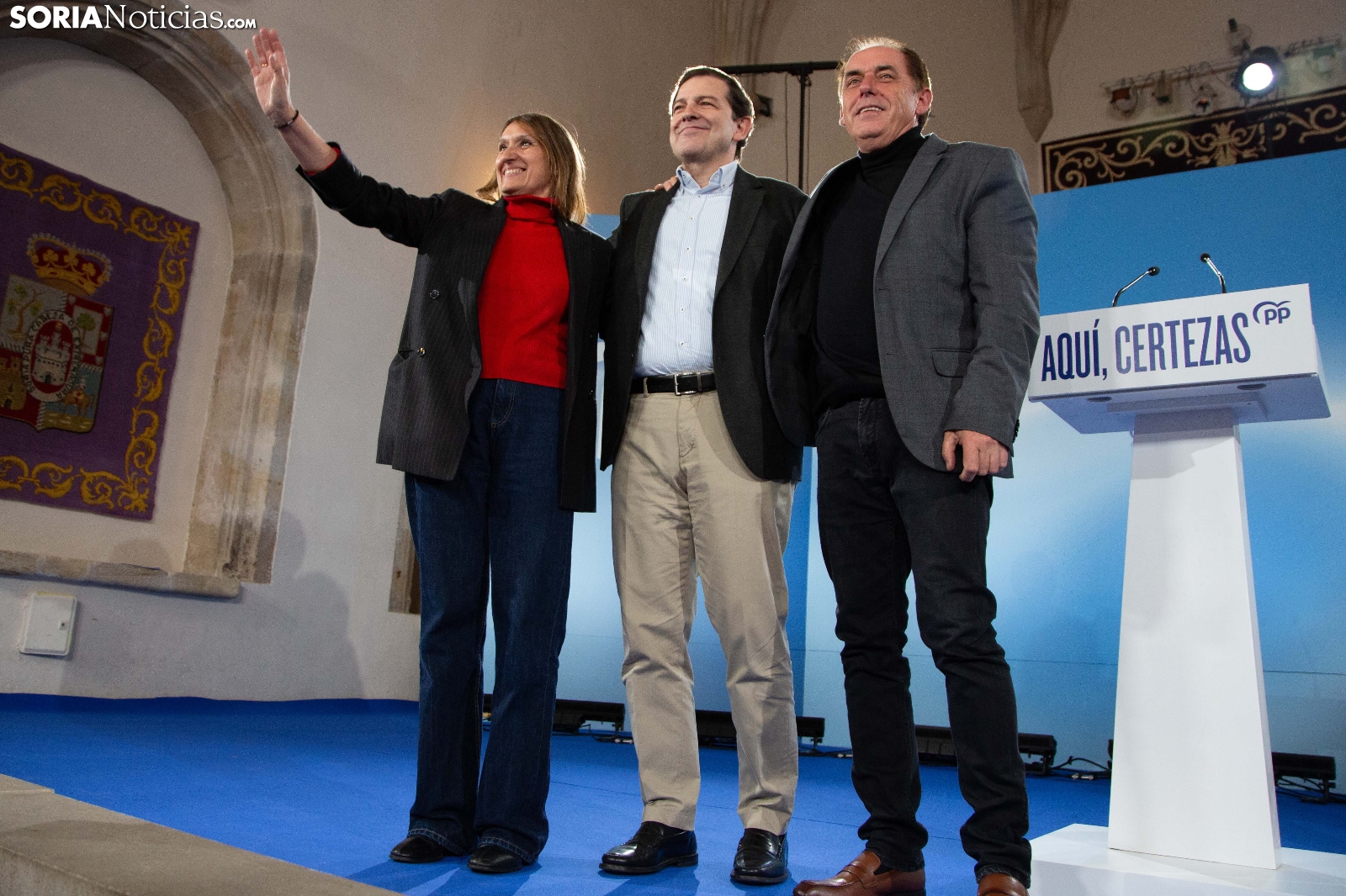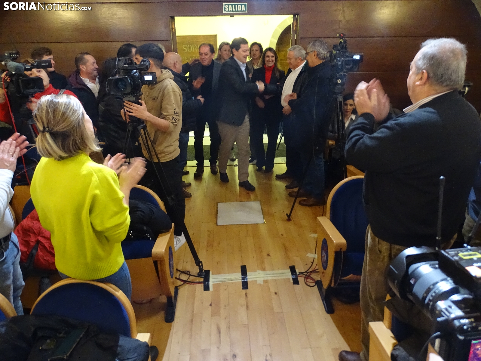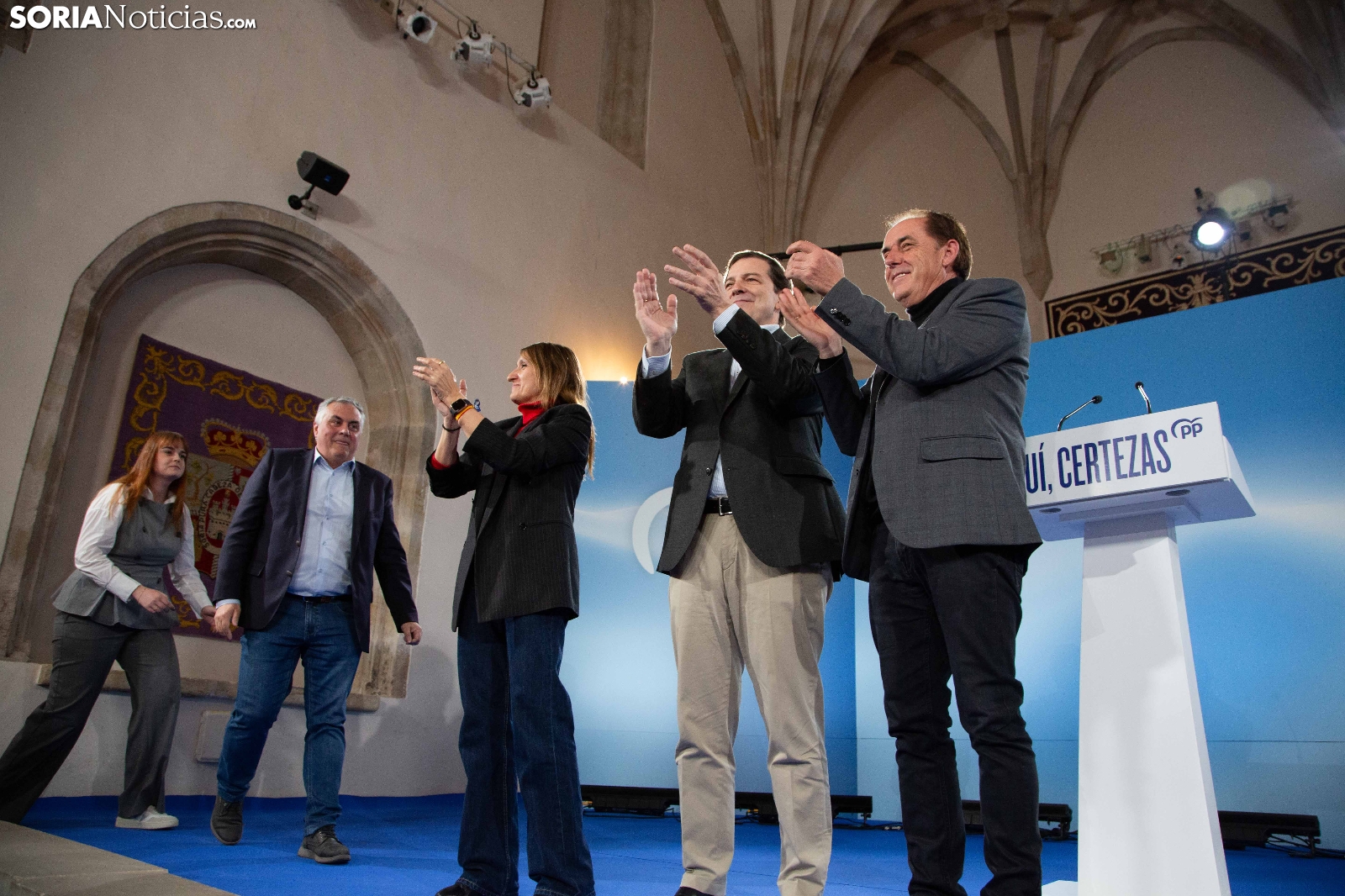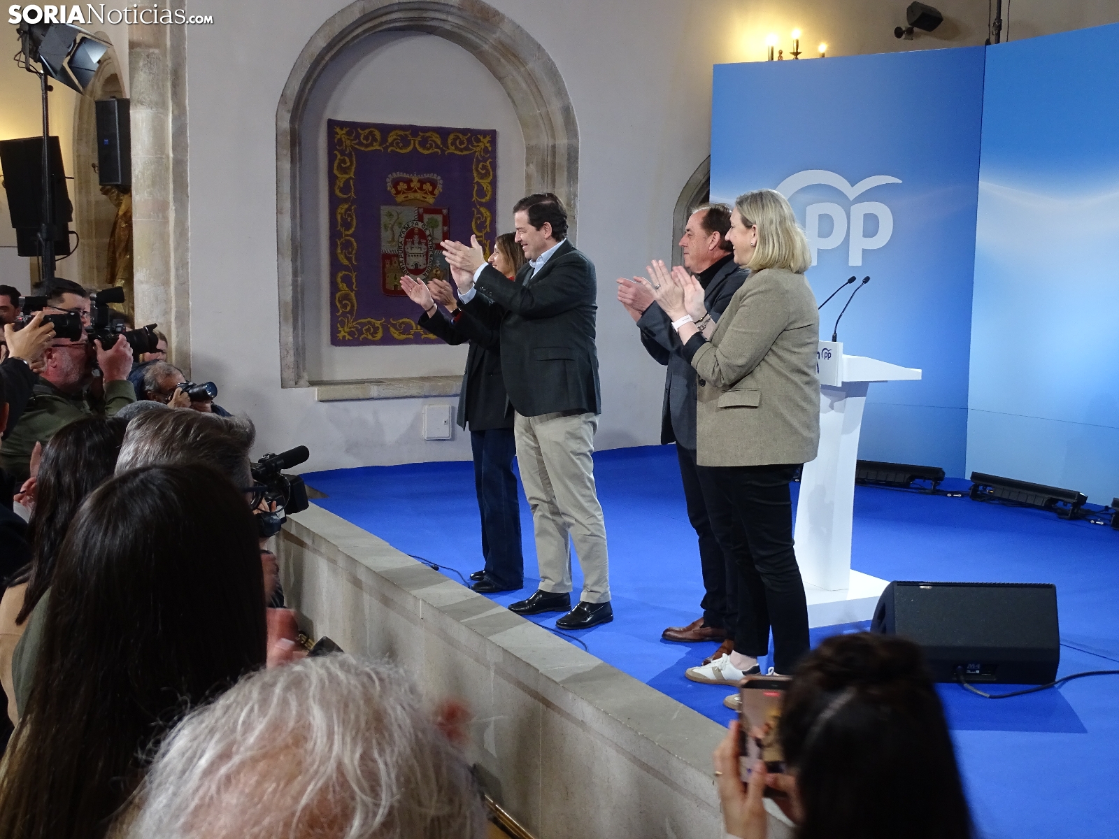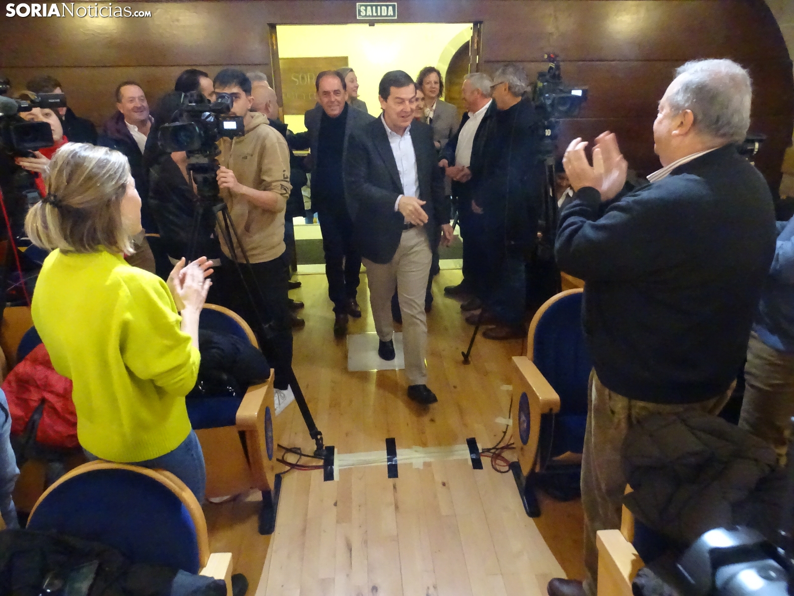 Multitudinaria asistencia en el acto del PP que ha celebrado hoy en el Aula Magna Tirso de Molina, una cita eje de la campaña del 15M para la formación de Feijóo en Soria. Simpatizantes, afiliados y alcaldes han arropado al candidato a presidir la Junta, Alfonso Fernández Mañueco, dentro de un mitin en el que han intervenido Rocío Lucas, primera en la lista por Soria, y Benito Serrano, presidente de la formación en la provincia. Caras conocidas y también nuevas en el panorama político con una puesta en escena sin estridencias, dentro de una convocatoria celebrada en el ecuador del compás electoral.