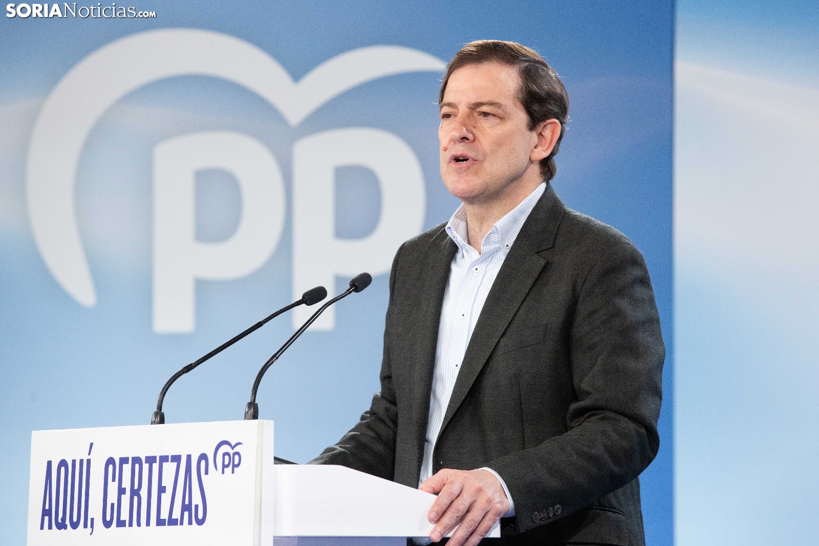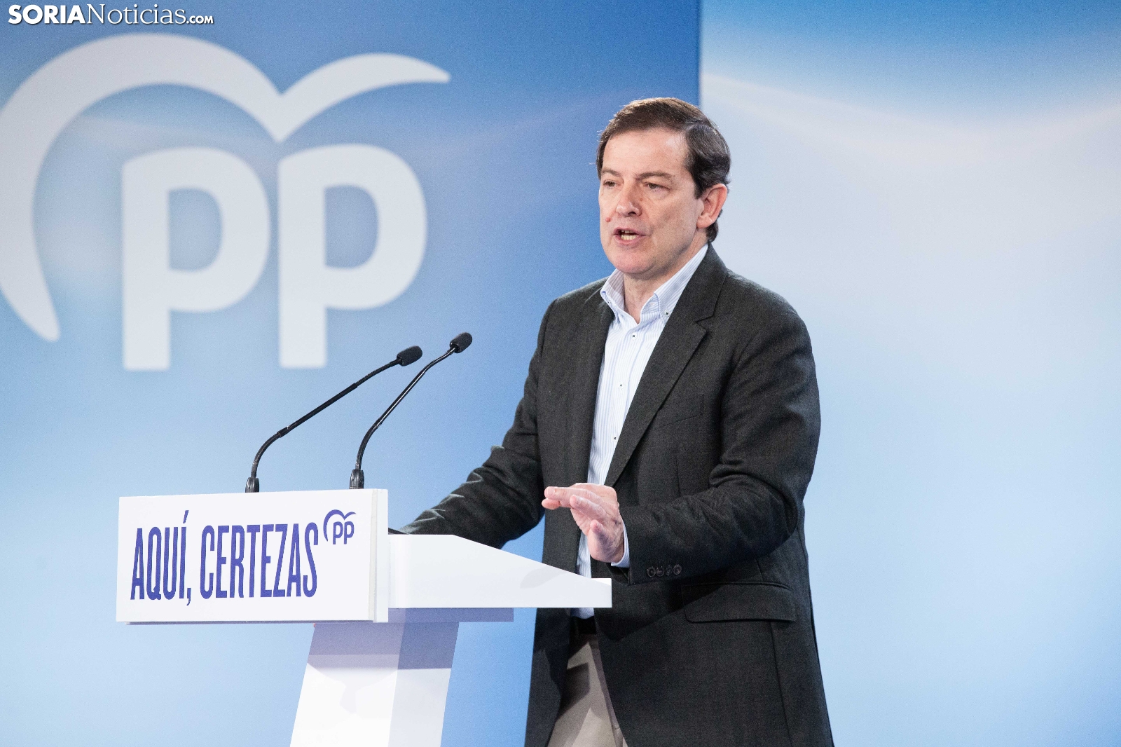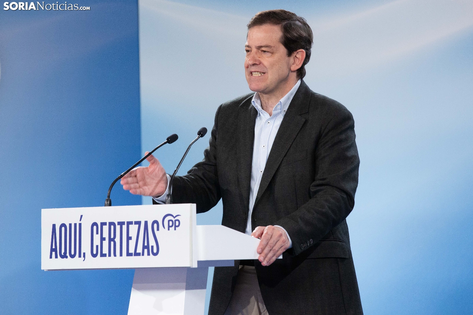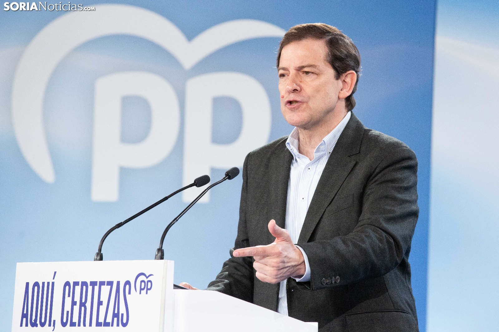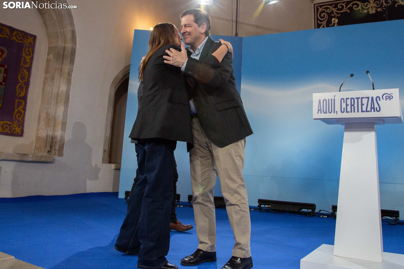 Multitudinaria asistencia en el acto del PP que ha celebrado hoy en el Aula Magna Tirso de Molina, una cita eje de la campaña del 15M para la formación de Feijóo en Soria. Simpatizantes, afiliados y alcaldes han arropado al candidato a presidir la Junta, Alfonso Fernández Mañueco, dentro de un mitin en el que han intervenido Rocío Lucas, primera en la lista por Soria, y Benito Serrano, presidente de la formación en la provincia. Caras conocidas y también nuevas en el panorama político con una puesta en escena sin estridencias, dentro de una convocatoria celebrada en el ecuador del compás electoral.