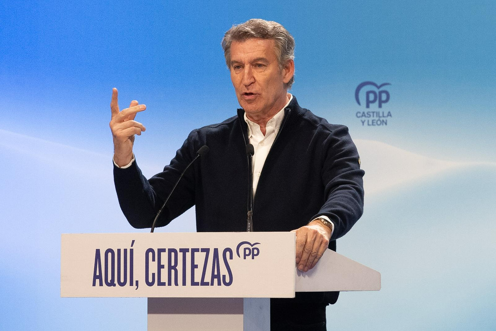 El líder del Partido Popular, Alberto Núñez Feijóo, protagonizó un mitin en el Centro Cultural San Agustín de El Burgo de Osma dentro de su gira de campaña por la provincia.