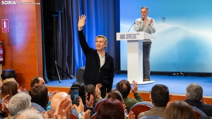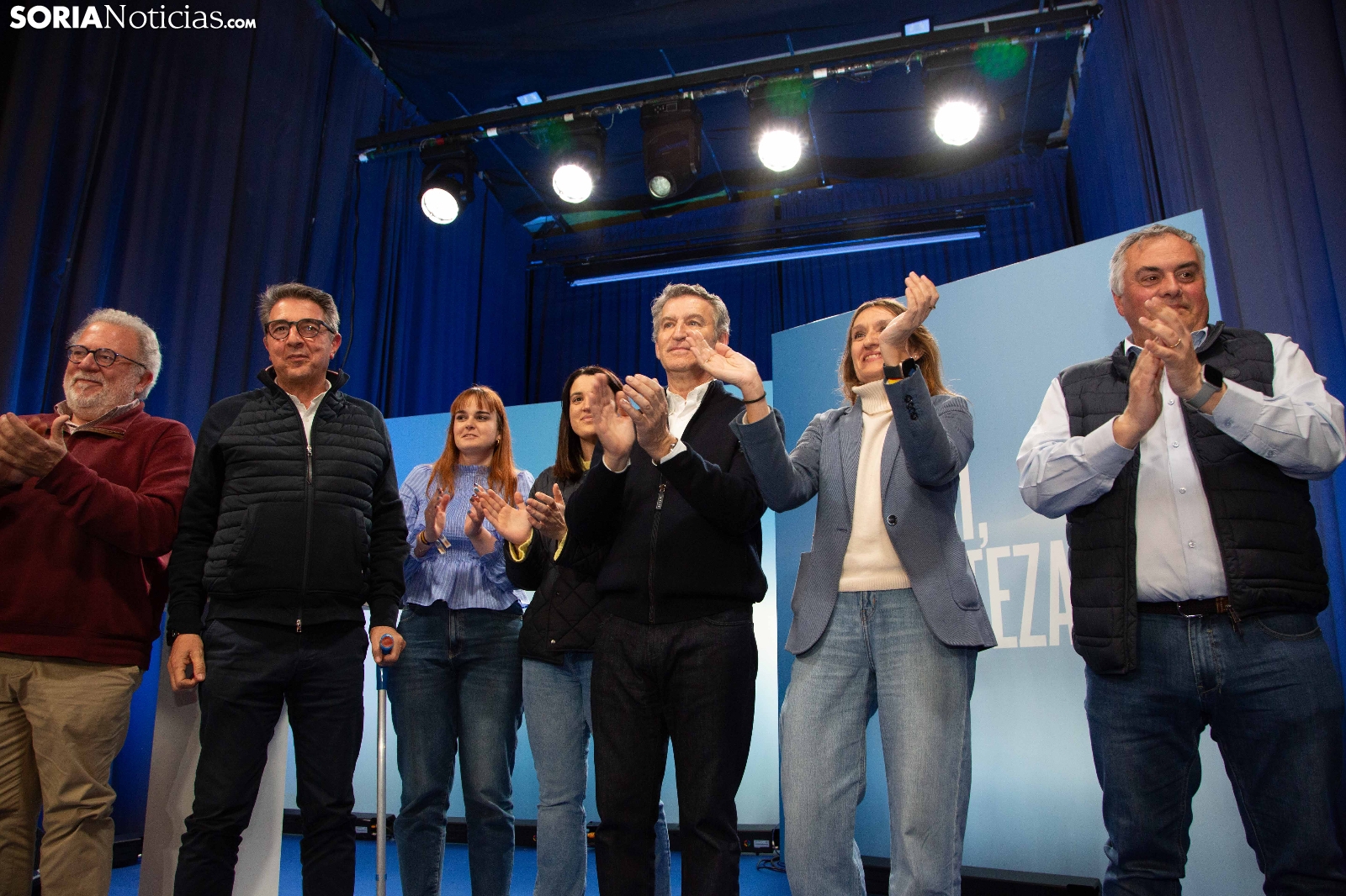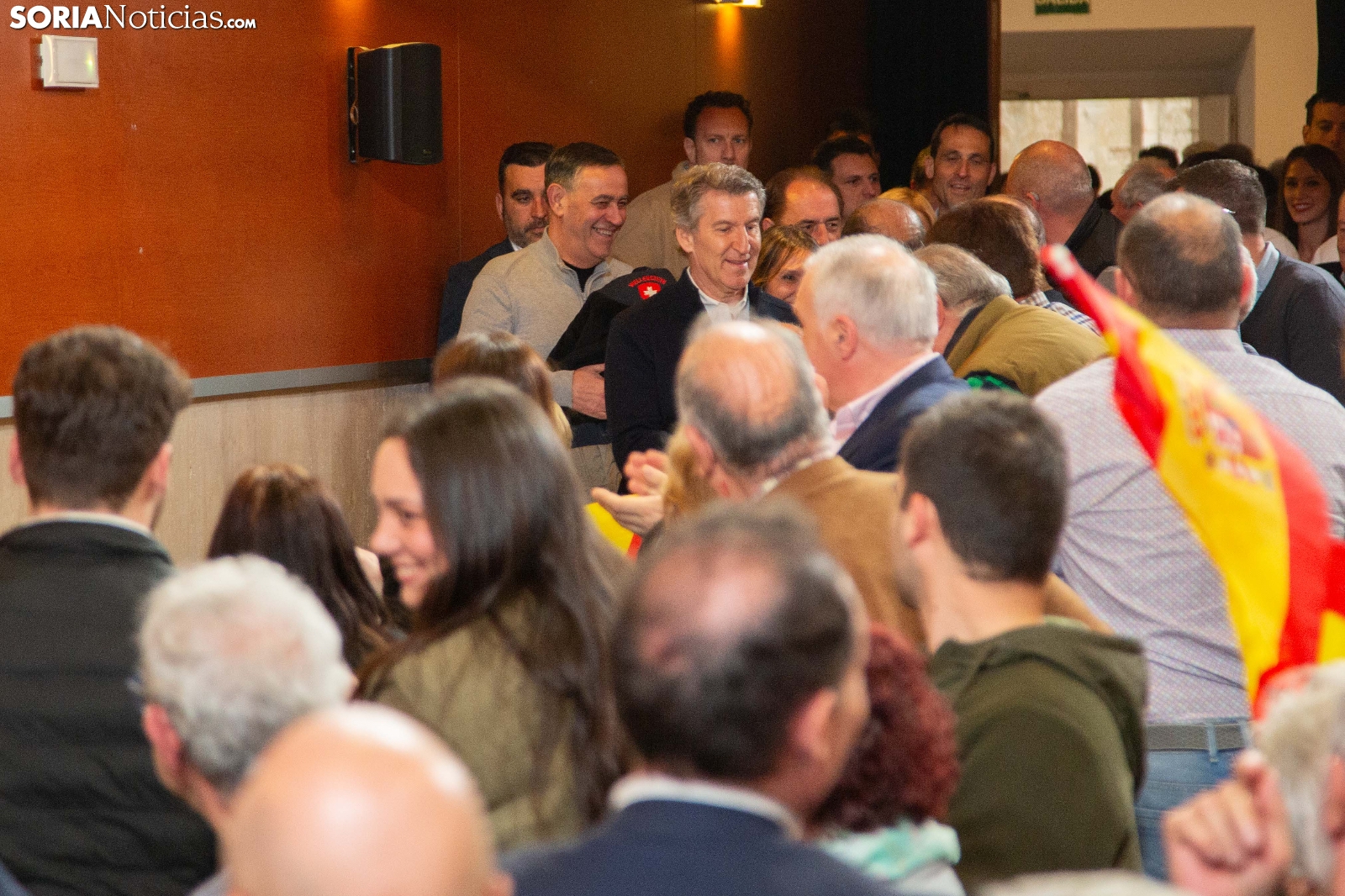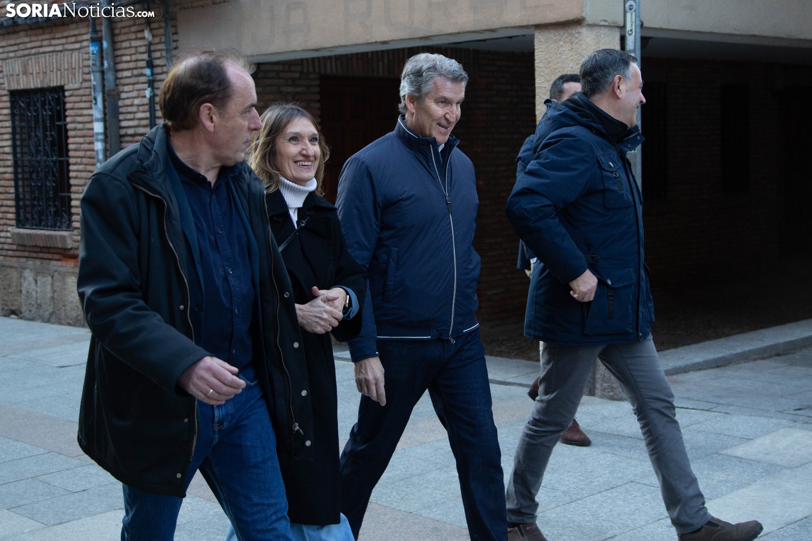 Alberto Núñez Feijóo visitaba hoy martes El Burgo de Osma dentro de la campaña electoral para las autonómicas de este domingo 15. El presidente nacional del PP ha estado acompañado por el alcalde de la localidad, Antonio Pardo, así como de Rocío Lucas, cabeza de lista por Soria y el responsable de la formación en la provincia, Benito Serrano. Un acto protagonizado por el líder popular quien precisamente, según ha referido el alcalde burgense, pernoctaba la pasada noche en la villa episcopal para después girar visitas por la capital, Almazán y Berlanga de Duero, entre otros puntos de la geografía soriana.