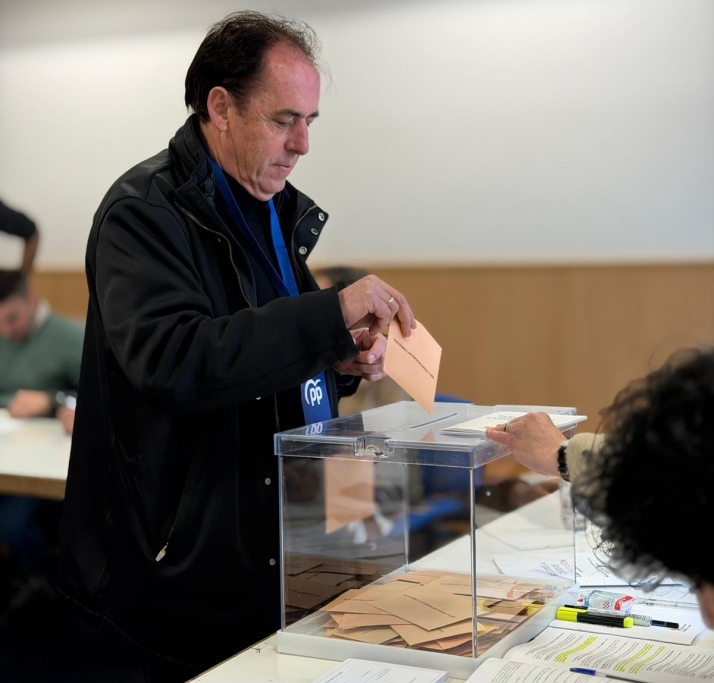 Benito Serrano, presidente del PP introducía en su voto en la urna del colegio CEIP Gerardo Diego, en la urbanización Las Camaretas, en Golmayo, municipio del que es alcalde. Lo hacía al mediodía. Las declaraciones a los medios, aquí.