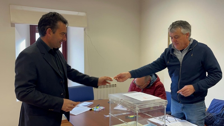 Miguel Contreras, cabeza de lista de Vox por Soria ejerce su derecho al voto en Villasayas, su localidad.