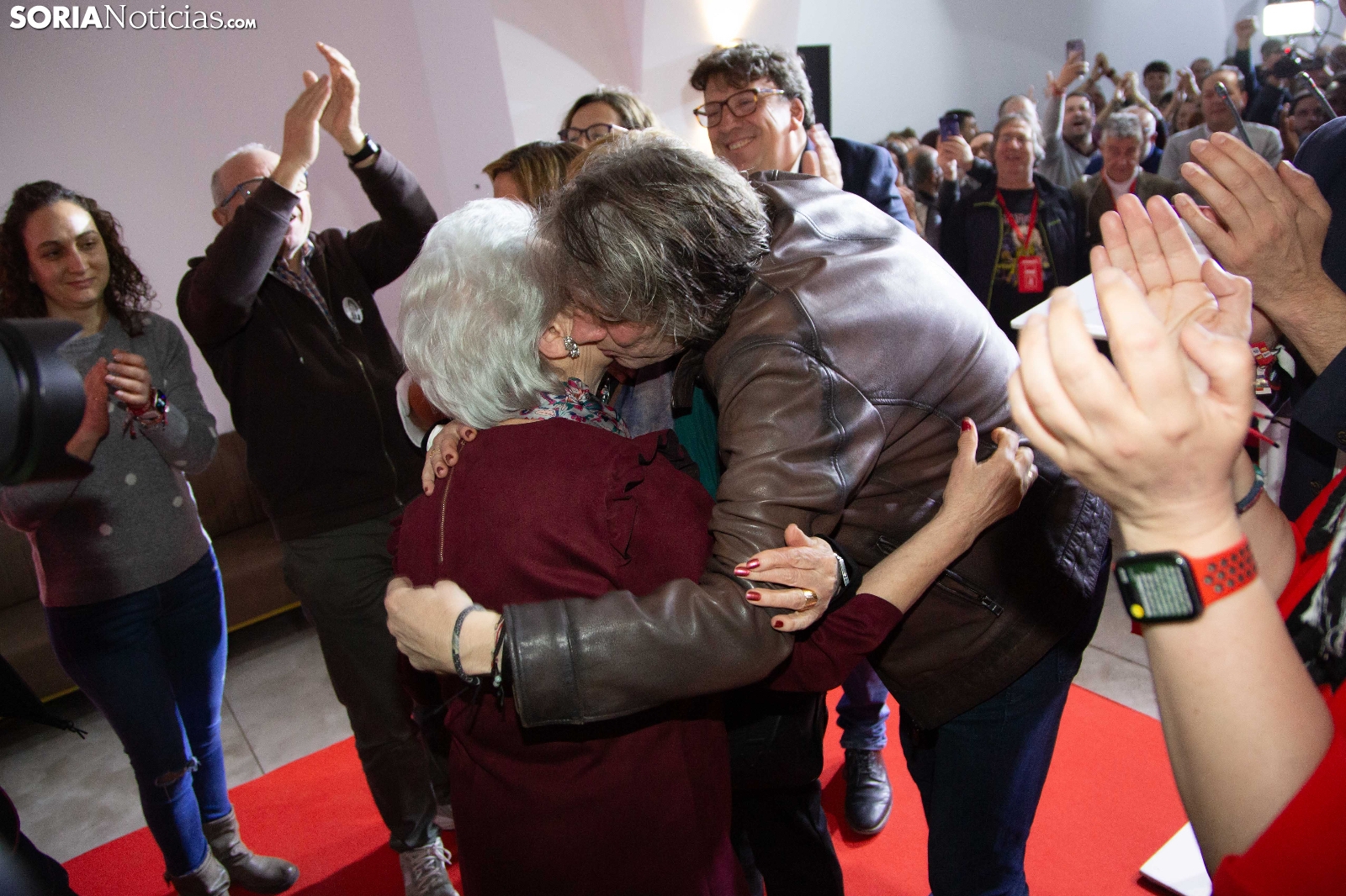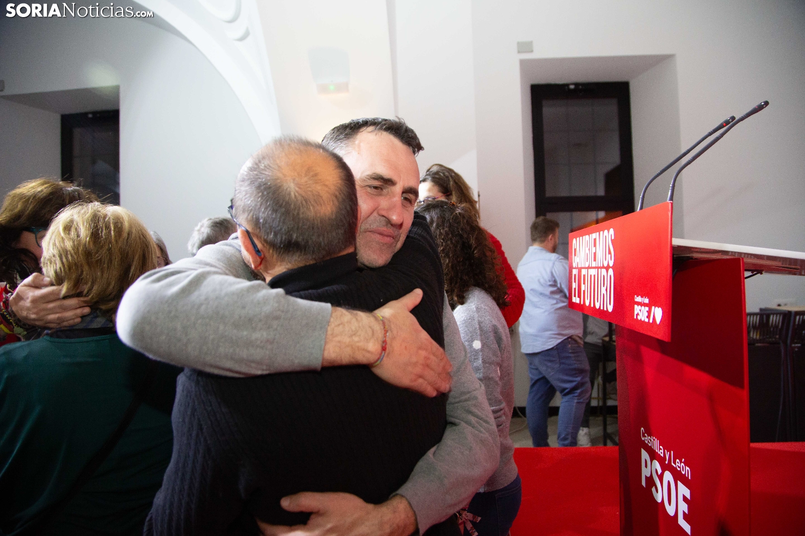 Entre los socialistas el tono no ha sido de euforia, pero ha reinado el optimismo. Aunque el PSOE no ha ganado las elecciones, el crecimiento en escaños y votos se ha interpretado como un resultado muy positivo en un territorio tradicionalmente difícil para el partido. De ahí que los abrazos se prodigaran en el concurrido espacio montado para la ocasión en el hotel San Francisco de la capital soriana, donde Carlos Martínez Mínguez ha puesto el broche a la noche.