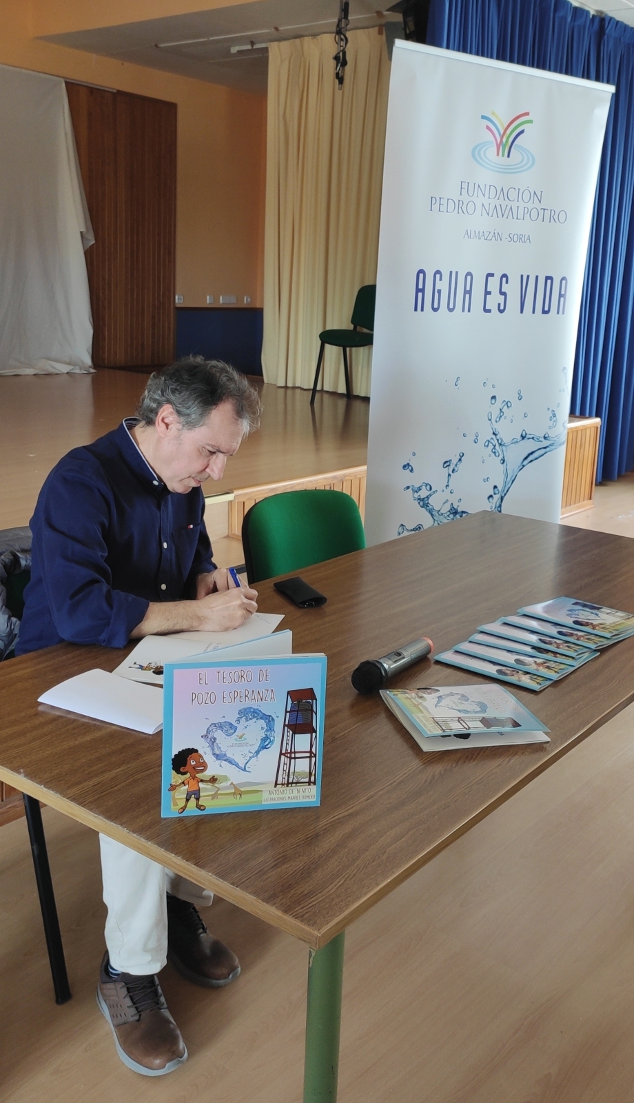 En el marco de la celebración del Día Mundial del Agua, fijado en el calendario para este domingo 22 de marzo, la Fundación Pedro Navalpotro ha dado a conocer su más reciente iniciativa pedagógica. Los colegios Diego Laínez y Calasancio, ambos ubicados en Almazán, han sido el escenario elegido este viernes para la presentación oficial de 'El tesoro de Pozo Esperanza', una publicación infantil que nace con la vocación de sembrar la conciencia medioambiental entre los más pequeños.