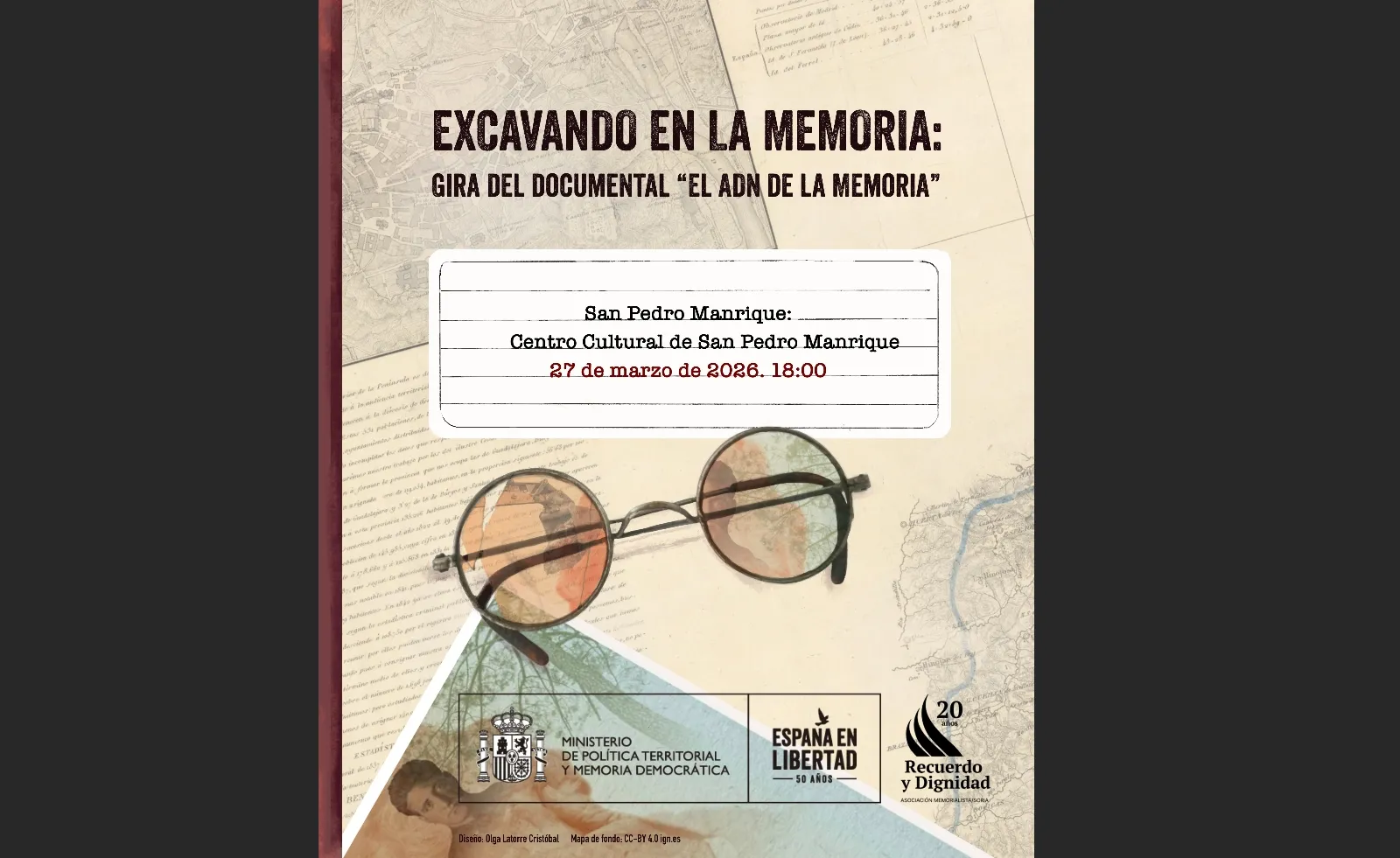 La asociación Recuerdo y Dignidad, en colaboración con la Subdelegación del Gobierno en Soria, retoma su gira provincial con la exhibición de la cinta 'El ADN de la Memoria'. La proyección tendrá lugar este viernes, 27 de marzo, a partir de las 18.00 horas en el Centro Cultural de San Pedro Manrique, saldando así una deuda pendiente con el municipio tras la suspensión del acto previsto para el pasado 21 de noviembre a causa del mal tiempo.