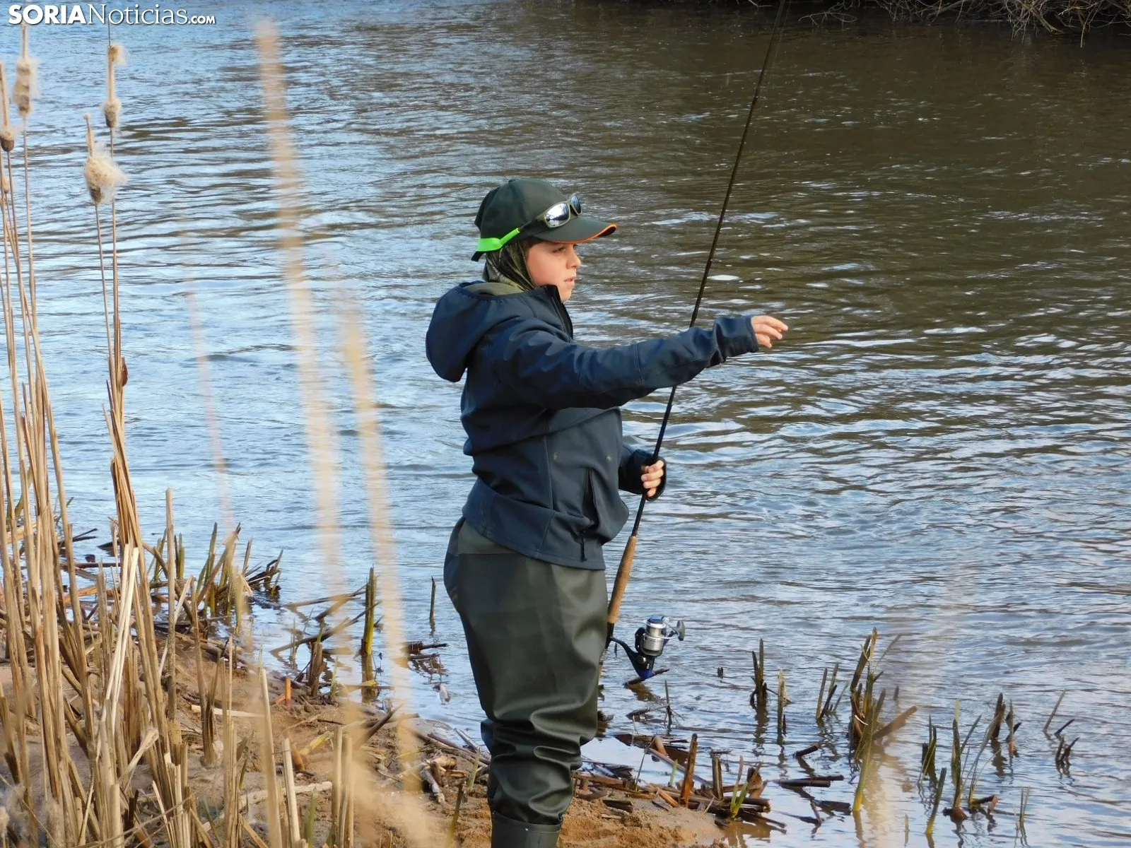 Acostumbrado a los ríos de montaña, Benigno nota la diferencia nada más calzarse las botas: "En Navarra los ríos son más de bota piedras, estos son más calmados y las orillas están más sucias". Aun así, el frío soriano no le impide disfrutar del ambiente y de las capturas: "He sacado una de 43,3 cm, o sea que ya es un pez majo". Pese a que vive en Zaragoza, el ambiente del club le ha conquistado: "La gente está muy contenta... repetiremos".