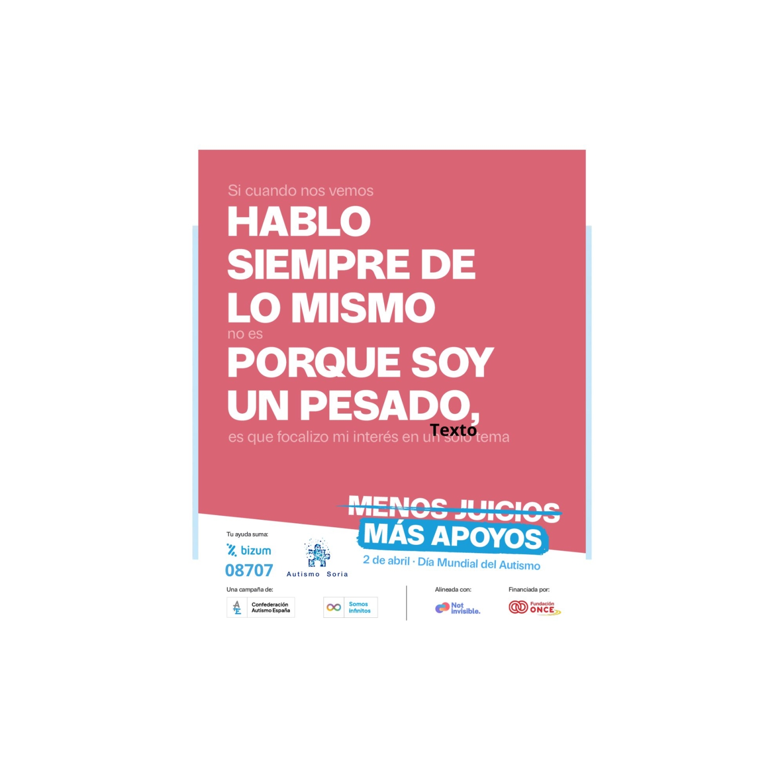 A través de una serie de carteles informativos, la agrupación desgrana situaciones cotidianas que a menudo son malinterpretadas por el entorno. De este modo, explican que cuando una persona con este trastorno habla recurrentemente del mismo tema, no obedece a una actitud pesada, sino a su tendencia a focalizar el interés en asuntos específicos.
