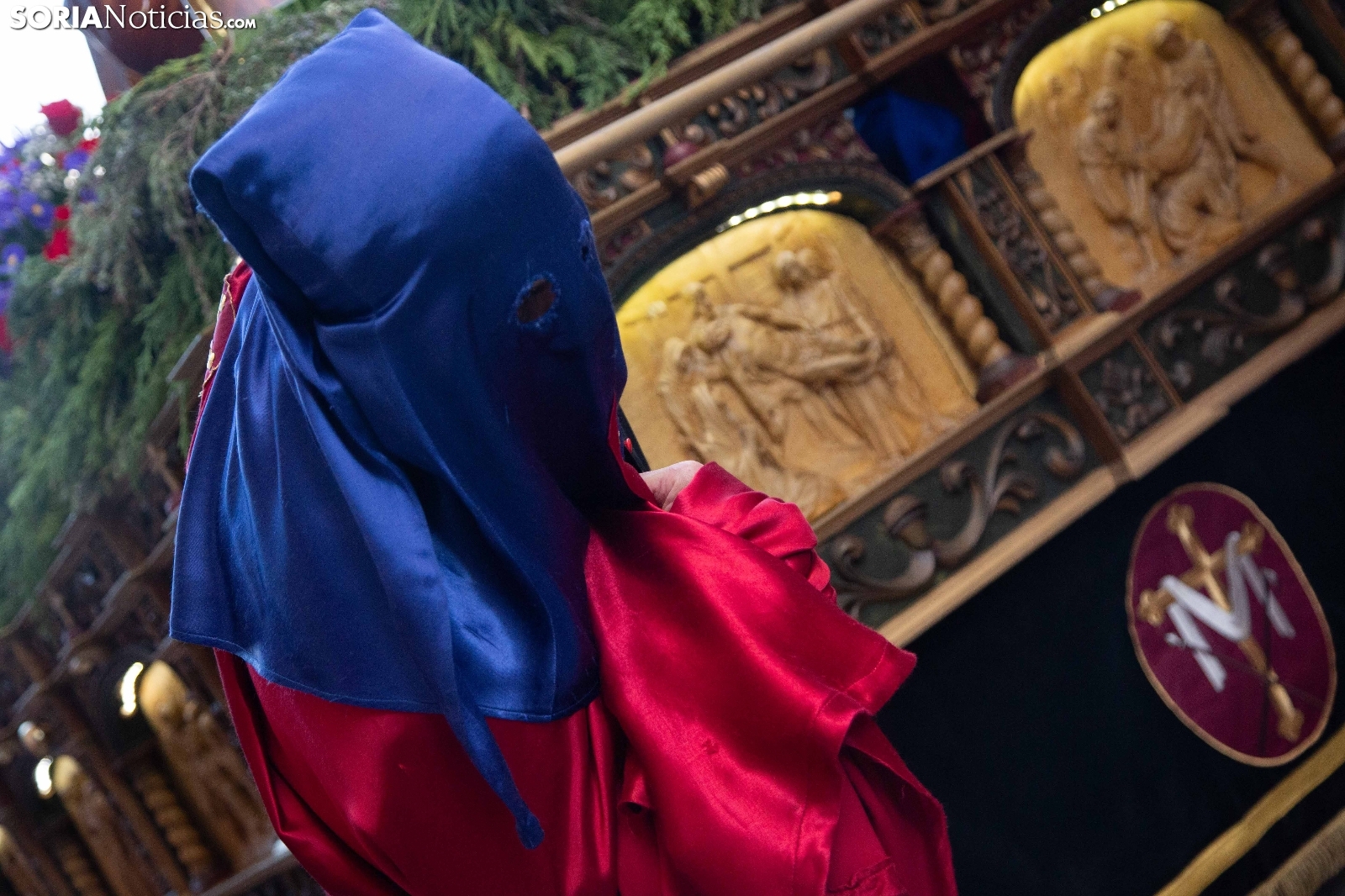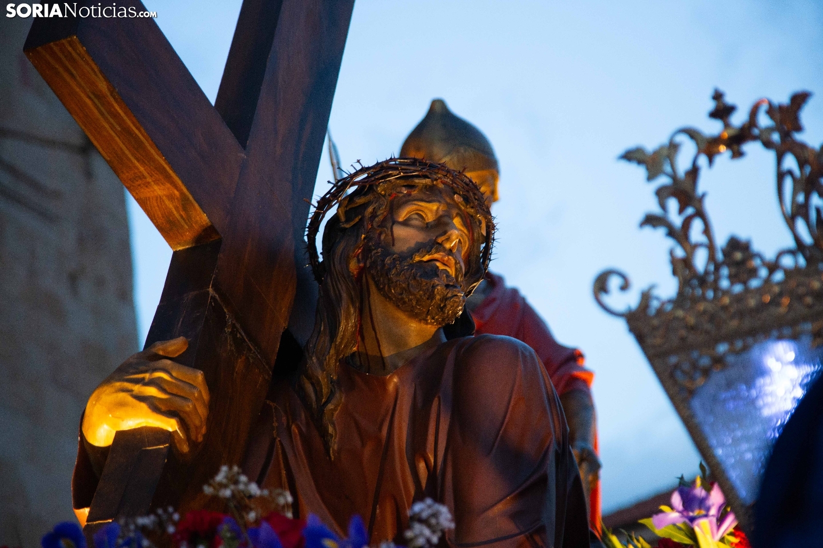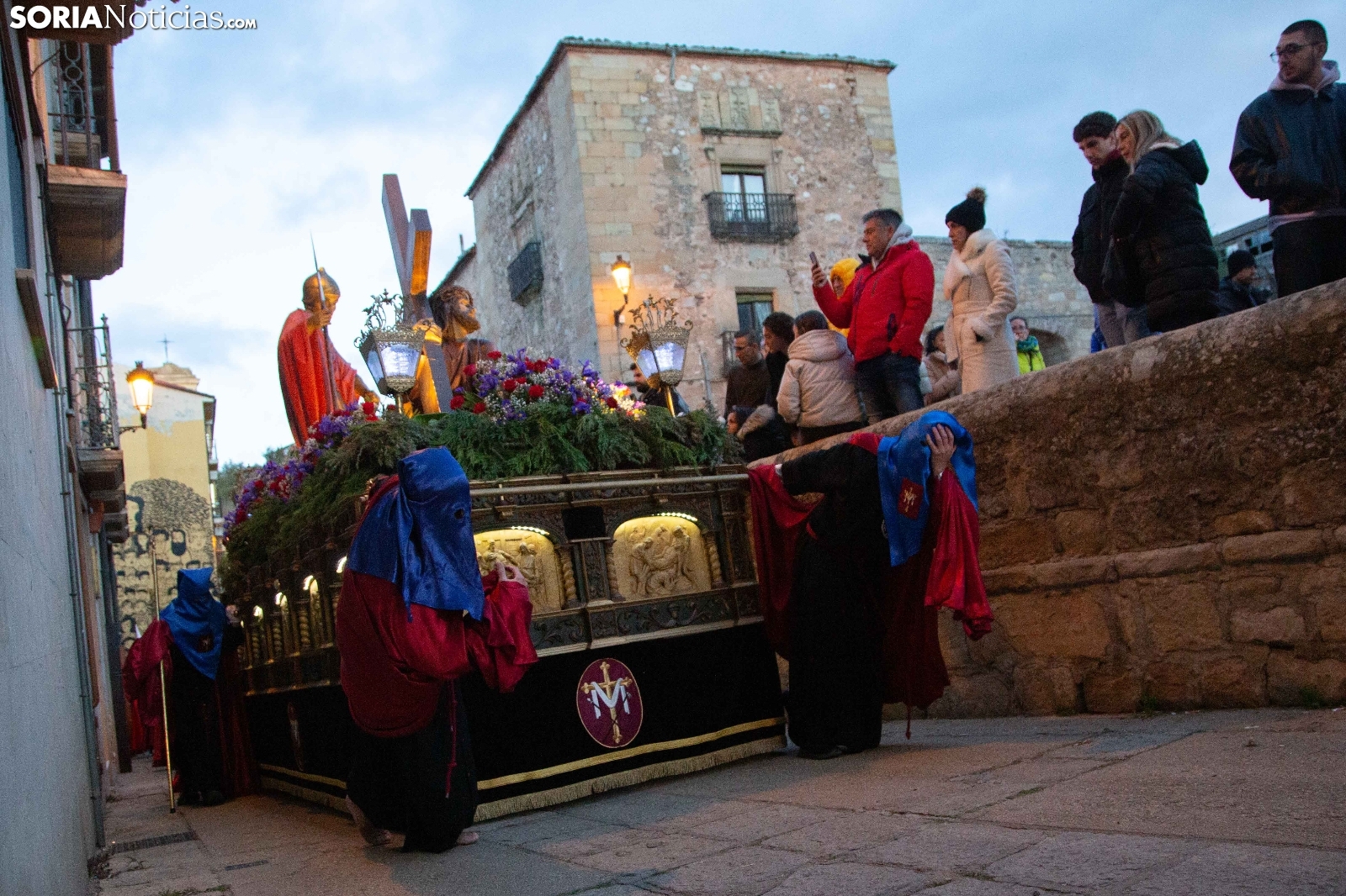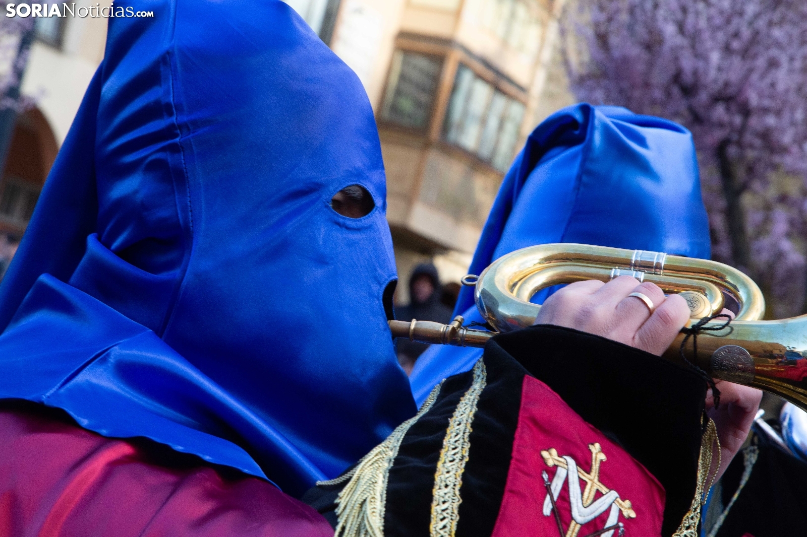 La tarde del Jueves Santo soriano se ha vestido de devoción con la salida a las calles de la Cofradía de las Caídas de Jesús, una de las citas más solemnes de la Semana Santa en la capital. Cientos de vecinos y visitantes se han congregado a lo largo del recorrido para acompañar a los cofrades en su tradicional penitencia, que ha tenido su punto de partida y final en la Concatedral de San Pedro Apóstol. La comitiva ha procesionado por el corazón de la ciudad, atravesando arterias emblemáticas como la calle Real, la Plaza Mayor, El Collado y la plaza Mariano Granados, y ha dejado a su paso estampas de gran recogimiento y tradición.