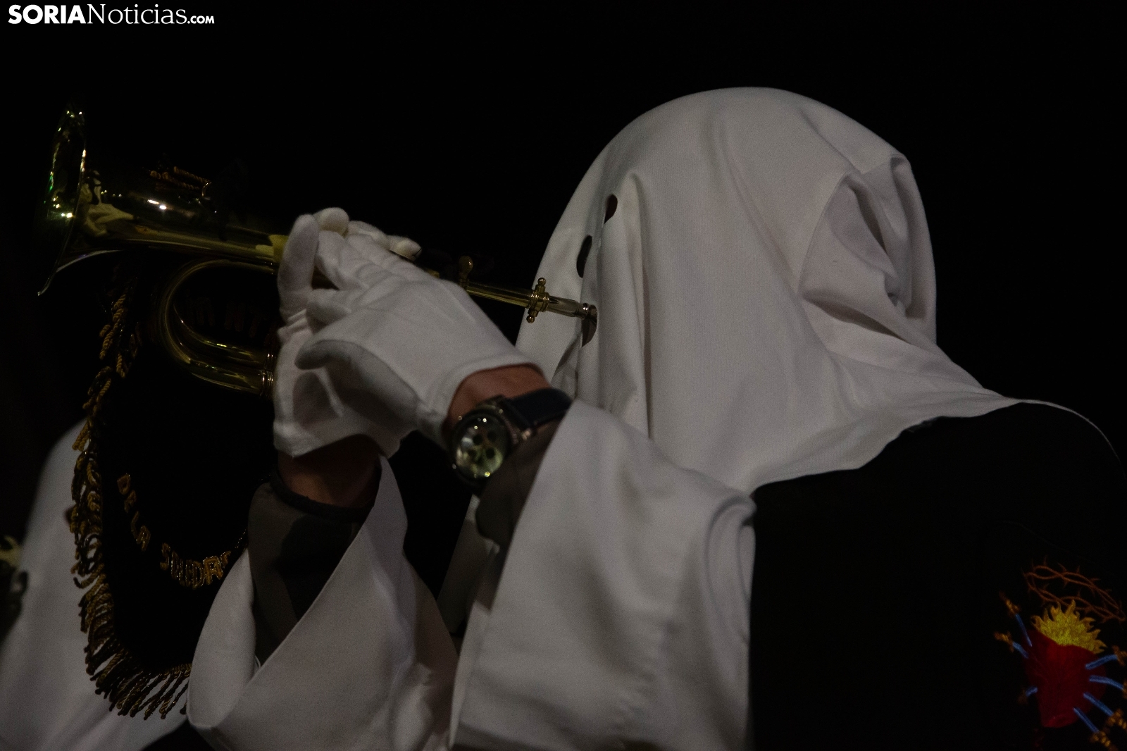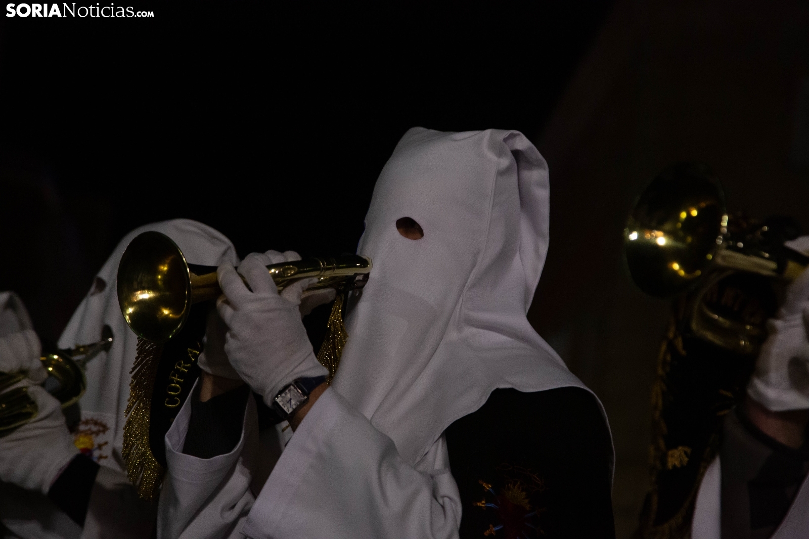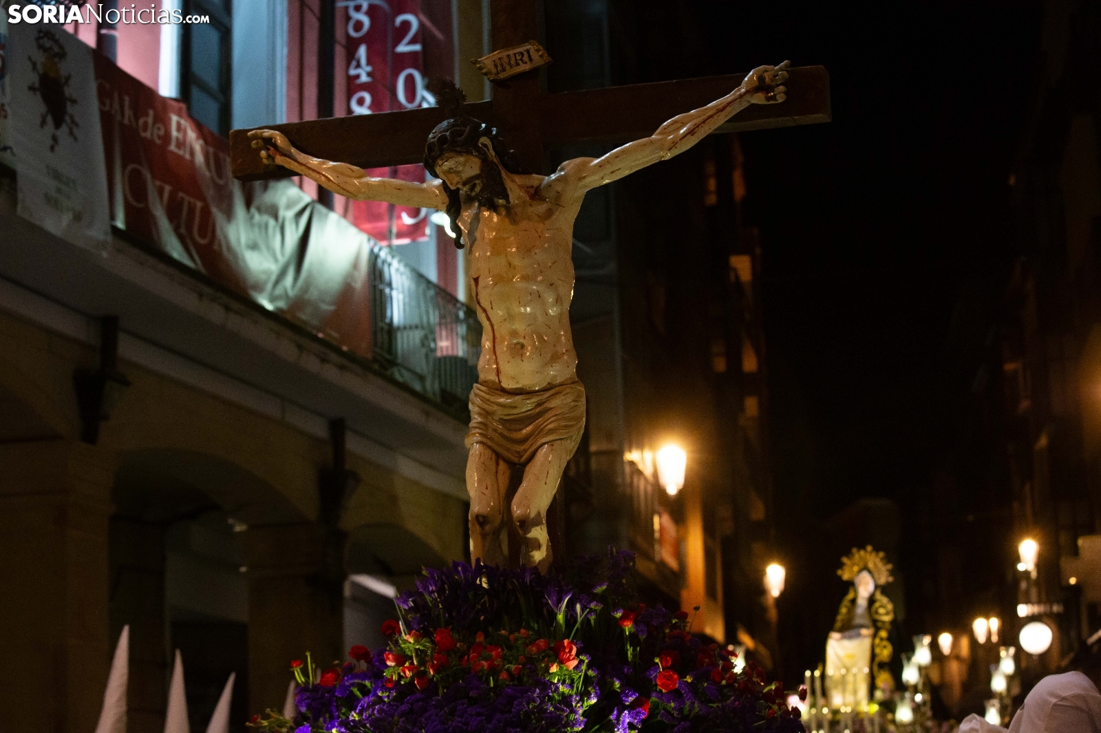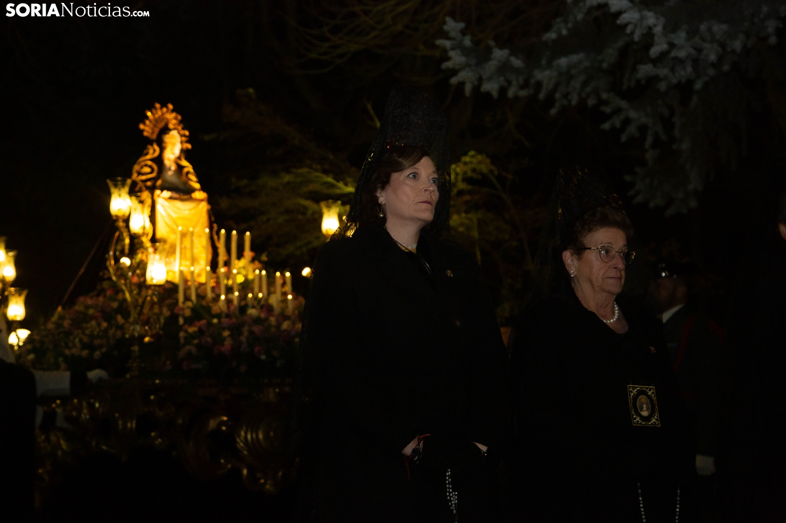 La noche del Jueves Santo en la capital soriana ha estado marcada por el fervor y el silencio al paso de la Cofradía de la Virgen de la Soledad. Los cofrades han iniciado su solemne recorrido desde la Ermita de la Soledad, ubicada en el emblemático parque de la Alameda de Cervantes, para adentrarse en el centro de la ciudad. Acompañada por la devoción de cientos de vecinos, la comitiva ha atravesado vías principales como la plaza Mariano Granados, El Collado y la Plaza Mayor, hasta concluir su trayecto de penitencia en la Concatedral de San Pedro Apóstol.