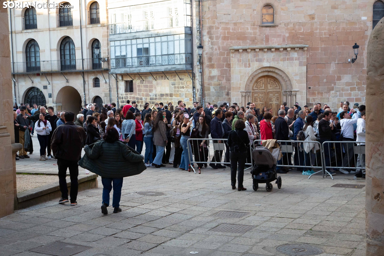 El Palacio de la Audiencia se ha abarrotado de gente desde las 20:00h de hoy, sábado, para el primer acto oficial de las fiestas de San Juan 2026, el Sorteo. El acto, marcado por la emoción de los jurados entrantes, los de 11 de las 12 cuadrillas, ya que la plaza de San Juan sigue vacante y tendrá que resolverse antes del Catapánm; el agradecimiento de los jurados salientes, responsables de que los festejos del 2025 fueran según lo previsto; y el último discurso sanjuanero de Carlos Martínez Mínguez, que dejará el Ayuntamiento capitalino para unirse a las Cortes de Castilla y León como procurador.