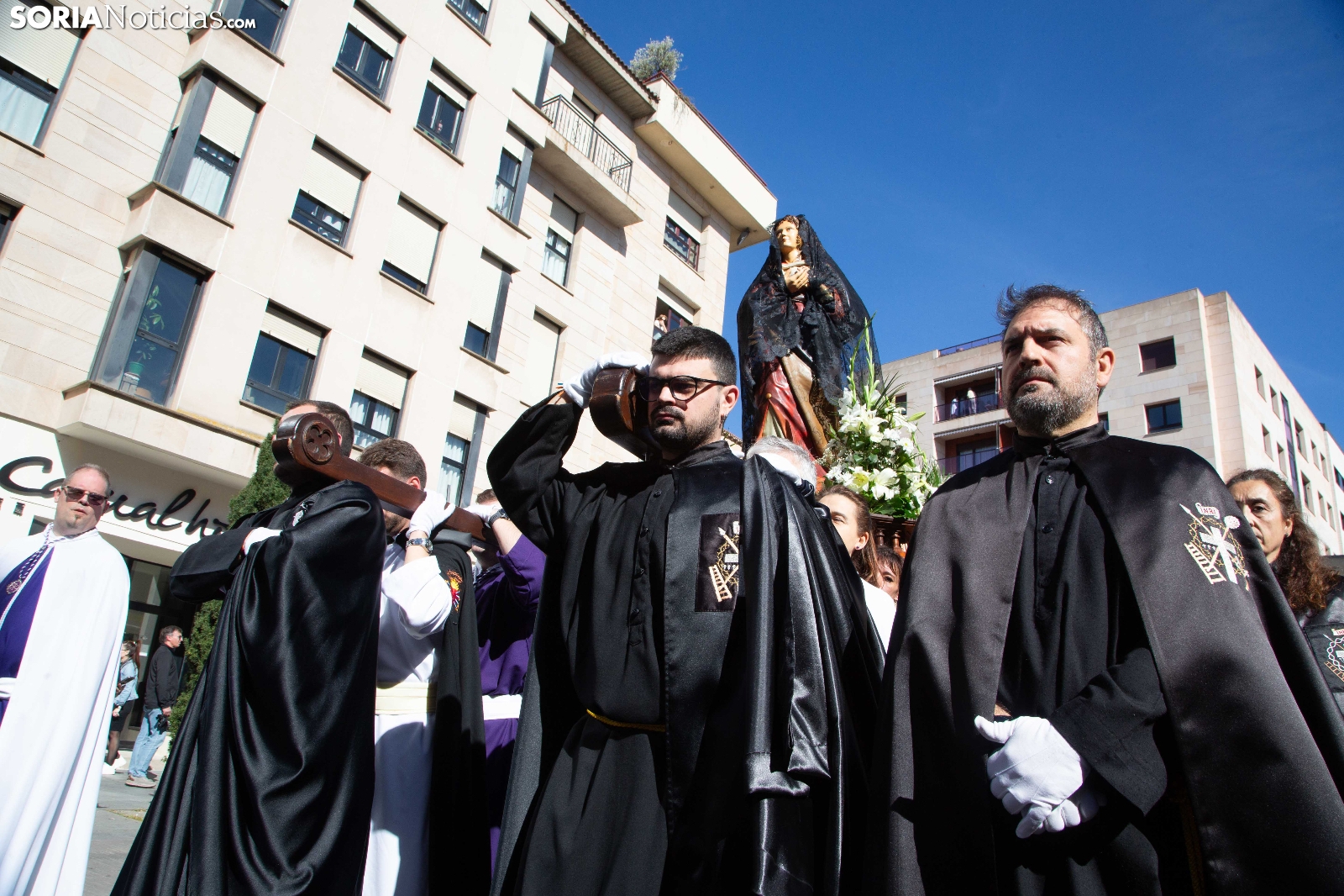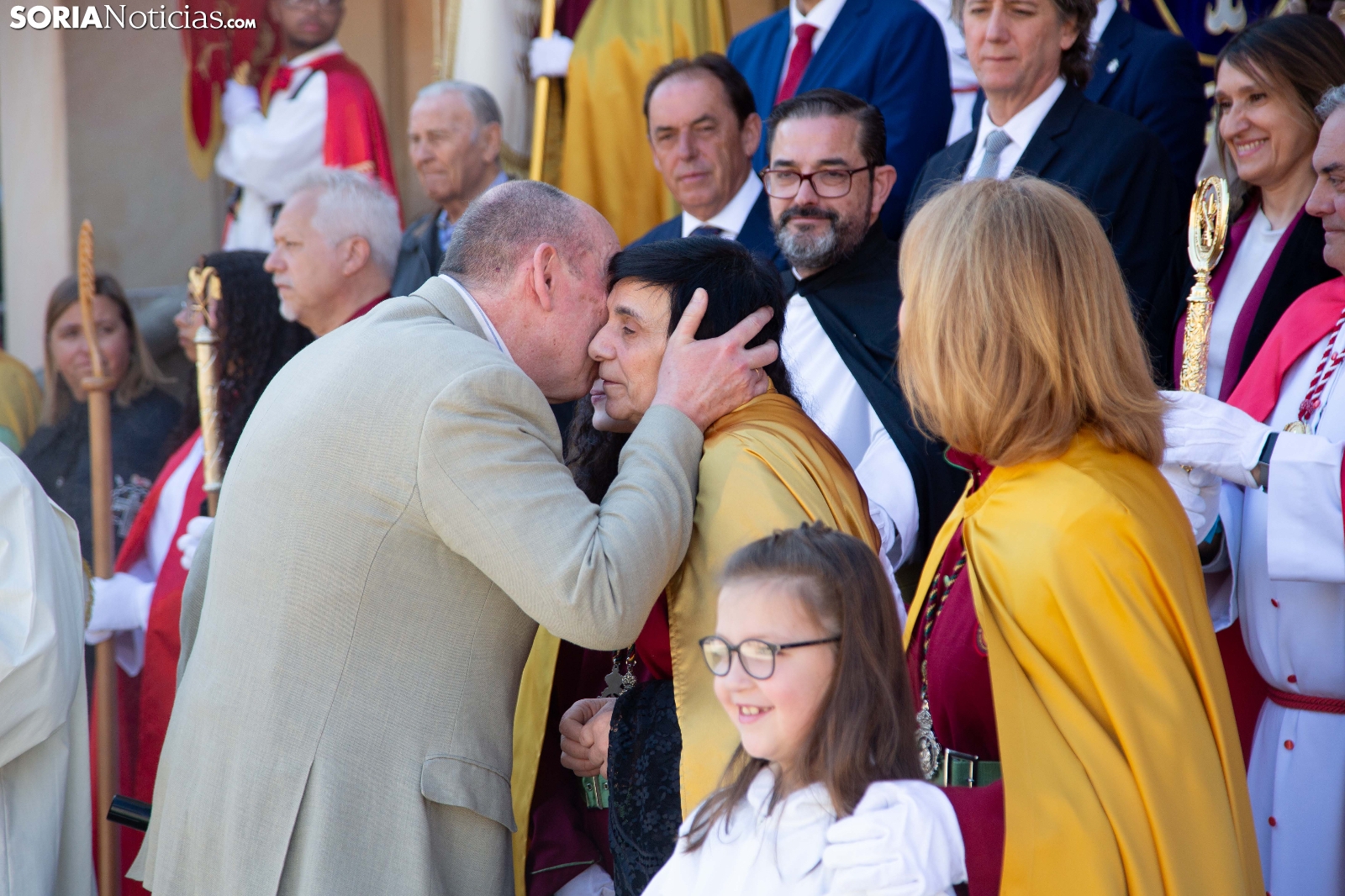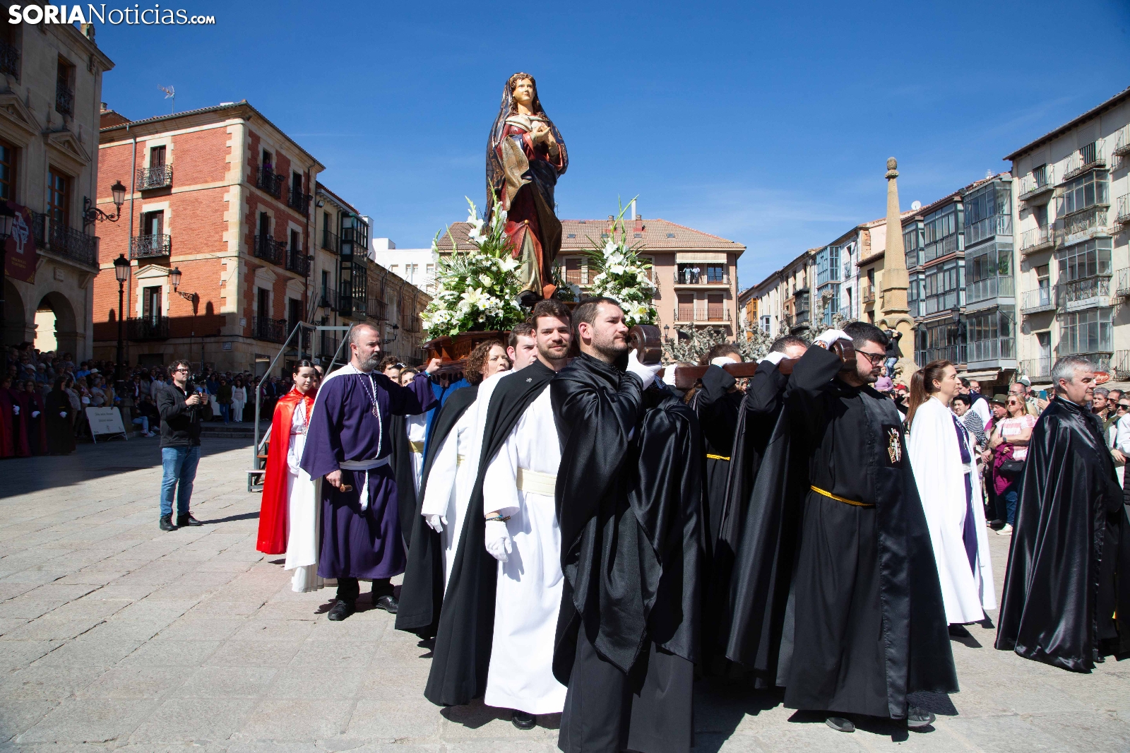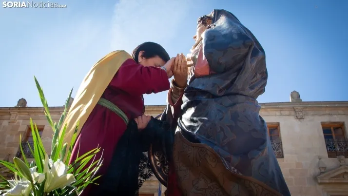 La mañana de este Domingo de Pascua y Resurrección ha puesto el broche final a la Semana Santa en la capital soriana con la celebración de la emotiva procesión de El Encuentro. El júbilo y la alegría han tomado el relevo al recogimiento de los días previos en el instante en que las imágenes de Cristo Resucitado y la Virgen María se han reunido ante la atenta mirada de cientos de vecinos y visitantes. Las cofradías de la ciudad han acompañado este momento de celebración que marca la culminación de los actos pasionales en Soria.