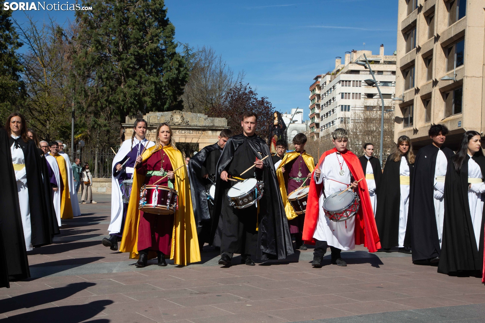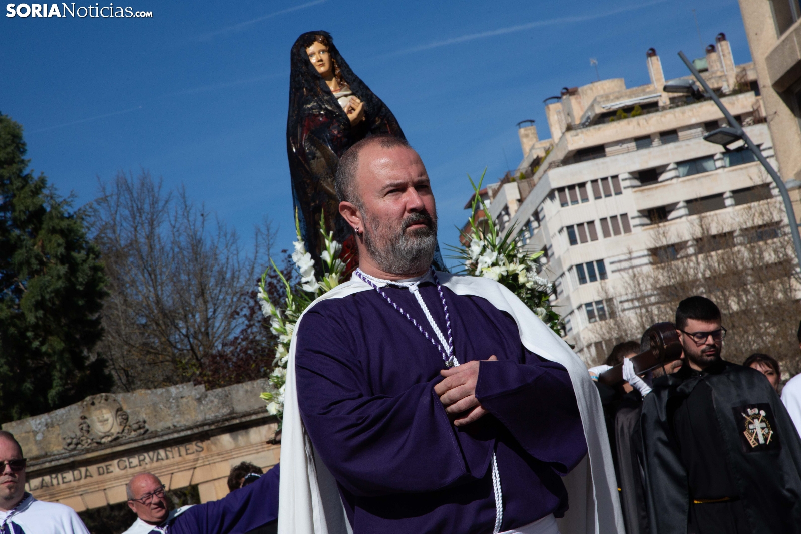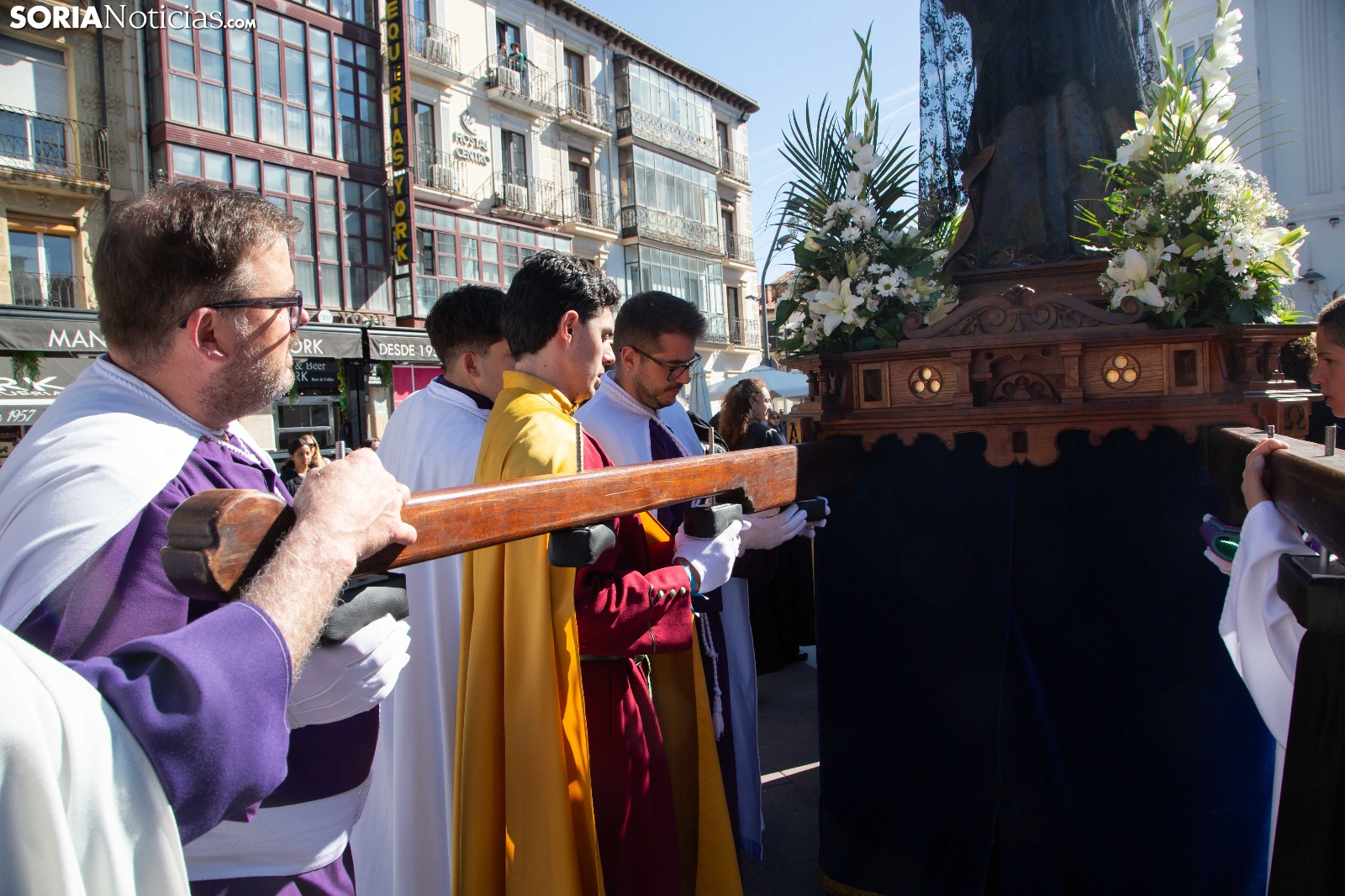 La mañana de este Domingo de Pascua y Resurrección ha puesto el broche final a la Semana Santa en la capital soriana con la celebración de la emotiva procesión de El Encuentro. El júbilo y la alegría han tomado el relevo al recogimiento de los días previos en el instante en que las imágenes de Cristo Resucitado y la Virgen María se han reunido ante la atenta mirada de cientos de vecinos y visitantes. Las cofradías de la ciudad han acompañado este momento de celebración que marca la culminación de los actos pasionales en Soria.