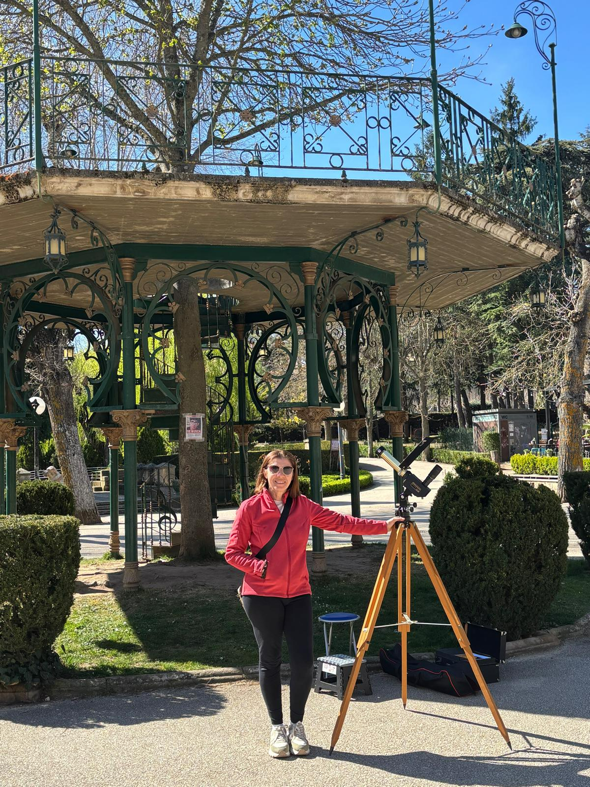 El programa comenzó por la mañana con la instalación de un telescopio solar en el céntrico parque de La Alameda. El organizador ubicó el equipo en las inmediaciones de La Rosaleda, buscando el equilibrio perfecto entre la afluencia de público y las zonas de sombra para combatir el calor primaveral.