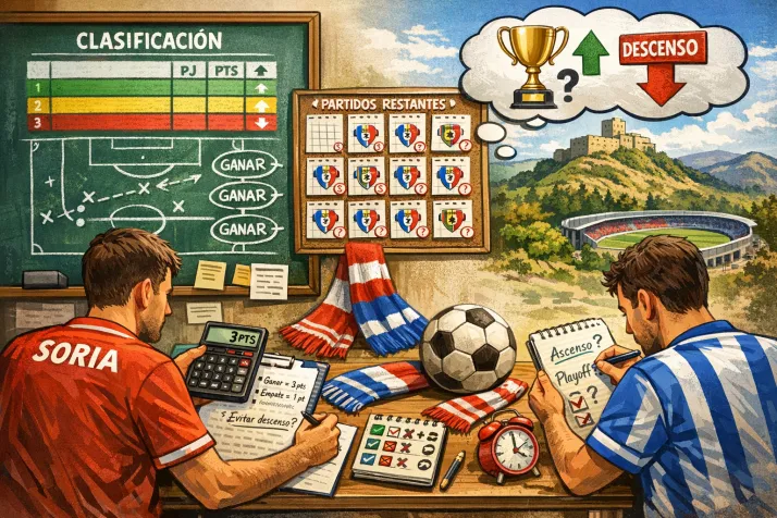 ¿Qué le espera en esas cuatro jornadas? La primera piedra en el camino es el Real Ávila, este domingo a las 17:00h en Los Pajaritos. Es un rival directo en la disputa por los puestos de promoción, por lo que no se espera que sea un choque tranquilo. El 19 de abril visitará al Sámano, una jornada que se prevé tranquila, pues es un rival que ya está descendido y no se jugará nada. El fin de semana del 26 de abril se enfrentará al Langreo. Ahora mismo tienen 39 puntos, si bien jugar play off para ellos es un sueño, estarán luchando por no caer en la zona caliente. A eso hay que sumar que es a domicilio, por lo que no será un choque plácido. Para cerrar la temporada, el fin de semana del 3 de mayo, el Numancia se enfrentará al Marino de Luanco, que, ahora mismo, marca la zona de play out y parece ser que llegará a la última jornada luchando por salvarse, lo que complica también dicho partido.