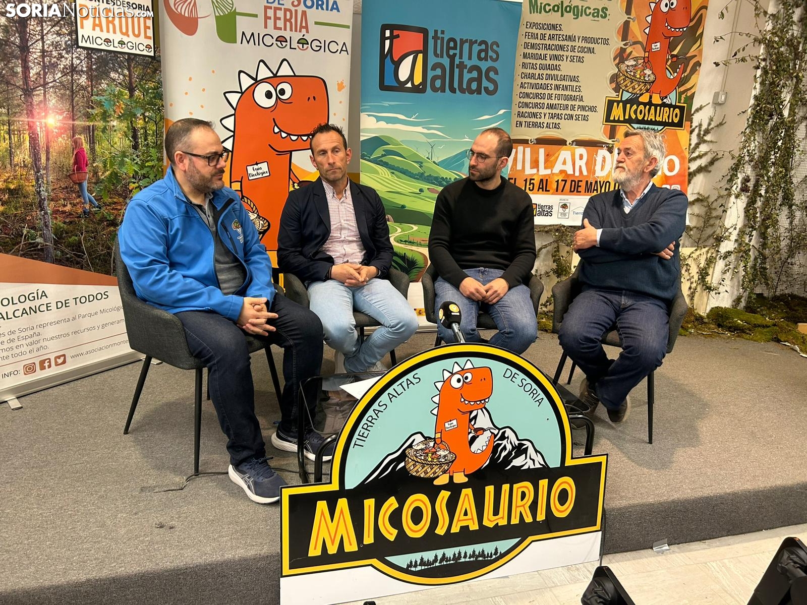 El presidente de la Asociación, Luis José Lucas, el presidente de la Mancomunidad de Tierras Altas, Alejandro Aguado, el alcalde de Villar del Río, Miguel Ángel López, y el técnico de la agrupación, Antonio Vega, han hecho hincapié en que uno de los objetivos de esta Feria es “desestacionalizar el turismo micológico”, demostrando que hay setas más allá de los meses otoñales.