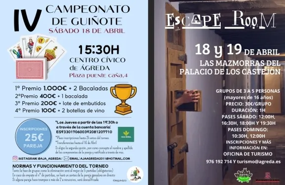 Ayuntamiento de Ágreda ha dado a conocer las actividades programadas para este sábado 18 y domingo 19 de abril, diseñadas para dinamizar el descanso en el municipio. La primera de las propuestas invita a los participantes a adentrarse en las profundidades del patrimonio local, toda vez que las mazmorras del Palacio de los Castejones se transformarán en el escenario de unas nuevas jornadas de esta actividad inmersiva.