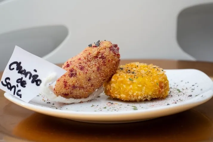 El Hotel Apolonia de la capital presenta una croqueta de carrillera ibérica con compota de manzana. La melosidad del guiso se equilibra con el dulzor de la fruta, generando contraste.