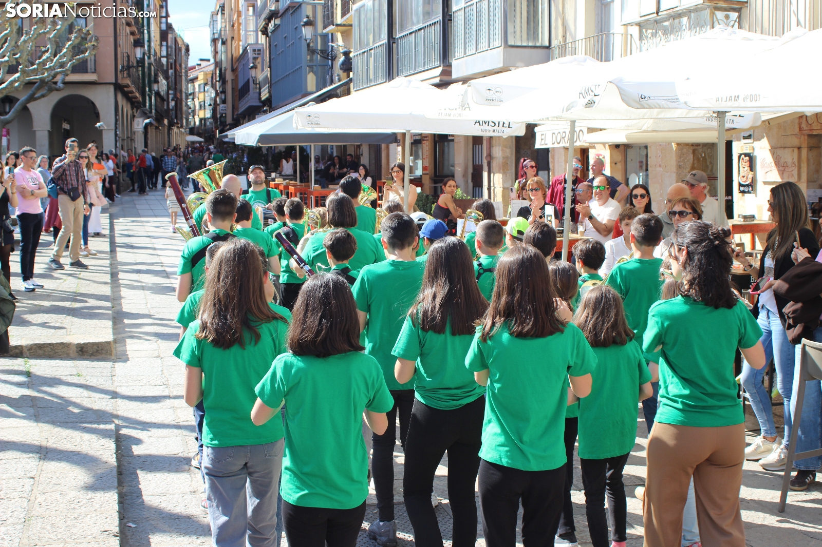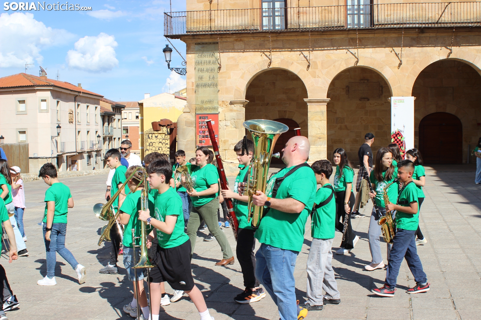 El centro de Soria ha acogido esta tarde el V Encuentro de Bandas Elementales de Castilla y León. 300 alumnos de conservatorio se han dado cita en un evento que busca fomentar el talento de los más jóvenes de la región. Las actividades han comenzado a las 17:00h. con un desfile que ha arrancado en la Plaza Mayor y han continuado conciertos en La Dehesa.