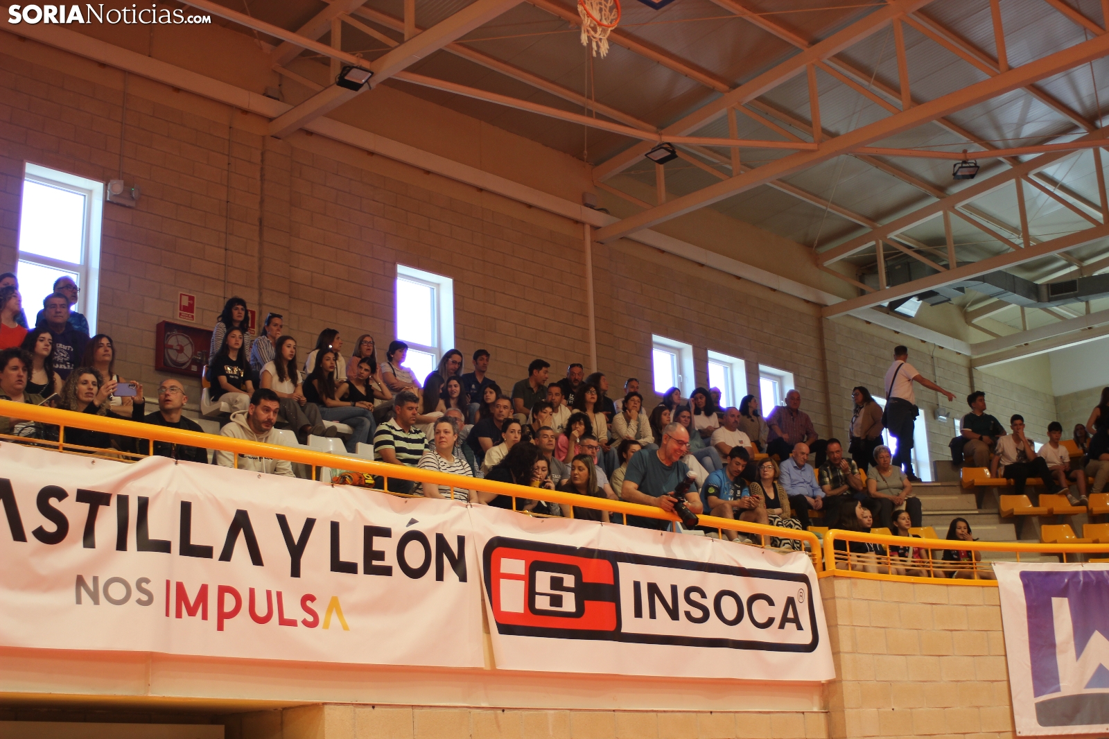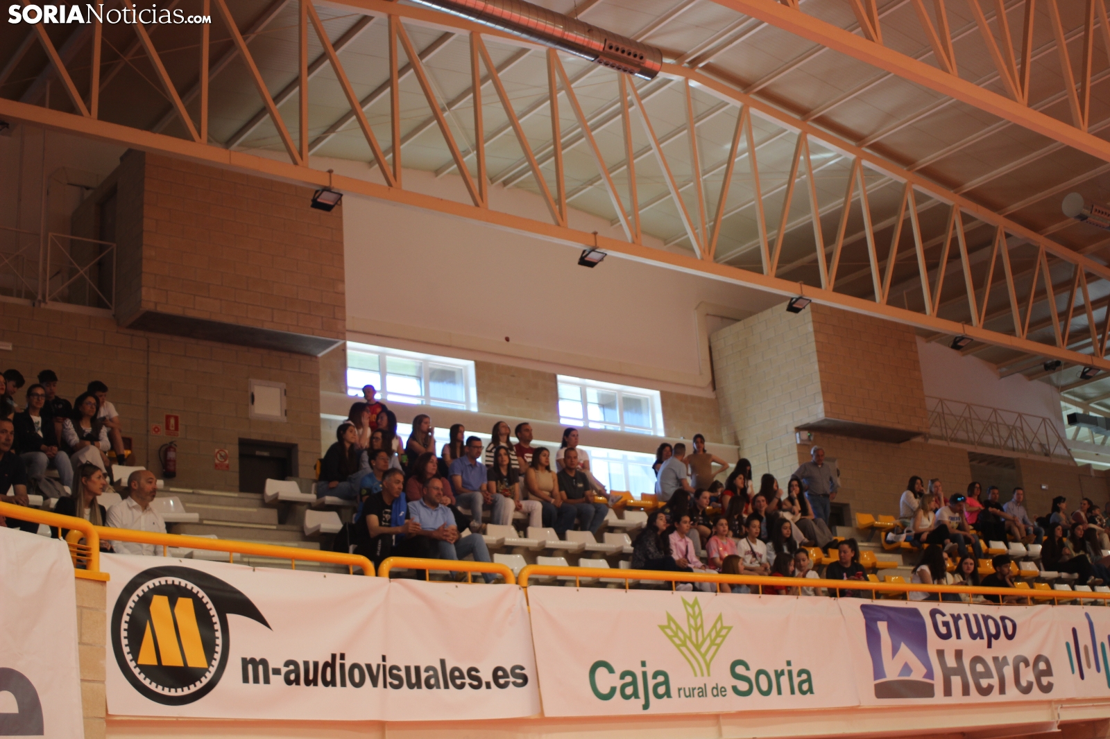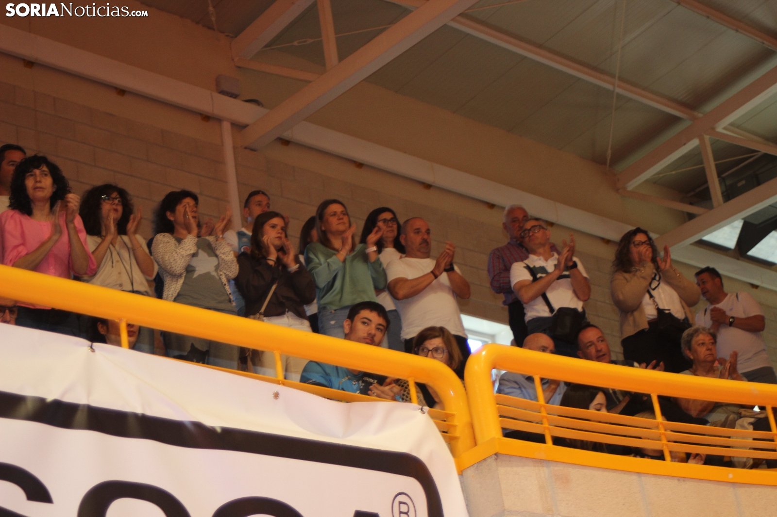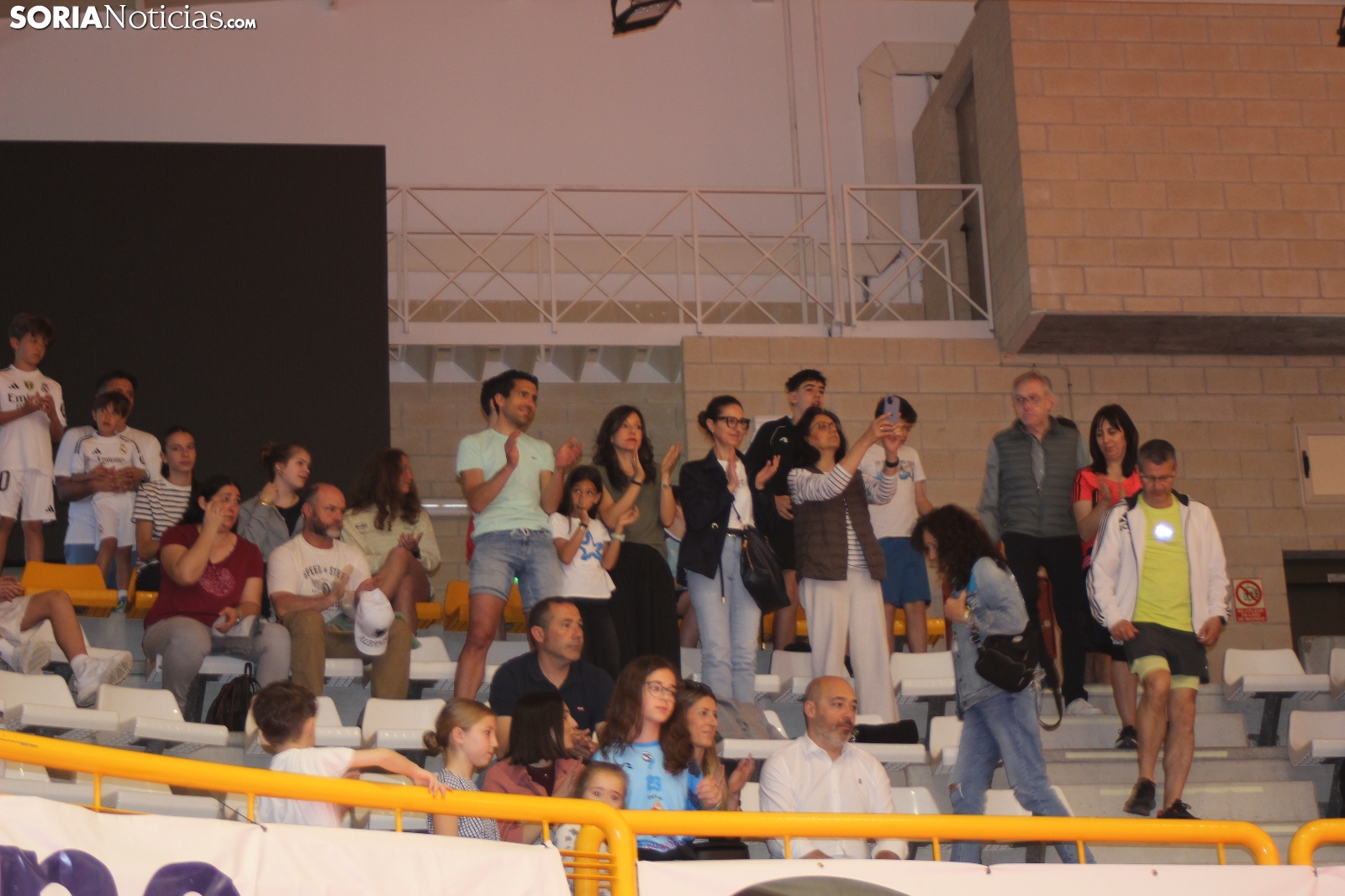 Dejando a un lado colores, las dos entidades decidieron organizar un homenaje para la joven soriana en los minutos previos a un derbi entre ambos conjuntos con el que se ha terminado la temporada. Dicho y hecho. Con una esquina del polideportivo de Los Pajaritos hasta la bandera con centenares de aficionados, las jugadoras de Sporting y Río Duero le han hecho el pasillo a una Vega que ha desfilado mientras recibía la ovación de todo el pabellón.