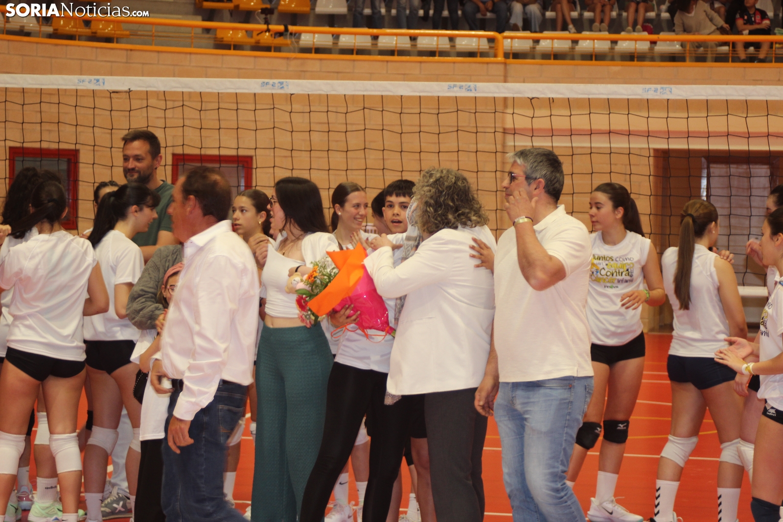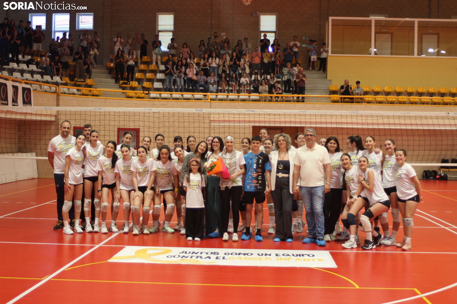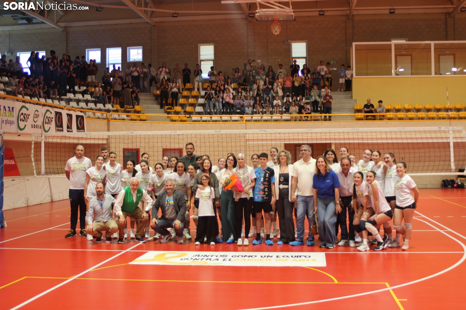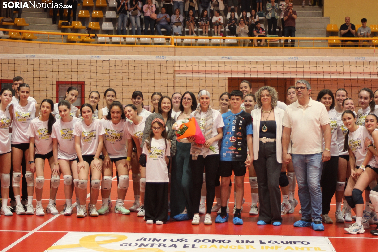 Soria es una ciudad leal, un lugar que se vuelca cuando los suyos la necesitan. Hoy no ha sido un día más para el voleibol soriano. Más allá de títulos o de rivalidades, el Sporting Santo Domingo y el Río Duero han ido de la mano para apoyar a una de las suyas. Vera Alonso, jugadora del cadete del Sporting, sufre cáncer desde finales del pasado año y ambos clubes tenían claro que no iba a estar sola en esta batalla.